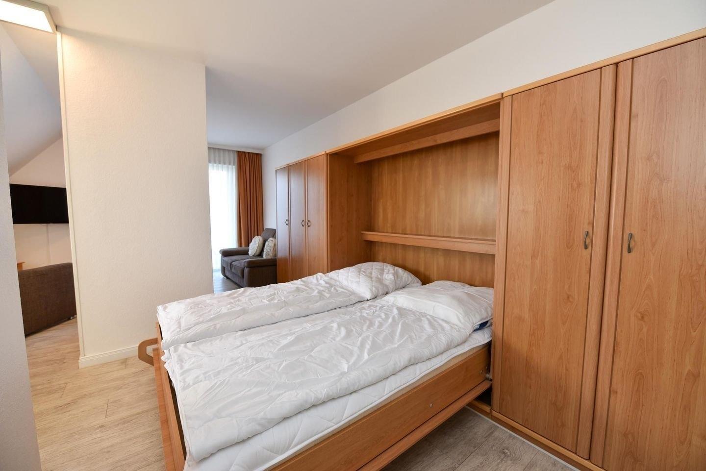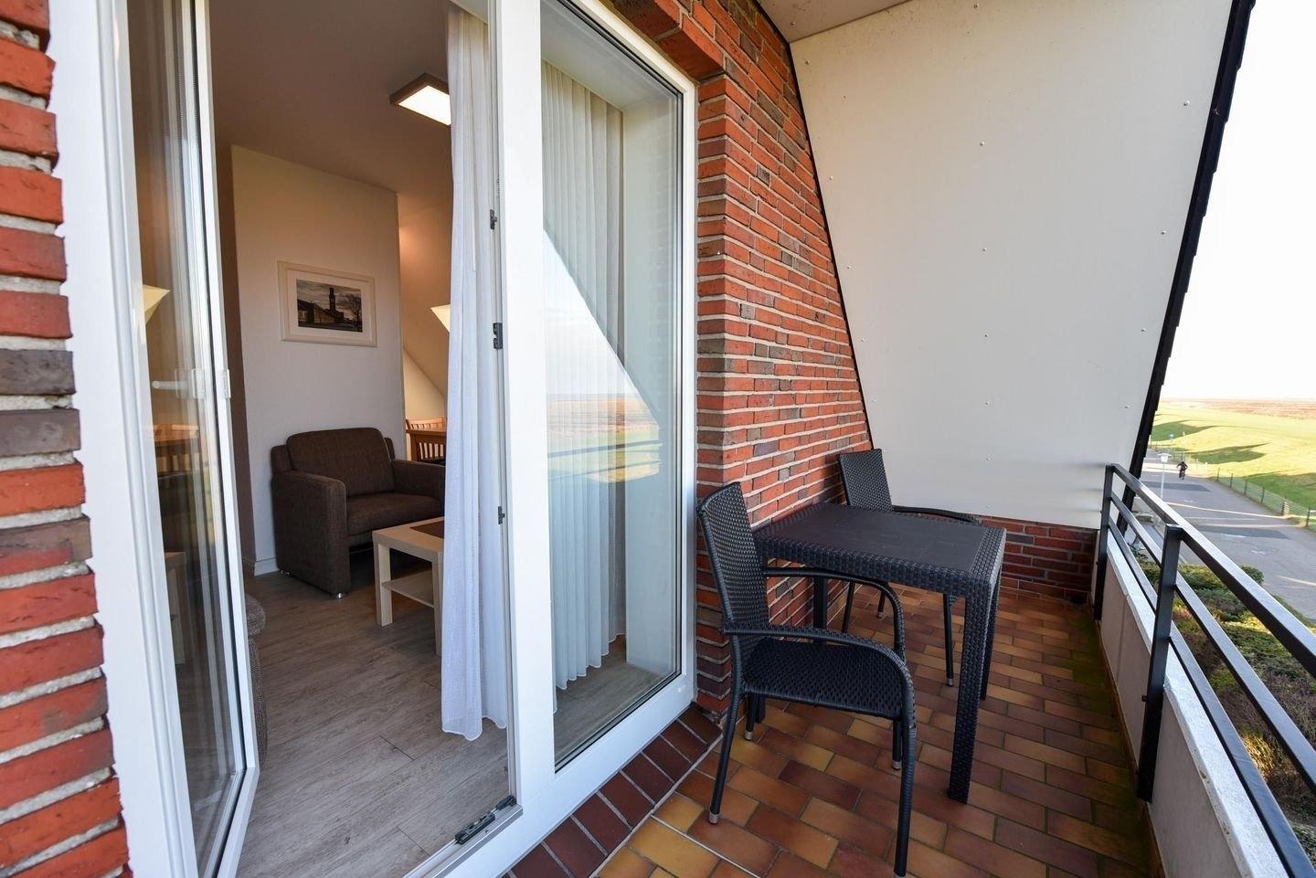 Gemütlich geschnittene 2-Zimmer Appartement im Haus "Nige Wark". In der TV-/Leseecke im Wohnzimmer, von wo aus Sie einen herrlichen Blick auf das UNESCO-Weltnaturerbe Wattenmeer, die Insel Neuwerk und dem Weltschifffahrtsweg haben, befindet sich ein gemütliches Zweisitzer-Sofa, zwei Sessel und ein Flat- TV. Die integrierte Küchenzeile mit Spülmaschine, Mikrowelle und Kühlschrank mit Gefrierfach ist komplett ausgestattet und der ausziehbare Esstisch, mit Seeblick, bietet genügend Platz für alle. Im Wohn-/Schlafraum befindet sich zusätzlich noch ein ein Schrankbett (2x90x200). Im Schlaf-/Kinderzimmer stehen zwei Einzelbetten (90x200). Das Badezimmer ist mit einer Dusche und WC ausgestattet. Die ca. 41 qm große Wohnung liegt im 2. OG und verfügt zudem auch über einen Balkon zur Seeseite.