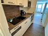 Von der separaten Küche, die mit einem Kühlschrank, einem Backofen mit Ceranfeld, einem Geschirrspüler, einer Mikrowelle sowie einer Kaffeemaschine, einem Toaster und einem Wasserkocher ausgestattet ist, gelangen Sie sowohl zum modernen Duschbad als auch in den Wohnbereich.