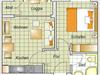 Entre(, ), Stue(, Fjernsyn), åbent køkken(tekøkken, spisebord, kogeplade, kaffemaskine, mikrobølgeovn, opvaskemaskine , køleskab, fryser), soveværelse(dobbeltseng), badeværelse(, toilet, bruser, håndvask), havestue(spisebord), pulterkammer(tørretumbler, vaskemaskine), parkering