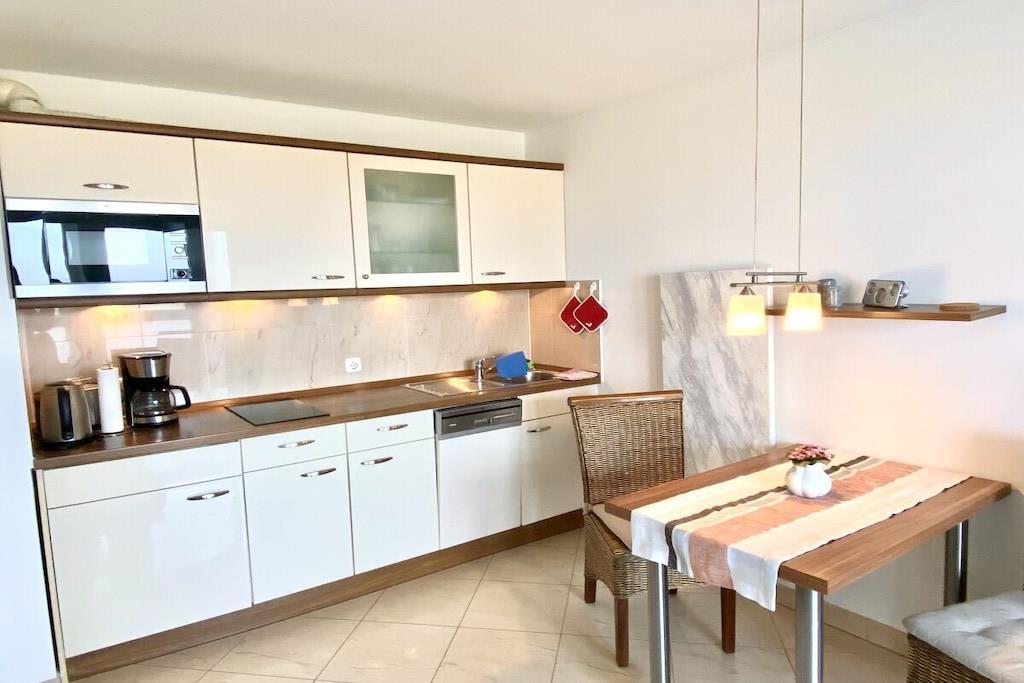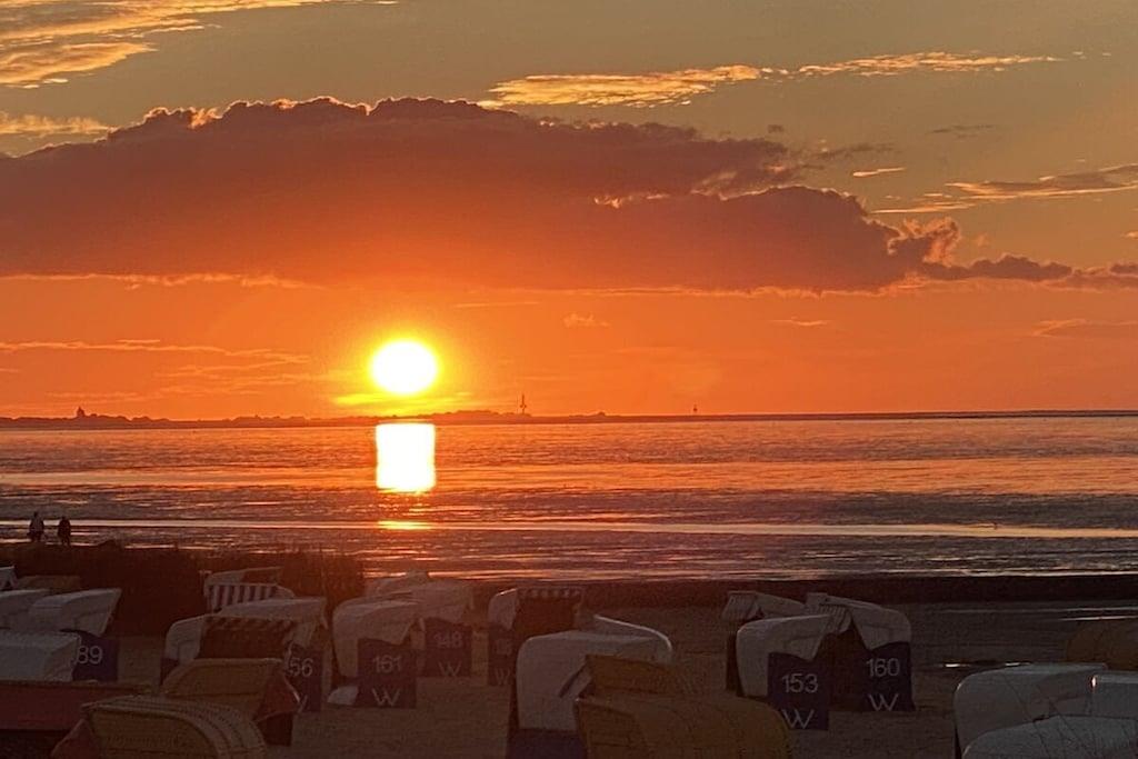 Ferielejlighed "Horizont II" med direkte havudsigt, betagende solnedgange og frisk Nordsøluft. Du bor i en kærligt møbleret toværelses ferielejlighed, ideel til to personer. Udstyret med alt hvad du behøver for en uforglemmelig ferie. Lejligheden ligger i den hævede stueetage, cirka 3 meter over diget (elevator i bygningen). Kort beskrivelse: Fuldt udstyret køkken med opvaskemaskine og mikrobølgeovn Separat soveværelse (seng 200 x 180 cm, mellemfaste madrasser) Nyt badeværelse med rigelig opbevaringsplads Smagfuldt møbleret stue (kabel-tv) Lukket loggia med varme og udsigt over øen Neuwerk Privat parkeringsplads lige foran bygningen Kælderopbevaringsrum, f.eks. til kufferter eller elcykler, med stikkontakter