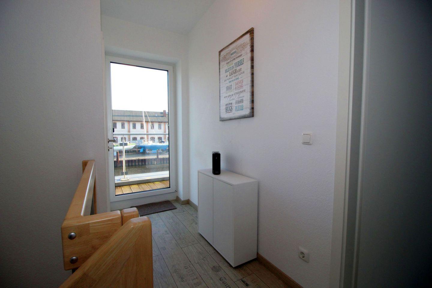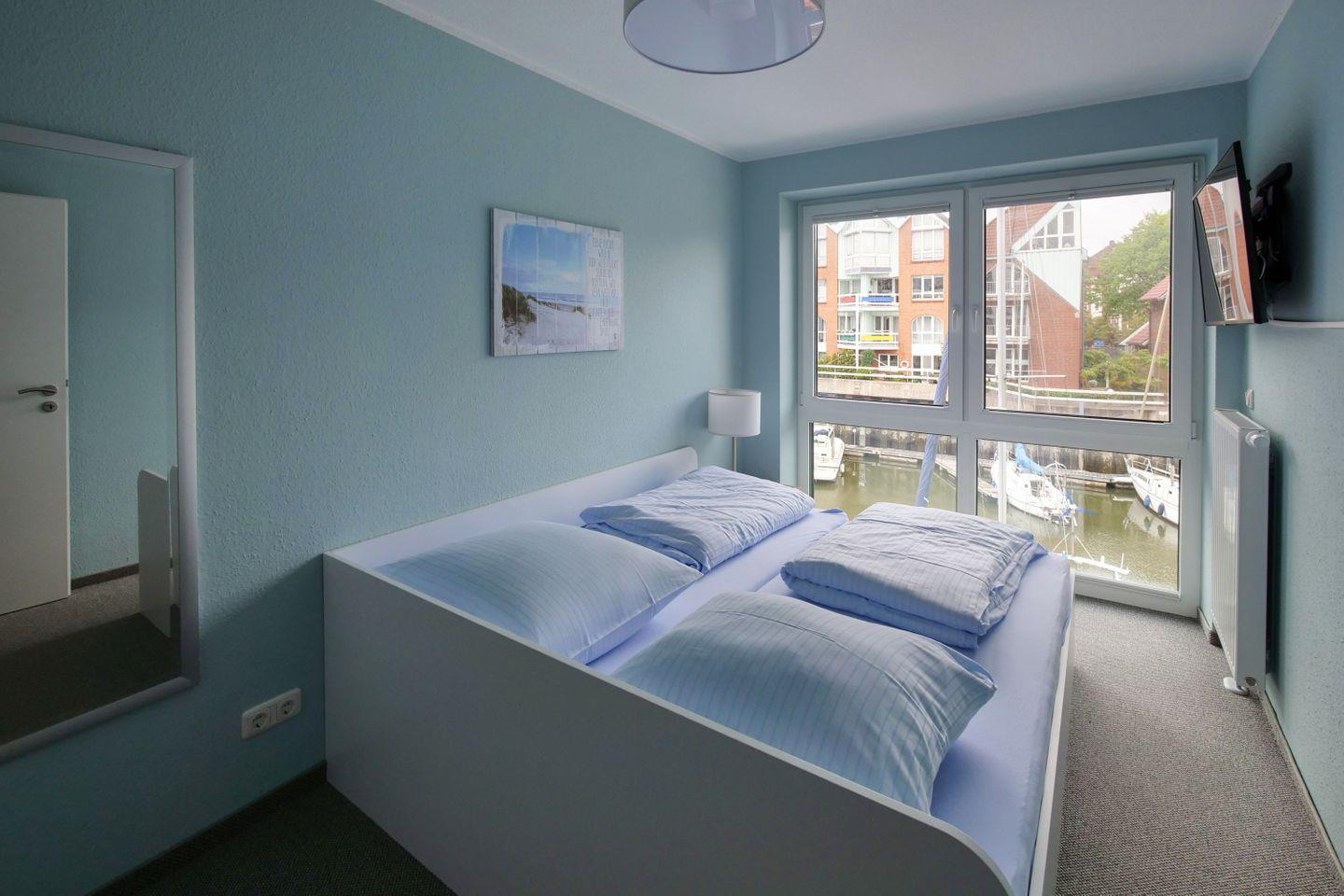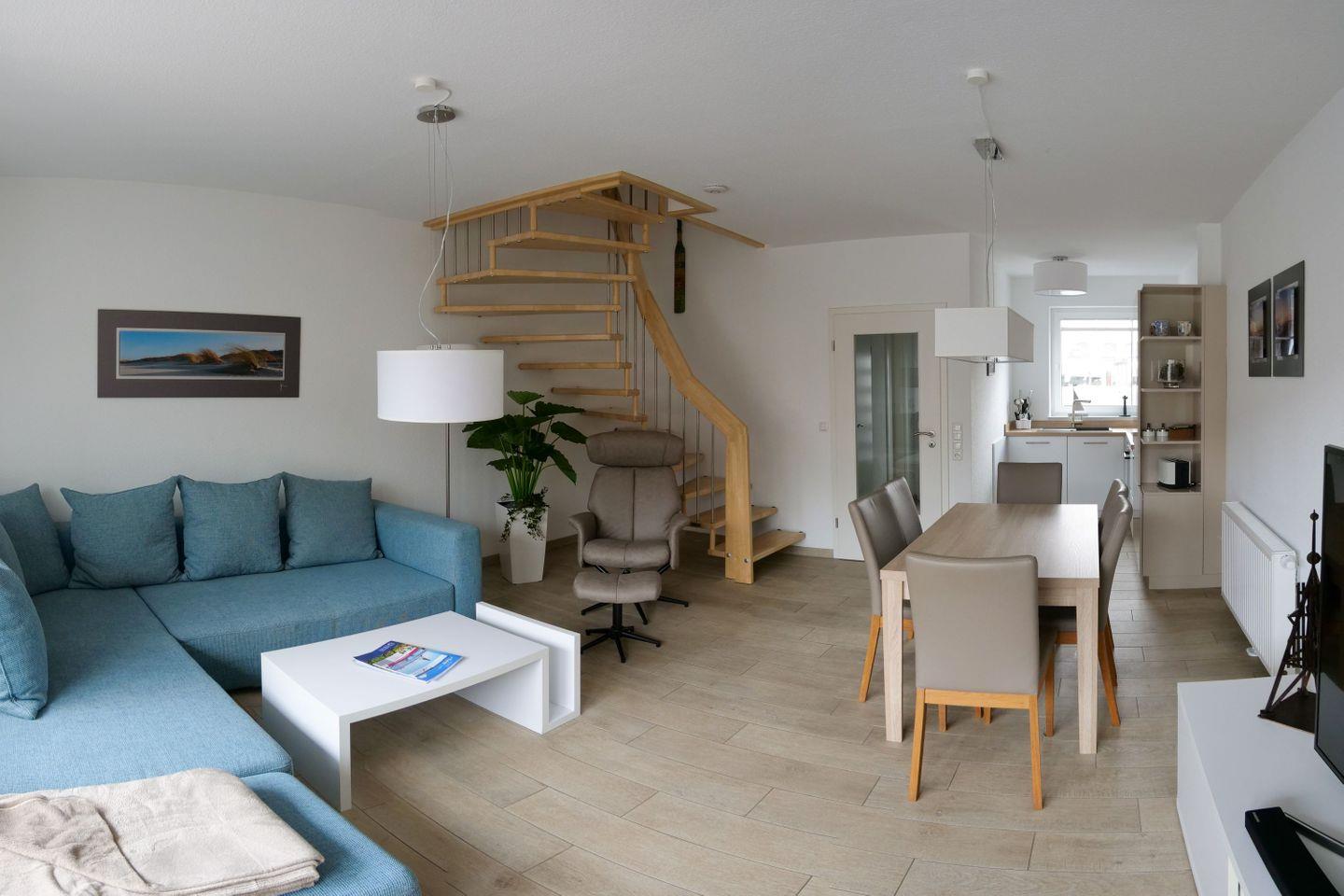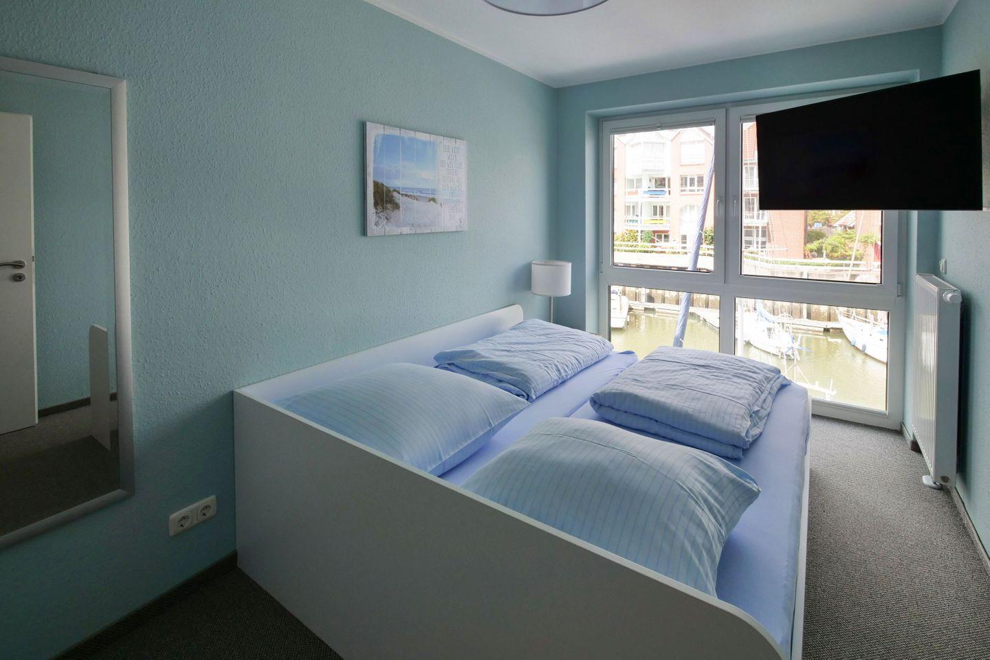Haus "Marina", Typ 1, Nr. 22, 2 bis 6 Pers., EG - 2. Etage, Lage am Yachthafen, ca. 102 qm Wohnfläche auf 3 Etagen, im Erdgeschoß offene Küche mit Backofen, 4-Platten-Ceranfeld und Geschirrspüler, Wohnzimmer mit Flachbild-TV, Zugang vom WZ auf die Terrasse, Gäste-WC, 1. OG: 2 sep. Schlafzimmer jeweils mit Doppelbett, 1mal sep. Bad mit Badewanne, Dusche und WC, Sauna, 2. OG: Schlafzimmer mit Doppelbett und Dachterrasse, 2. Flachbild-TV, Nichtraucher, Haustiere sind nicht erlaubt, Außenstellplatz vor dem Haus, 2.ter Stellplatz in der Nähe, Abstellraum für Fahrräder geeignet vor dem Haus.