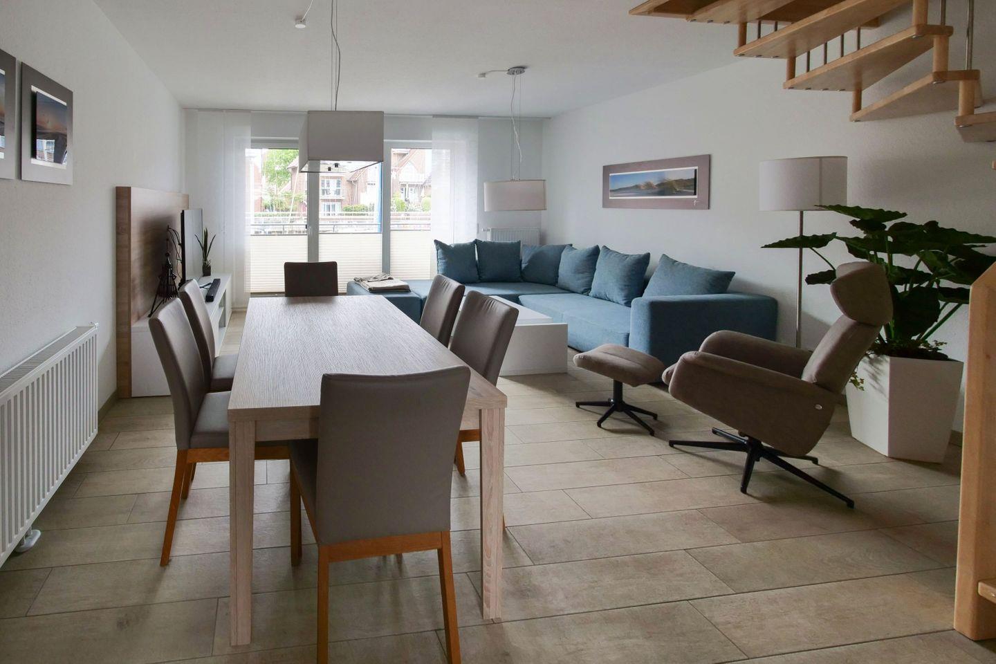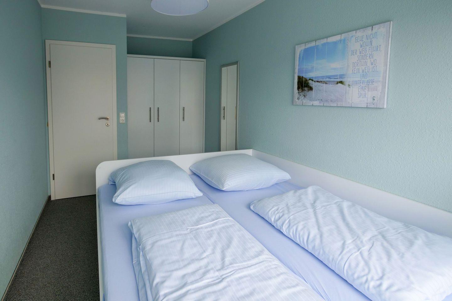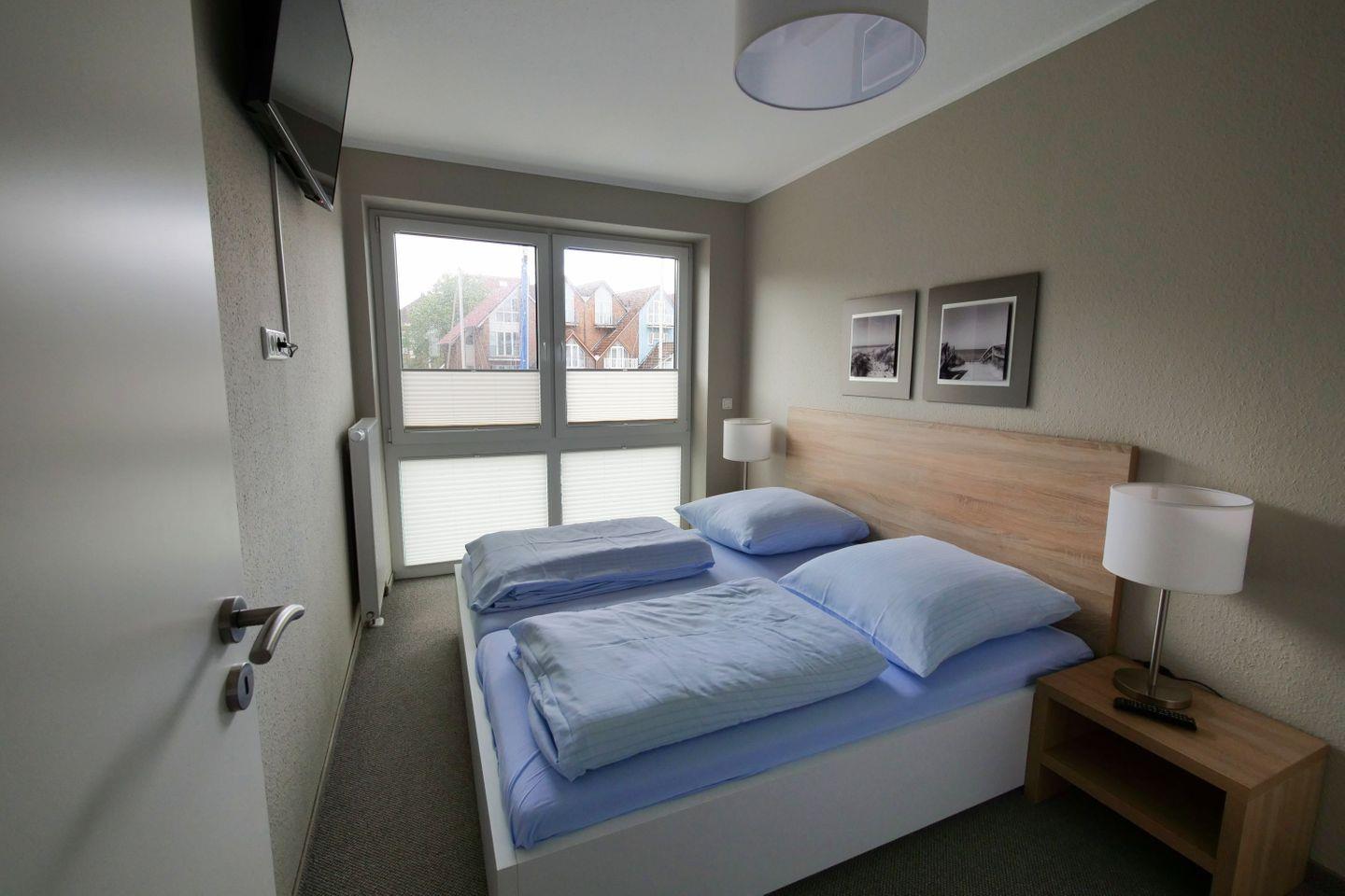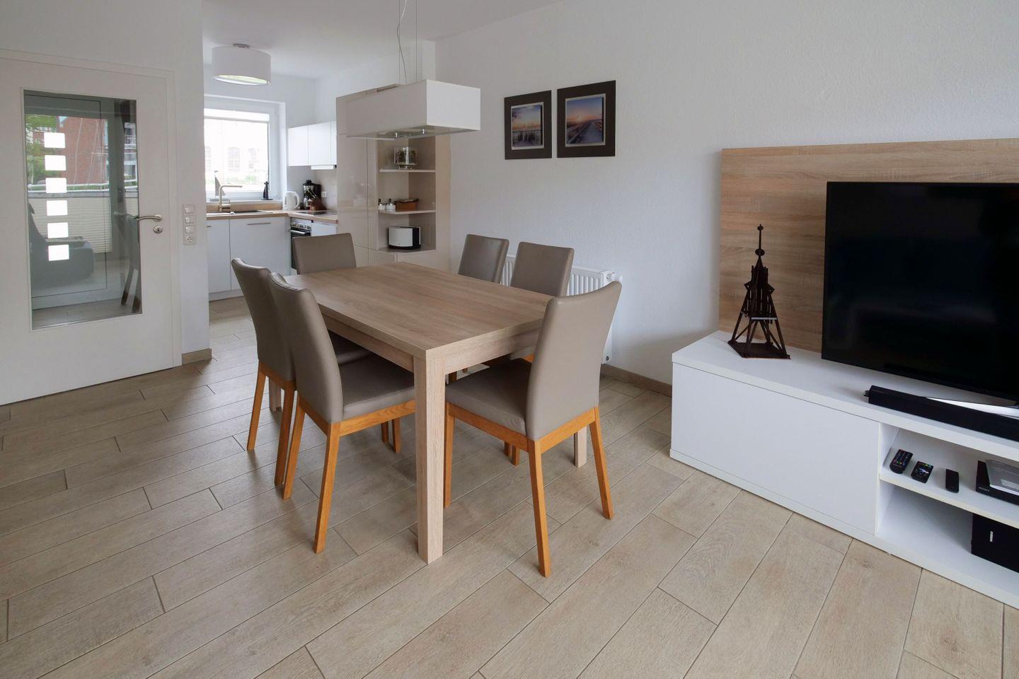 Haus "Marina", Typ 1, Nr. 22, 2 bis 6 Pers., EG - 2. Etage, Lage am Yachthafen, ca. 102 qm Wohnfläche auf 3 Etagen, im Erdgeschoß offene Küche mit Backofen, 4-Platten-Ceranfeld und Geschirrspüler, Wohnzimmer mit Flachbild-TV, Zugang vom WZ auf die Terrasse, Gäste-WC, 1. OG: 2 sep. Schlafzimmer jeweils mit Doppelbett, 1mal sep. Bad mit Badewanne, Dusche und WC, Sauna, 2. OG: Schlafzimmer mit Doppelbett und Dachterrasse, 2. Flachbild-TV, Nichtraucher, Haustiere sind nicht erlaubt, Außenstellplatz vor dem Haus, 2.ter Stellplatz in der Nähe, Abstellraum für Fahrräder geeignet vor dem Haus.
