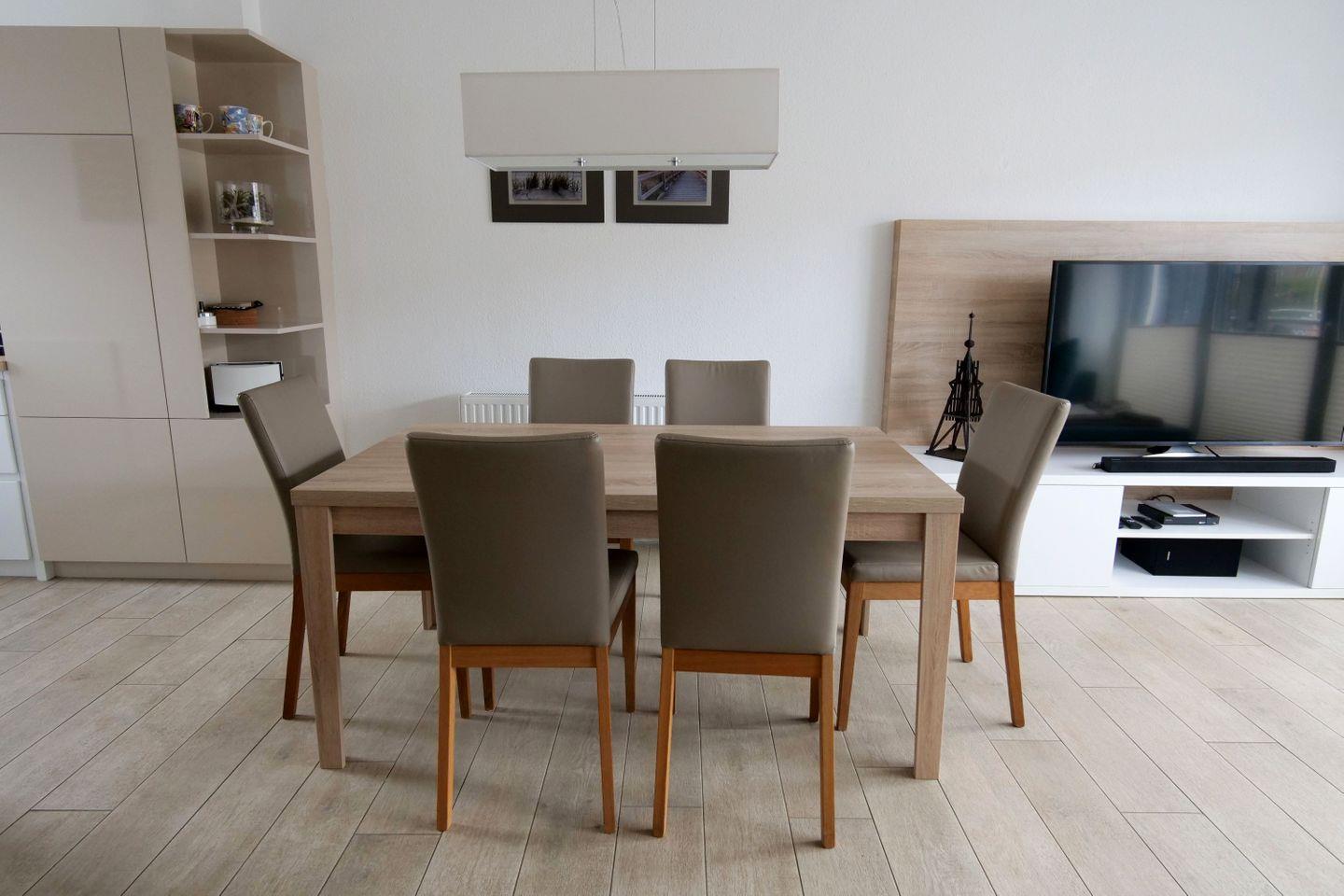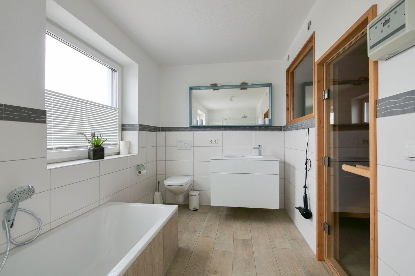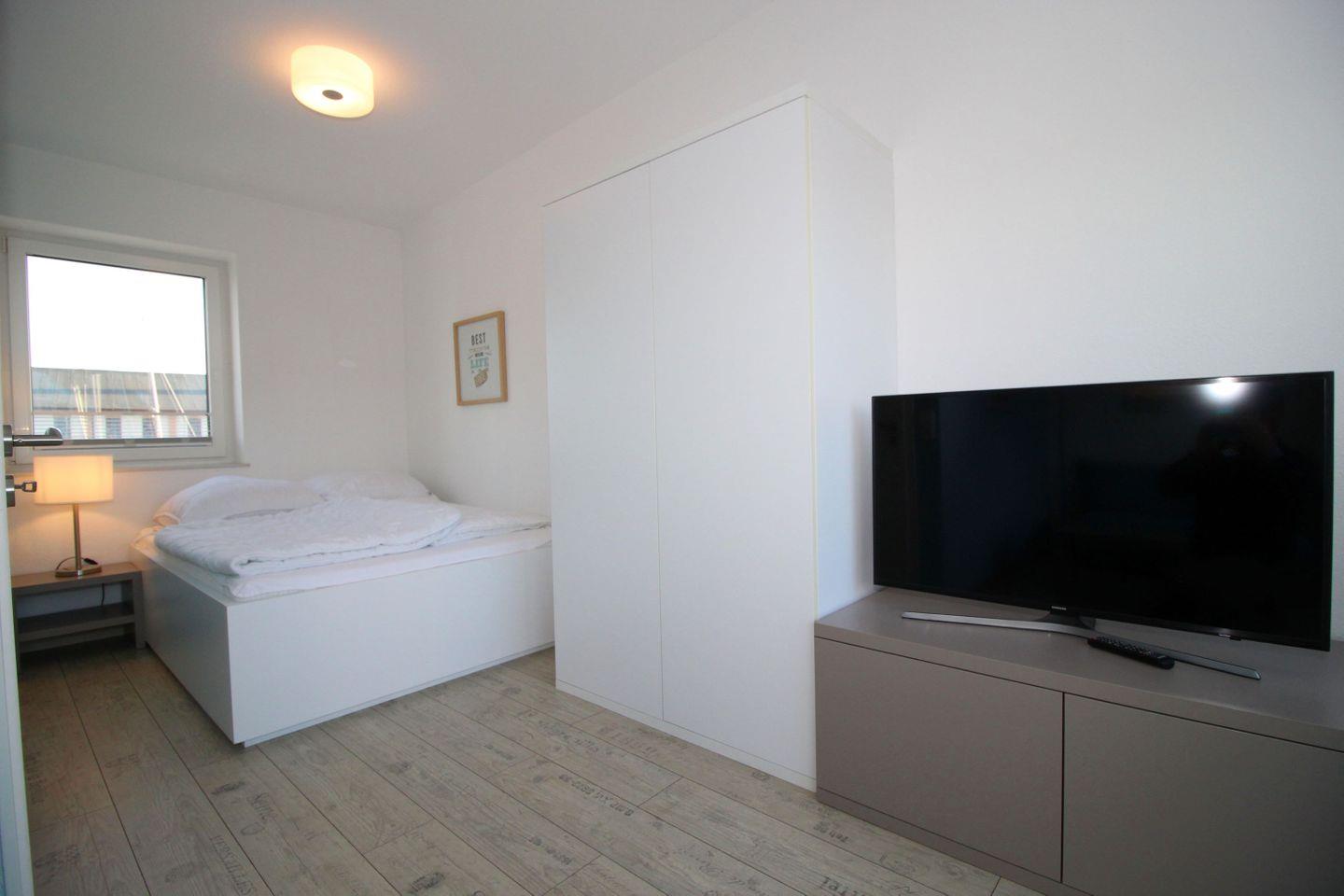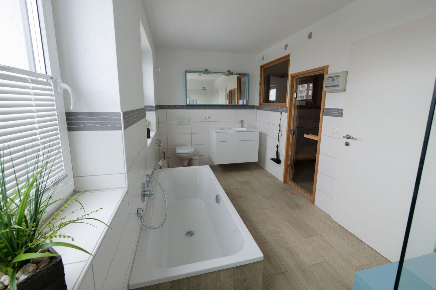 Haus "Marina", Typ 1, Nr. 22, 2 bis 6 Pers., EG - 2. Etage, Lage am Yachthafen, ca. 102 qm Wohnfläche auf 3 Etagen, im Erdgeschoß offene Küche mit Backofen, 4-Platten-Ceranfeld und Geschirrspüler, Wohnzimmer mit Flachbild-TV, Zugang vom WZ auf die Terrasse, Gäste-WC, 1. OG: 2 sep. Schlafzimmer jeweils mit Doppelbett, 1mal sep. Bad mit Badewanne, Dusche und WC, Sauna, 2. OG: Schlafzimmer mit Doppelbett und Dachterrasse, 2. Flachbild-TV, Nichtraucher, Haustiere sind nicht erlaubt, Außenstellplatz vor dem Haus, 2.ter Stellplatz in der Nähe, Abstellraum für Fahrräder geeignet vor dem Haus.