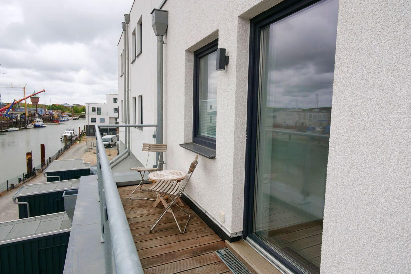 Die Ferienwohnung bietet auf 102 m² und 3 Etagen Platz für 2 bis 6 Urlaubsgäste. Sie liegt direkt auf einer Landzunge und bietet zu einer Seite einen traumhaften Blick in die Marina. Zur anderen Seite schaut man zum Schleusenpriel und auf die vorbeifahrenden Schiffe der Elbe. Das 2016 fertiggestellte Haus geht jetzt erstmals in die Ferienvermietung. Es sticht dabei mit seiner luxuriösen Ausstattung und einer stilvollen Einrichtung hervor. Die Gäste erwartet hier neben einem traumhaften Blick auf den Yachthafen auch maritimer Wohnkomfort auf höchstem Niveau, unter anderem mit einer Sauna im 1. OG. Beliebte Ausflugsziele in Cuxhaven wie die Alte Liebe oder der Alte Fischereihafen können schnell zu Fuß erreicht werden. Durch seine Top-Lage ist das Haus das perfekte Urlaubsdomizil für Familien, Radfahrer, Segler und Wassersportbegeisterte.