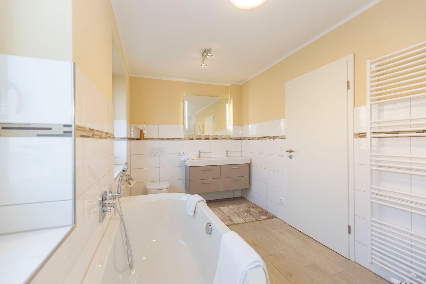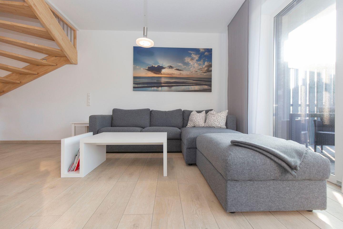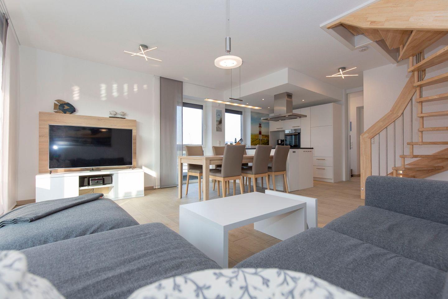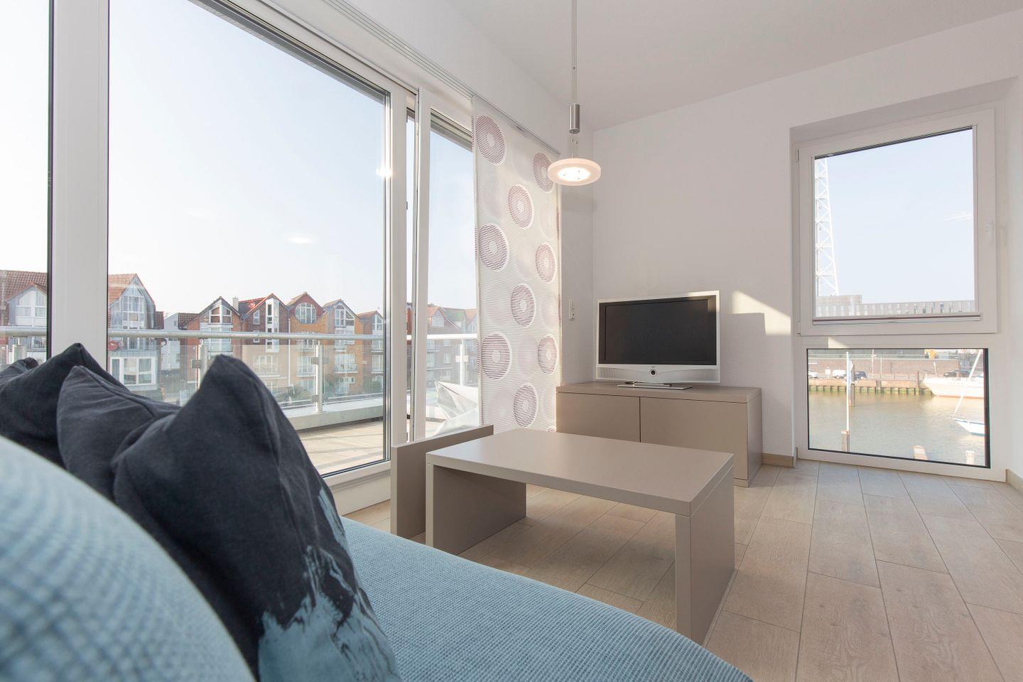 Haus "Marina", Typ1, Nr. 26-C, 2 bis 6 Personen, EG-2.te Etage, Lage am Yachthafen, Neubau, ca. 102 qm Wohnfläche auf 3 Etagen, im Erdgeschoss offene Küche mit Backofen, 4-Platten-Ceranfeld und Geschirrspüler, Wohnzimmer mit Flachbild-TV, WLAN, Zugang vom WZ auf die Terrasse, Gäste-WC, 1 OG: 2 sep. Schlafzimmer jeweils mit Doppelbett (1 Flachbild-TV), Bad mit Dusche, Wanne und WC, 2 OG: Schlafzimmer mit Doppelbett und Dachterrasse, 3. Flachbild-TV, Waschmaschine und Trockner im Abstellraum, Nichtraucher, Haustiere sind nicht gestattet, Außenstellplatz vor dem Haus, 2. PKW-Stellplatz in der Nähe, Abstellraum für Fahrräder geeignet vor dem Haus.
