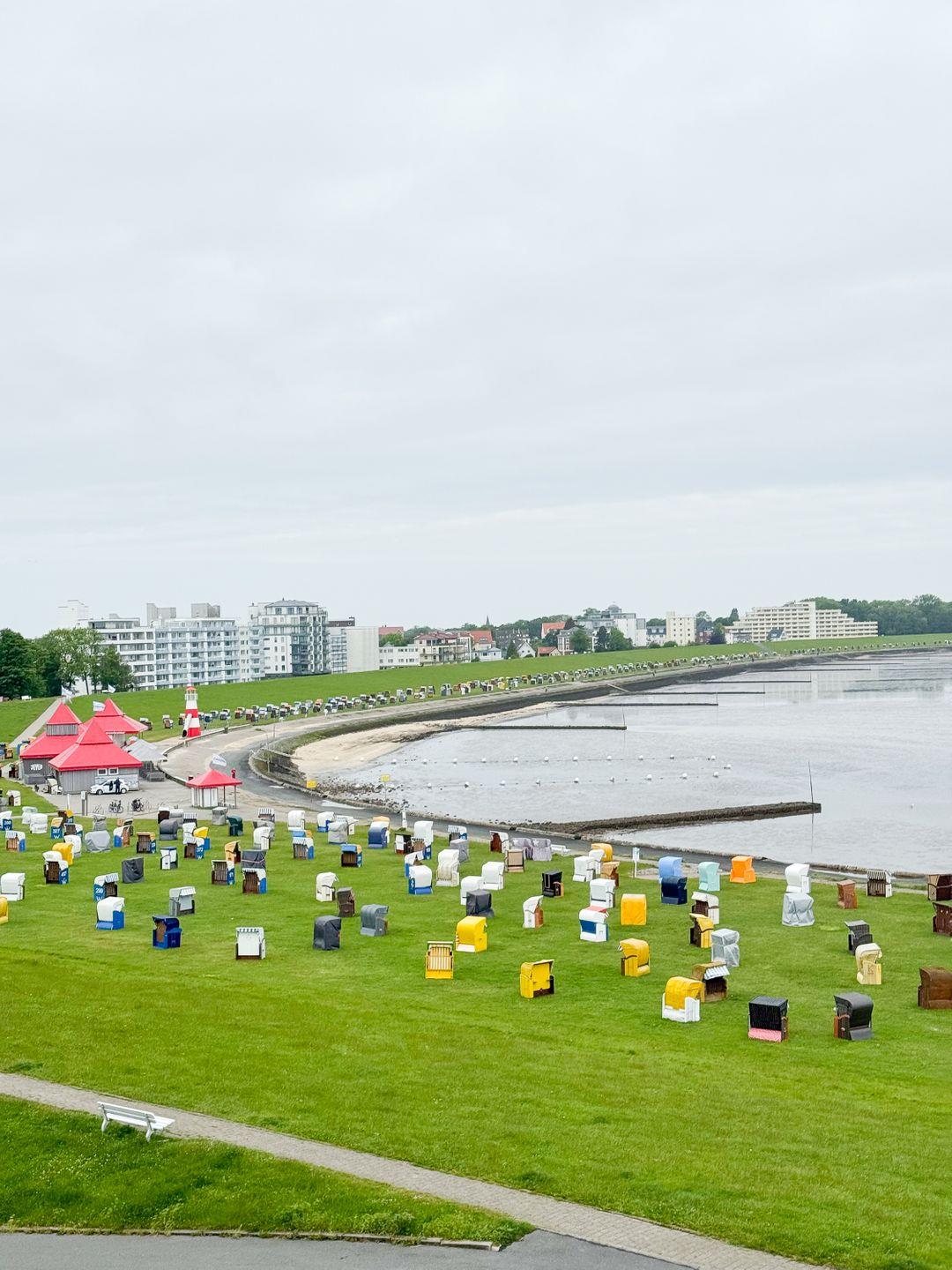Mit Blick auf das Meer aus der 3. Etage starten unsere Gäste in dieser Ferienwohnung in jeden Urlaubstag. Die FeWo in Cuxhaven punktet mit eleganter, schlichter Einrichtung, zentraler Lage und Wohlfühlambiente. Auf ca. 76 m² finden bis zu 3 Urlaubsgäste Platz, optimal für Paare oder oder kleine Familien. Das Haus ‚Seeterrassen’ befindet sich direkt an der Nordsee. Von hier aus blicken Sie auf zahlreiche Schiffe und eine grüne Wiese voller Strandkörbe. Das ist Urlaub in Cuxhaven.