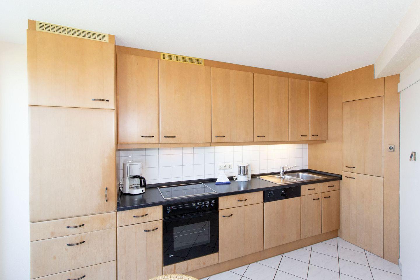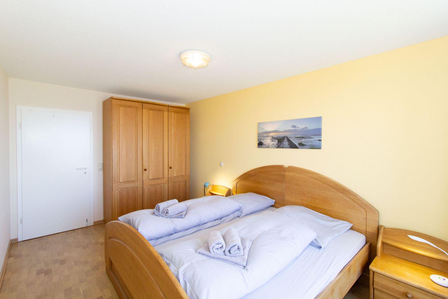 Haus "Seeterrassen", Typ B, Whg. Nr. 34, Eingang 38, bis 3 Personen, 3. Etage, ca. 76 m², direkte Seesicht auf den Weltschifffahrtsweg, Wohnbereich, erstes Schlafzimmer mit Doppelbett, zweites innenliegendes Schlafzimmer mit Einzelbett, Dusche/WC, sep. Küche mit Geschirrspüler, 4-Platten-Ceranfeld und Backofen, Kabel-TV, WLAN mit eigenem Router, Balkon, eigener Außenstellplatz, Haustiere sind nicht erlaubt, Nichtraucherwohnung.