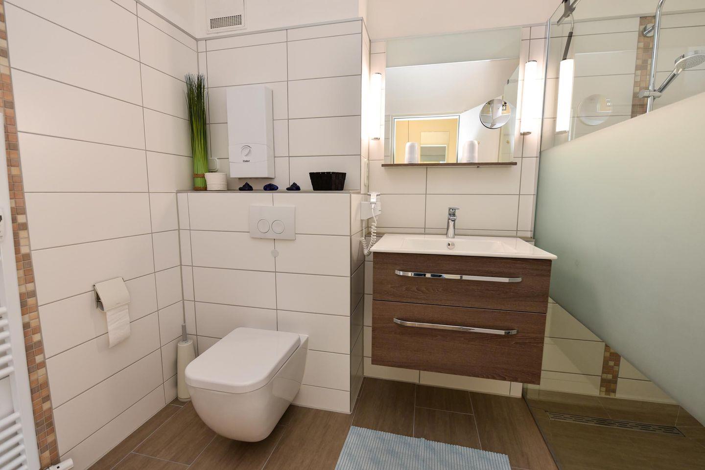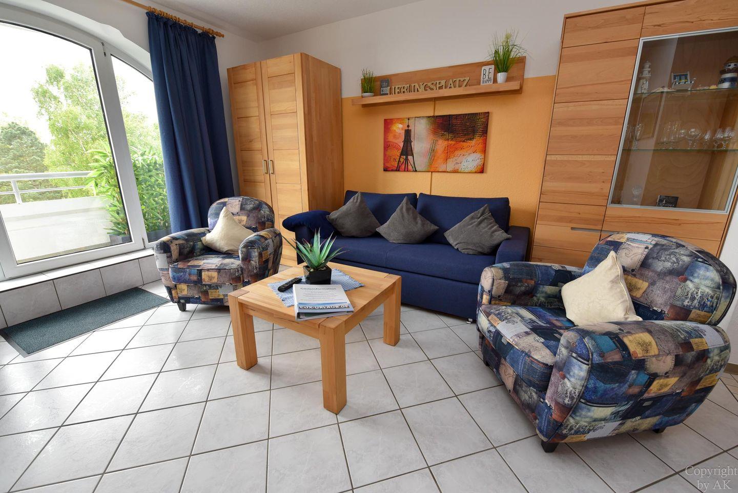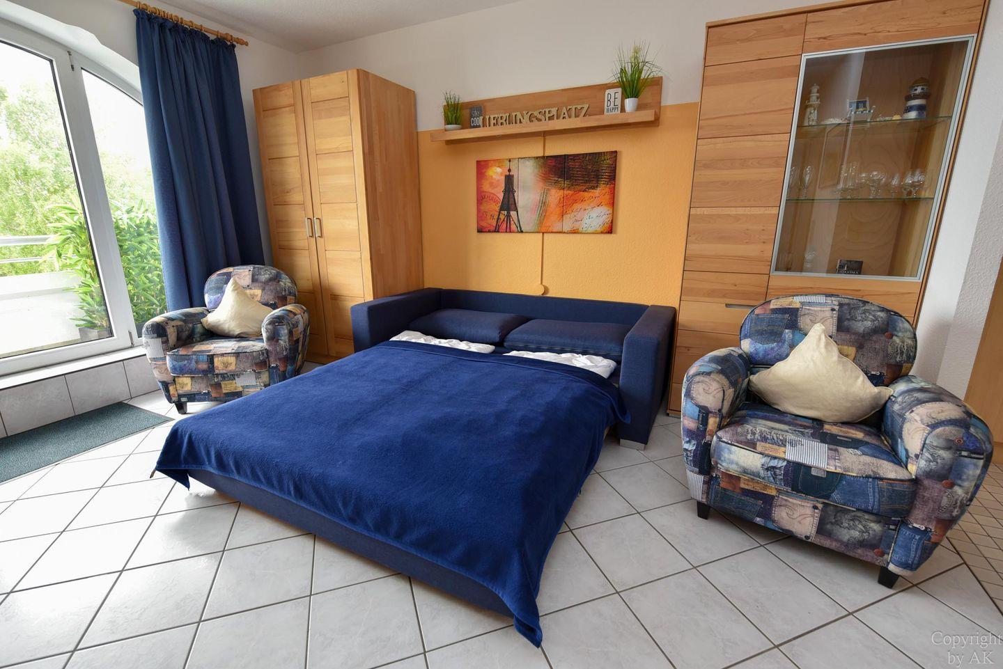 Renoviertes, liebevoll und gemütlich eingerichtetes, helles sonniges Appartement mit Südbalkon, gefliest und Allergiker geeignet. Ein Wohnraum mit Kleiderschrank, Vitrine, Couch (Schlafcouch), 2 Sessel, Couchtisch und Esstisch mit 4 Stühlen. 48“ Smart-TV mit SAT-Empfang inkl. SKY CINEMA. Stereo-Kompakt-Anlage mit CD, USB. Ein separates Schlafzimmer mit zwei Einzelbetten, Kommode u. 32" TV mit SAT-Empfang inkl. SKY CINEMA. Moderne Küchenzeile mit 4-Platten-Ceranfeld, Kühlschrank, Geschirrspüler, Mikrowelle und 2 Kaffeemaschinen. Komplett saniertes geräumiges Bad mit begehbarer Dusche. Großer Kleiderschrank im Flur. Eigener PKW-Stellplatz.