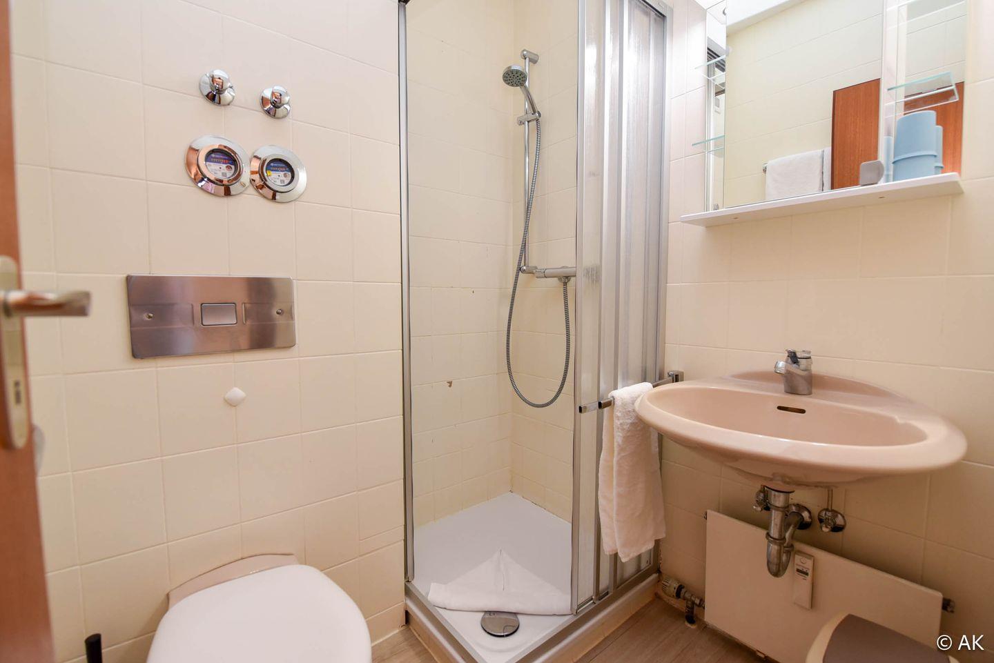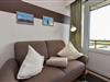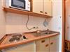 Im Wohnbereich befinden sich zwei einzelne Klappbetten, ein Sofa sowie ein Esstisch mit Stühlen, von dem aus Sie einen schönen Ausblick genießen können. Die kleine Küchennische ist mit einem 2-Platten-Herd und einer Mikrowelle ausgestattet, sodass Sie problemlos kleine Mahlzeiten zubereiten können. Abgerundet wird die Wohnung durch ein Duschbad. Ein kostenloser Internetzugang sowie ein Tiefgaragenstellplatz (maximale Einfahrtshöhe 149 cm) stehen Ihnen ebenfalls zur Verfügung.
