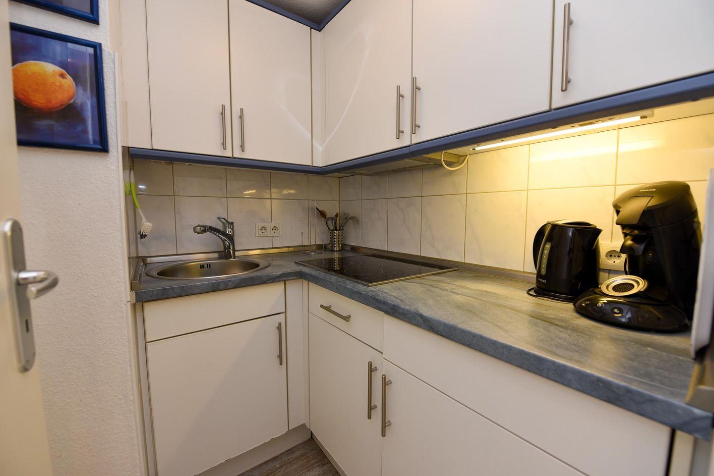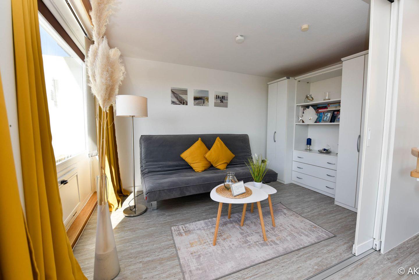 2 Zimmer Penthouse-Maisonette-Appartement im 5. OG mit großer Dachterrasse und eigenem Strandkorb (01.05.-30.09.) am Sandstrand von Döse. Wohnbereich mit Panoramablick über Cuxhaven. Vom Wohnraum trennbar befindet sich 1 Schlafraum mit Schlafcouch und Panoramablick. Die Küche ist modern eingerichtet mit Kühlschrank *** und Ceranfeld-Herd. Auf der 165cm bis 175cm hohen Schlafempore steht ein Ehebett (160/200 cm). Das Penthouse verfügt über ein großes Duschbad mit Walk-in Dusche, zwei Waschbecken und einem WC. Es gibt einen Abstellraum, sowie einen PKW-Tiefgaragenstellplatz mit einer Einstellhöhe bis 190 cm. Der Eigentümer stellt seinen Gästen aber auch einen Parkausweis bis zum 31.12., für den städtischen Parkplatz vor dem Haus zur Verfügung-Der Fahrstuhl geht von der Tiefgarage bis in den 5.Stock.