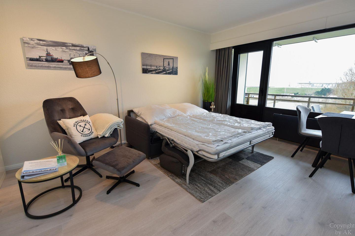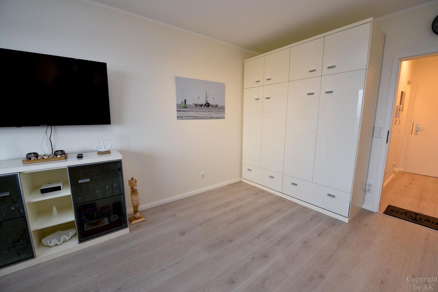 Entdecken Sie dieses moderne 1-Zimmer-Seeblick-Appartement, frisch renoviert im Jahr 2024 und ideal gelegen im 2. Obergeschoss. Genießen Sie die tolle Aussicht von Ihrem privaten Balkon aus. Der Wohn-/Schlafraum bietet ein flexibles Wohnkonzept: ausgestattet mit einer bequemen Schlafcouch, zwei einladenden Sesseln und einem praktischen Schrankbett. Die gemütliche Essecke lädt nicht nur zum Essen, sondern auch zum Verweilen und Schiffe gucken ein, während Sie in der voll ausgestatteten Küche mit modernen Geräten wie Backofen, Nescafé Dolce Gusto Kaffeemaschine, Mikrowelle, Geschirrspüler und einem großen Kühlschrank kulinarische Erlebnisse zaubern können. Das helle und geräumige Duschbad verfügt über ein Doppelwaschbecken und ein WC, um Ihren Aufenthalt komfortabel zu gestalten. Für Ihre Bequemlichkeit steht Ihnen ein Parkausweis zur Verfügung, mit dem Sie in den umliegenden Bereichen kostenfrei parken können.