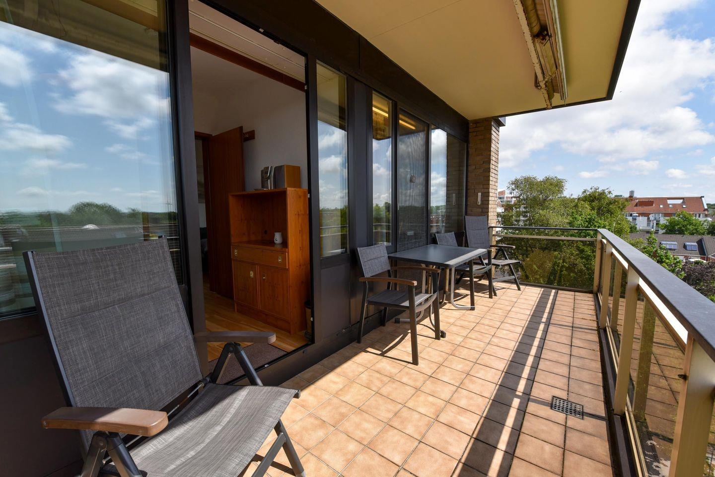 Auf der Nordseite lädt eine große Terrasse mit Doppel Sonnenliege zum Verweilen ein – mit direktem Blick auf das Meer, den Weltschifffahrtsweg und das Wattenmeer. Der sonnige Südbalkon bietet zusätzlich einen geschützten Platz mit schönem Landschaftsblick.
