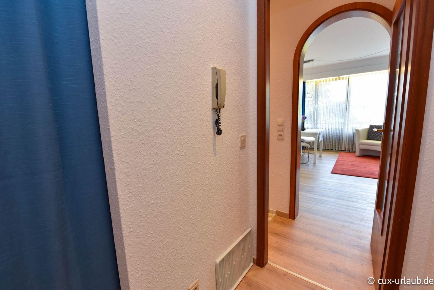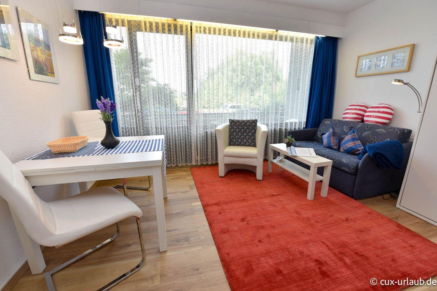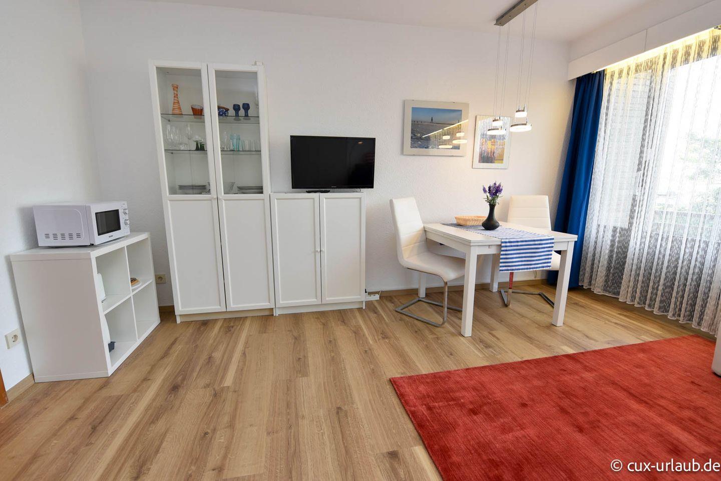 1-Zimmer Appartement im Erdgeschoss . Das Appartement verfügt über eine moderne Einrichtung für 2 Personen und eine separate Küchennische. Im Wohn-/Schlafbereich befindet sich ein Doppelschrankbett, ein Sofa sowie ein Sessel. WC/Wannenbad mit Doppelwaschbecken. Der Tiefgaragenstellplatz hat eine Einstellhöhe von 149 cm. Der Eigentümer stellt seinen Gästen aber auch einen Parkausweis ( 01.01. - 31.12. )für den städtischen Parkplatz vor dem Haus zur Verfügung.
