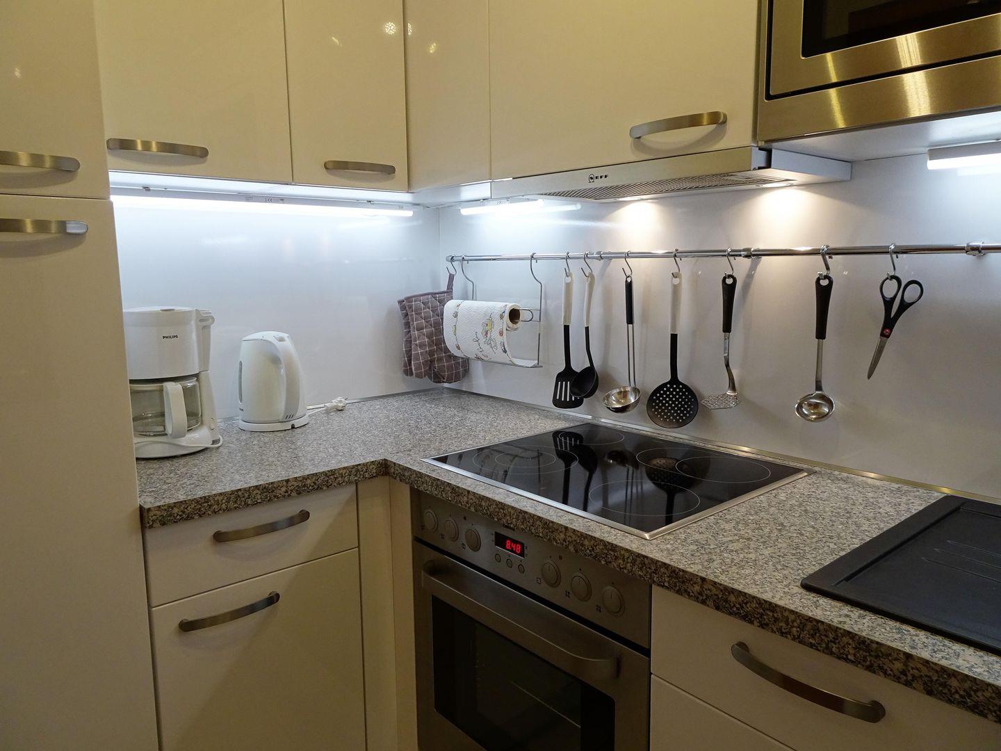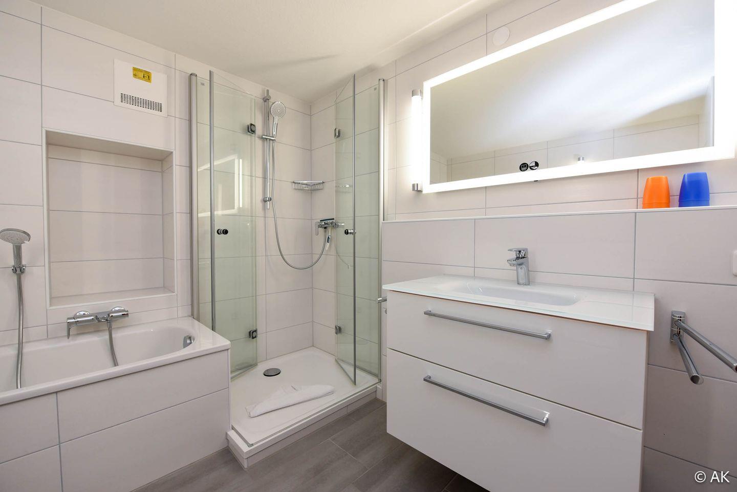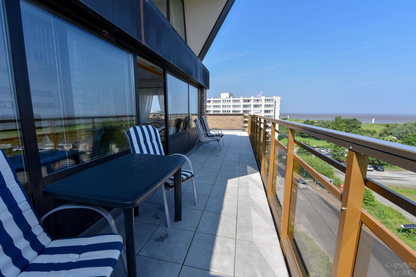 2-Zimmer-Appartement im 5. Obergeschoss in Nordwestlage mit herrlichem Blick auf den Weltschifffahrtsweg und das UNESCO-Weltnaturerbe Wattenmeer. Der Wohnbereich ist mit einem Schlafsofa, zwei Sesseln sowie einem Esstisch mit vier Stühlen ausgestattet. Der Schlafraum auf der Empore, mit einer Kopfhöhe von 165–175 cm, verfügt über zwei Einzelbetten (120 cm x 200 cm). Die Küchenzeile ist gut ausgestattet und bietet alles für die Zubereitung kleiner Mahlzeiten. Das Badezimmer wurde renoviert und ist nun mit WC, Badewanne, Dusche und einem Waschbecken ausgestattet. Zum Appartement gehört außerdem ein Strandkorb (01.05.–30.09.) am nahegelegenen Sandstrand von Döse. Ein kostenloser Tiefgaragenstellplatz (Einfahrtshöhe 190 cm) steht ebenfalls zur Verfügung.