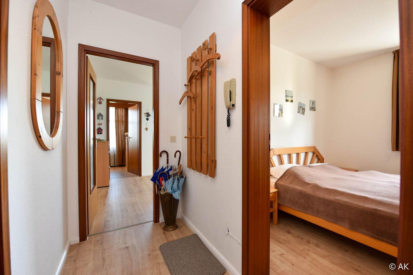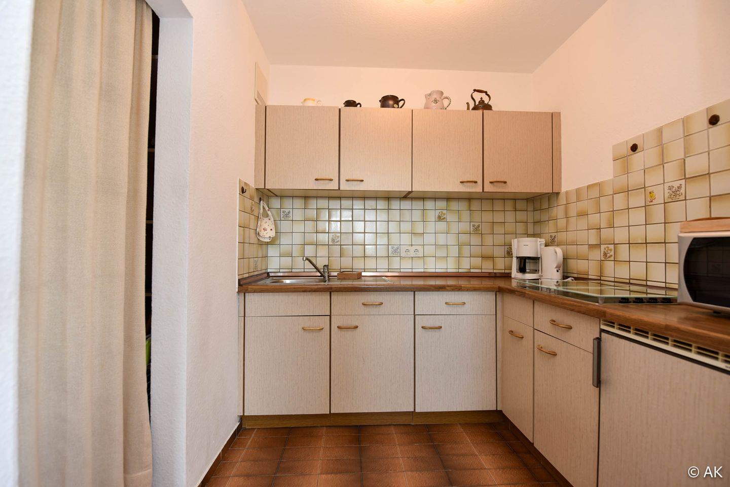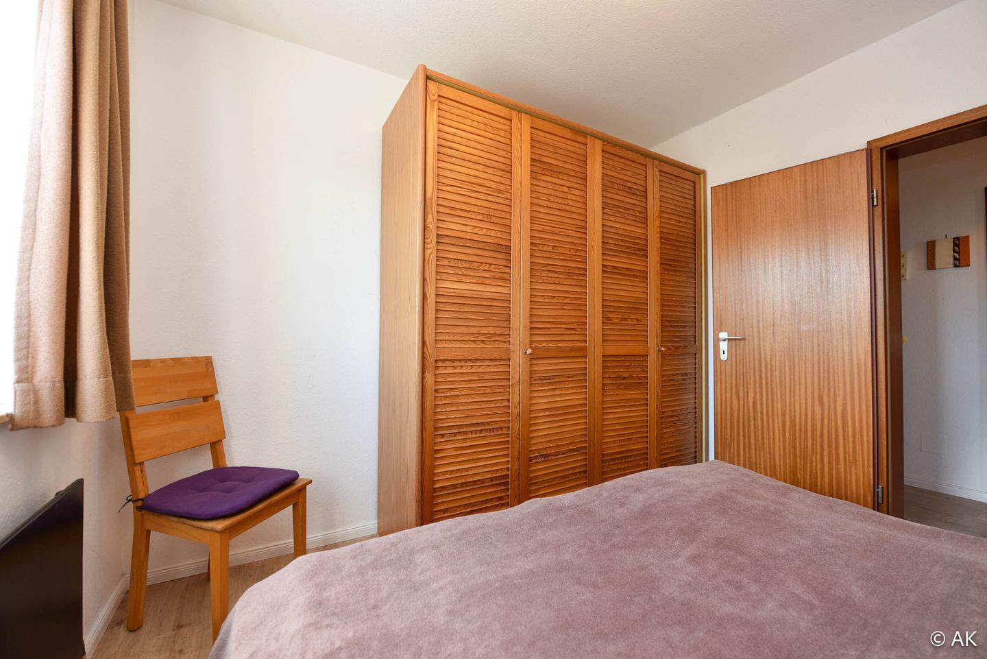 3-Zimmer Appartement für 2-4 Personen im 4. OG mit großem Seesicht-Balkon. Das geräumige Appartement verfügt über eine vom Wohnraum abgetrennte Küche, welche u.a. mit einem Kühlschrank, einem Herd und einer Mikrowelle ausgestattet ist. Im Wohnbereich befindet sich ein gemütliches Ecksofa, sowie ein Esstisch für 4 Personen. Vom Wohnbereich aus geht es zum großen Nord-Ost-Balkon. Schlafraum Nr. 1 ist mit einem Ehebett ausgestattet und Schlafraum Nr. 2 mit einem Etagenbett. Duschbad-WC. Der kostenlose Tiefgaragenstellplatz hat eine Einstellhöhe von 149 cm.