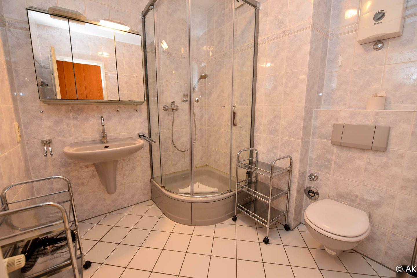 Im geräumigen Schlafzimmer sorgt ein komfortables Doppelbett, Einbauschränke, ein Wandspiegel und eine ausziehbare Schlafcouch für zwei Personen für optimale Erholung. Zusätzlich bieten wir Ihnen kostenfreie Telefonate ins deutsche Festnetz an.