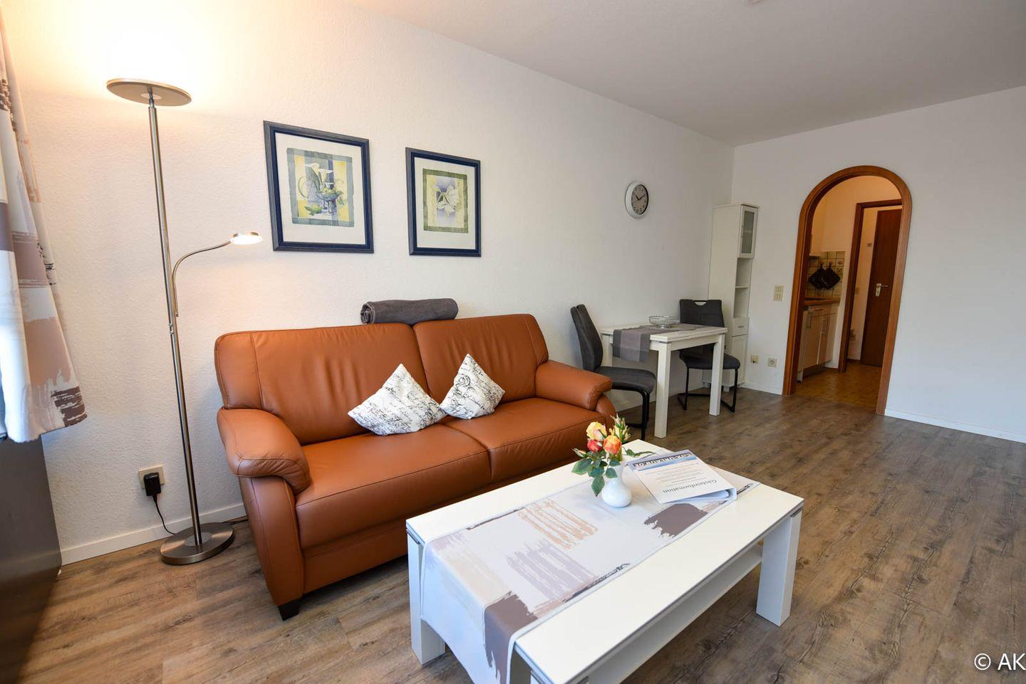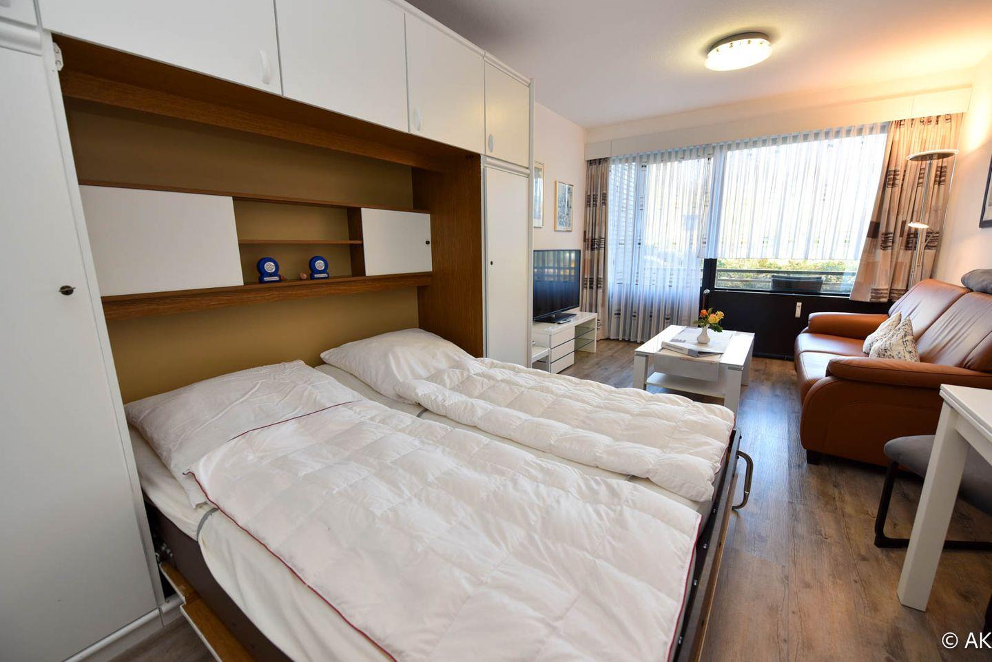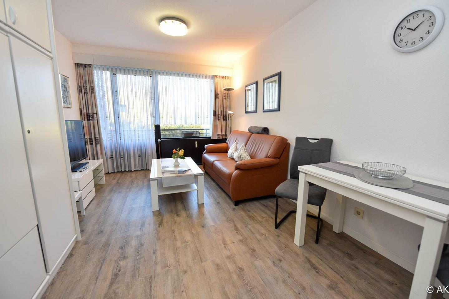 Sonniges 1-Zimmer Ferienappartement im Erdgeschoss im Haus JAN AM STRAND mit Balkon. Hell und modern eingerichtetes Appartement für 2 Personen. Mit einer neuen separaten Küchennische inkl. Mikrowelle und Geschirrspüler. Im Wohnbereich befindet sich u.a. ein Doppel-Schrankbett, ein Ledersofa und ein Esstisch mit zwei Stühlen. WC/Duschbad. Der dazugehörige Tiefgaragenstellplatz hat eine Einstellhöhe von 149 cm. Buchungen unter 7 Nächte mit Absprache möglich!