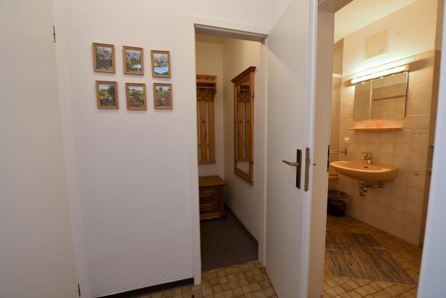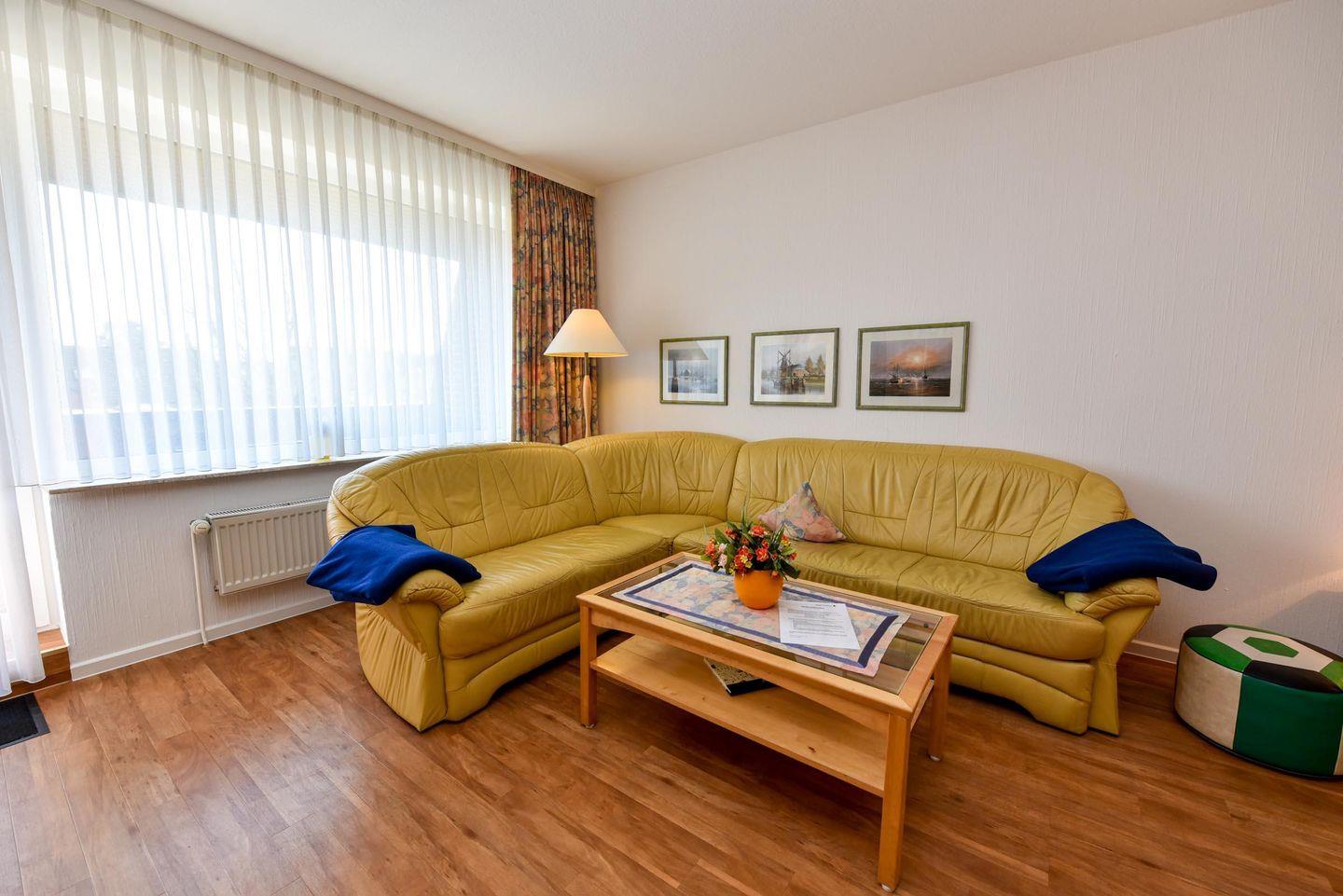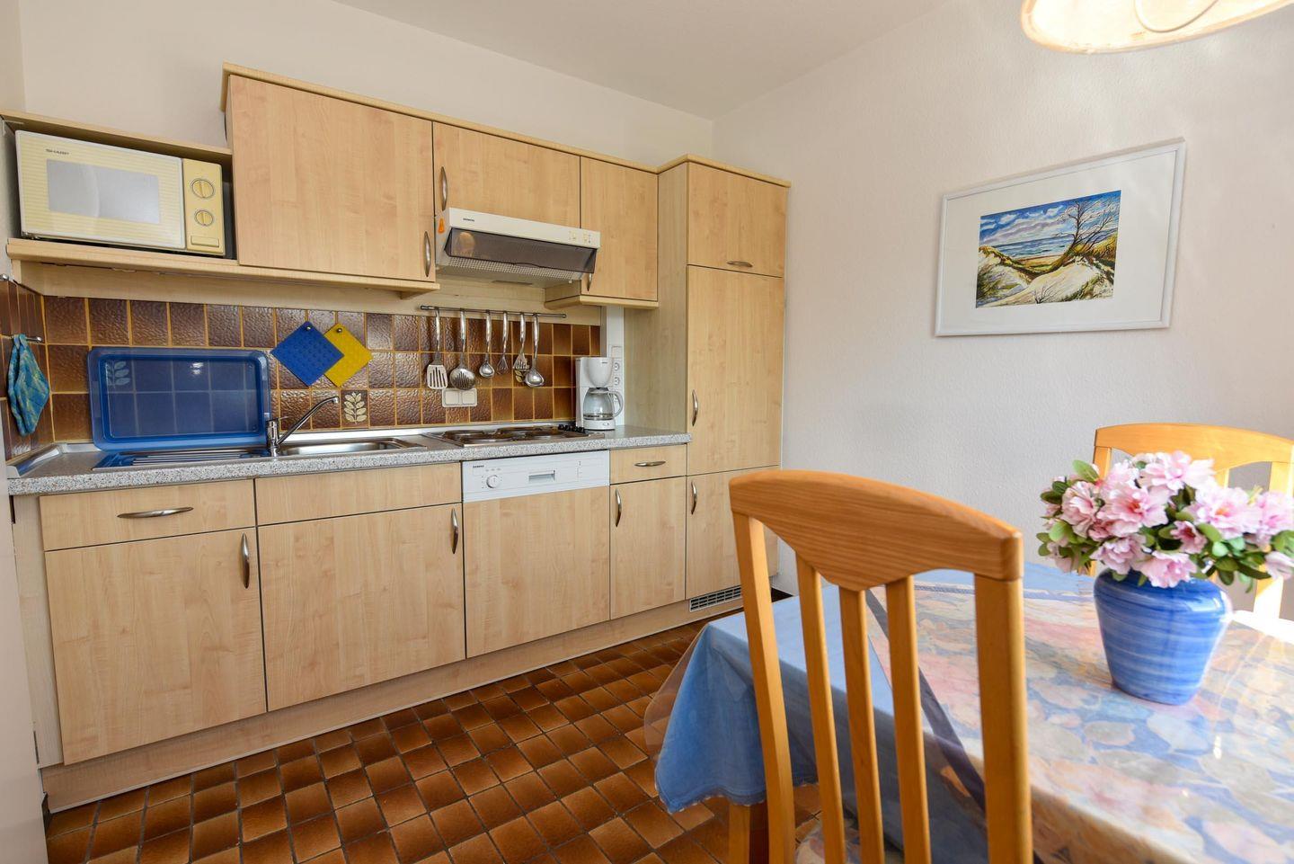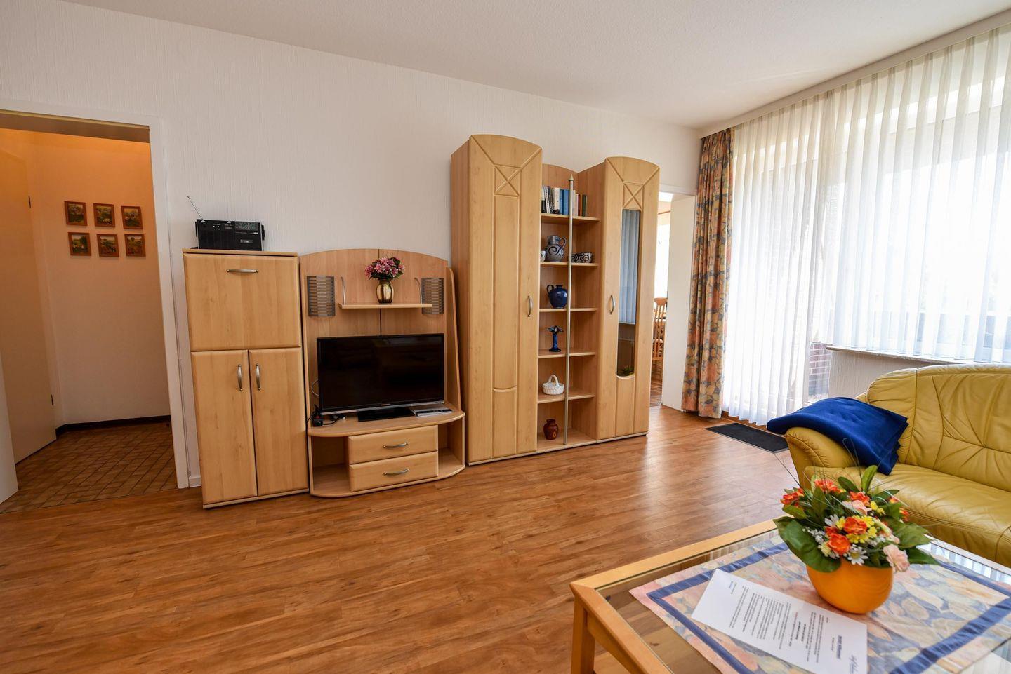1-Zimmer-Ferienwohnung im 1. OG des Hauses LEE mit kostenfreiem WLAN. Sehr schöne und komfortable Ferienwohnung: 1 Wohn-Schlafraum (Ehebett). 1 Küchenraum mit Esstisch, Stühle, Einbauküche mit Mikrowelle und Geschirrspüler. Im Wohn-/Schlaf-raum Couchgarnitur und Ehebett. Wannenduschbad/WC, Kabel-TV, Balkon. Spielrasen, Spielgerät und Sandkiste auf dem Grundstück, PKW-Stellplatz. Schwimmbadnutzung kostenfrei!