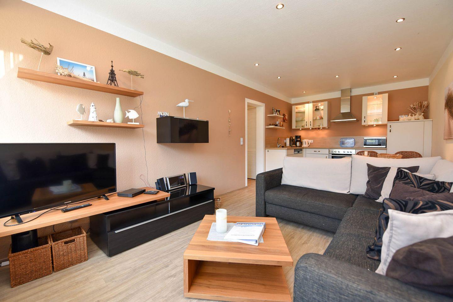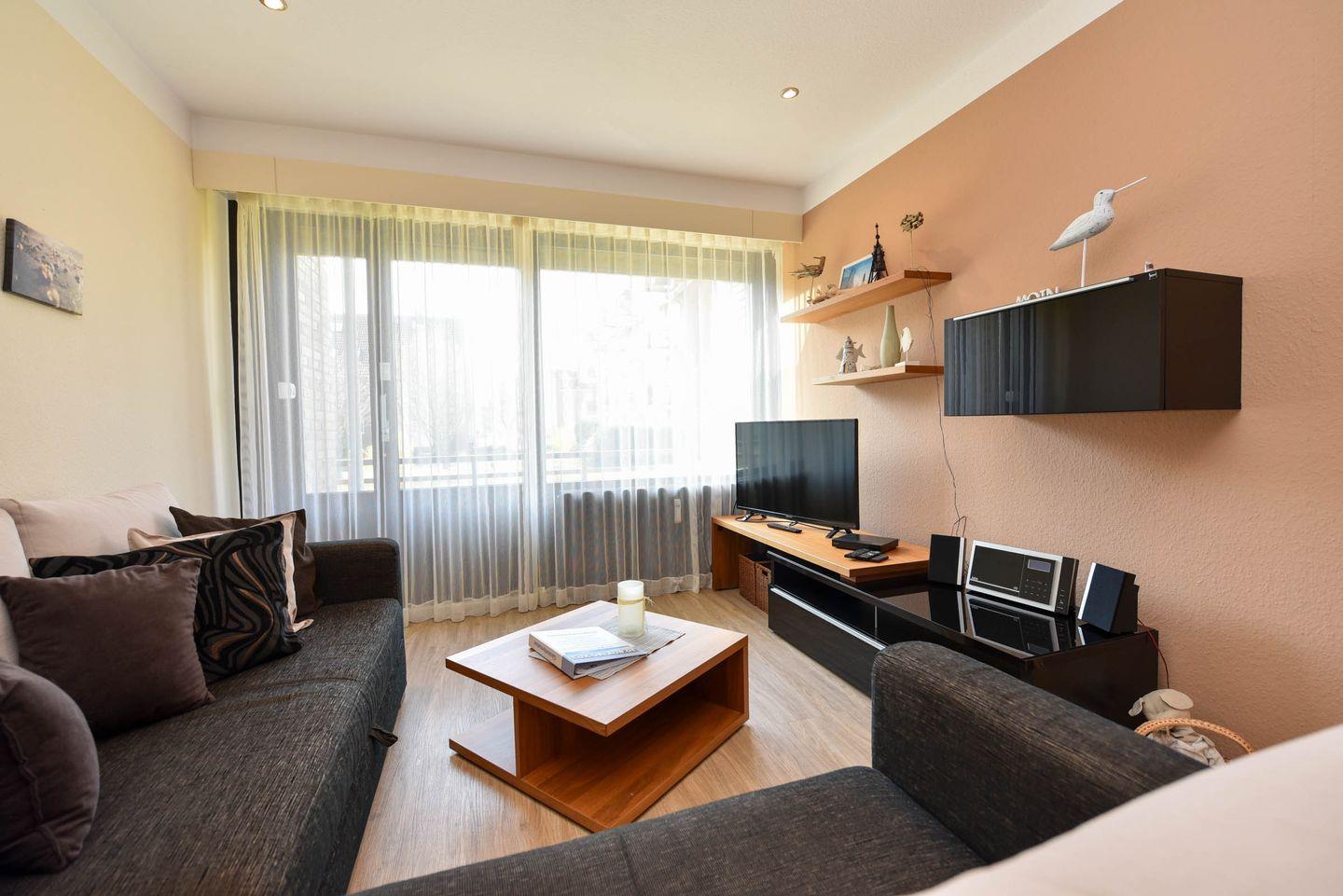 2 Zimmer Ferienappartement im Erdgeschoss im Haus JAN AM STRAND. Das nach Süden gelegene Ferienappartement ist hochwertig und komfortabel eingerichtet. Im Schlafzimmer befindet sich ein bequemes Doppelbett und im Wohnzimmer bietet eine Schlafcouch eine zusätzliche Schlafmöglichkeit. Die komplett ausgestattete Küche erlaubt es Ihnen sich selbst zu verpflegen. Zu der Wohnung gehört auch ein Tiefgaragenstellplatz mit einer Einstellhöhe von 149cm und ein Parkschein der Ihnen das kostenlose parken auf dem öffentlichen Parkplatz vom 01.01. - 31.12. gegenüber erlaubt.