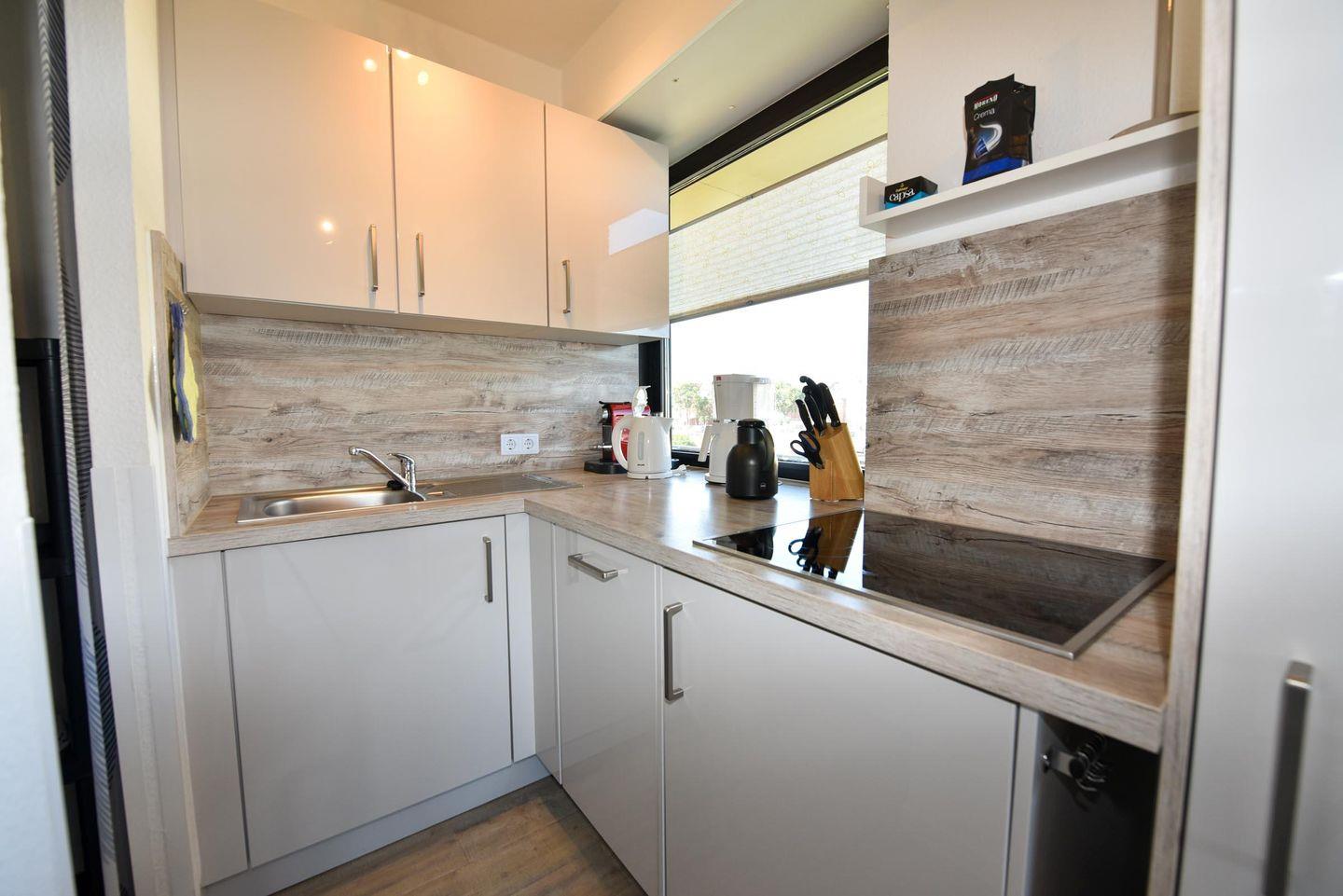 Schön renoviertes 2-Zimmer-Appartement im 1 OG. mit 2 großen Balkon-Terrassen mit Blick in Richtung Weltschifffahrtsweg. Große Kochnische mit Spülmaschine und Kapsel-Kaffeemaschine. Im Wohnbereich befindet sich ein Esstisch mit vier Stühlen, einem Schlafsofa sowie einem Flach-TV mit Kabelanschluss. Im Schlafraum steht ein Ehebett. Helles und neu renoviertes Bad mit tiefer Dusche. Auch ist ein separates WC vorhanden. Der Tiefgaragenstellplatz hat eine Einstellhöhe bis 149 cm.
