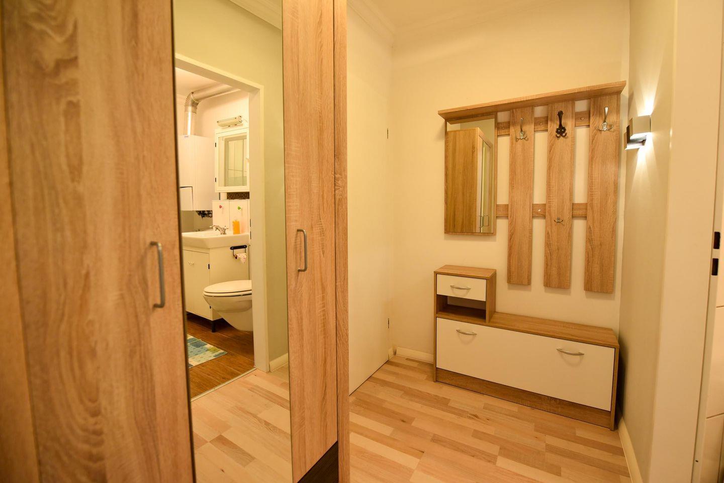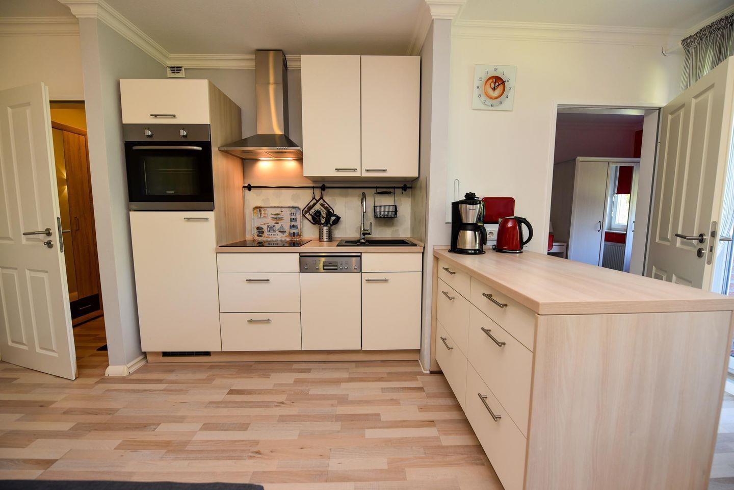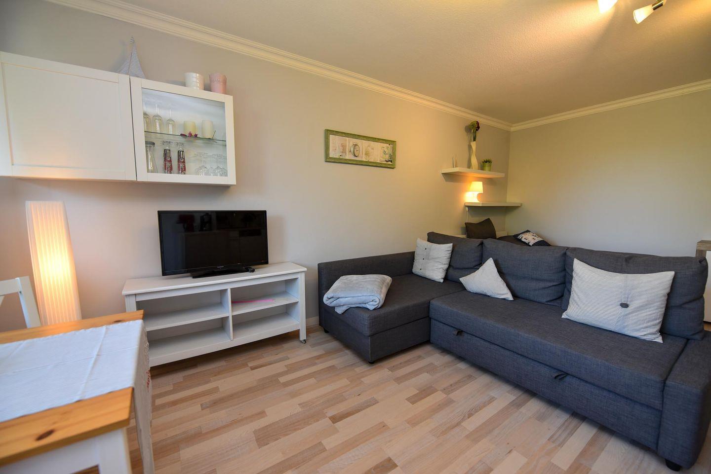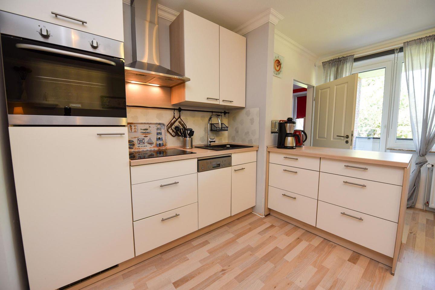 Das modern und gemütlich eingerichtete 2 Zimmer Appartement (1.Etage, ohne WLAN) liegt zentral in Döse. Der sonnige Westbalkon mit Blick in den Garten bietet Entspannung an frischer Luft. Neben einem Wohn-Ess-Schlafzimmer mit offener Küche und Zugang zum Balkon steht Ihnen ein weiteres Zimmer mit Etagenbett, ein hellgefliestes Duschbad/WC und der Flur zur Verfügung. Bis zum Sand- oder Grünstrand sind es nur wenige Minuten mit dem Fahrrad, ebenso zum Kurzentrum / Kurpark. In der Nähe befinden sich Restaurants, Banken, Einkaufsmöglichkeiten und eine Bushaltestelle. Ein eigener PKW-Außenstellplatz (Nr.15) vor dem Haus und ein Fahrradabstellraum in der Hausanlage steht Ihnen zur Verfügung.