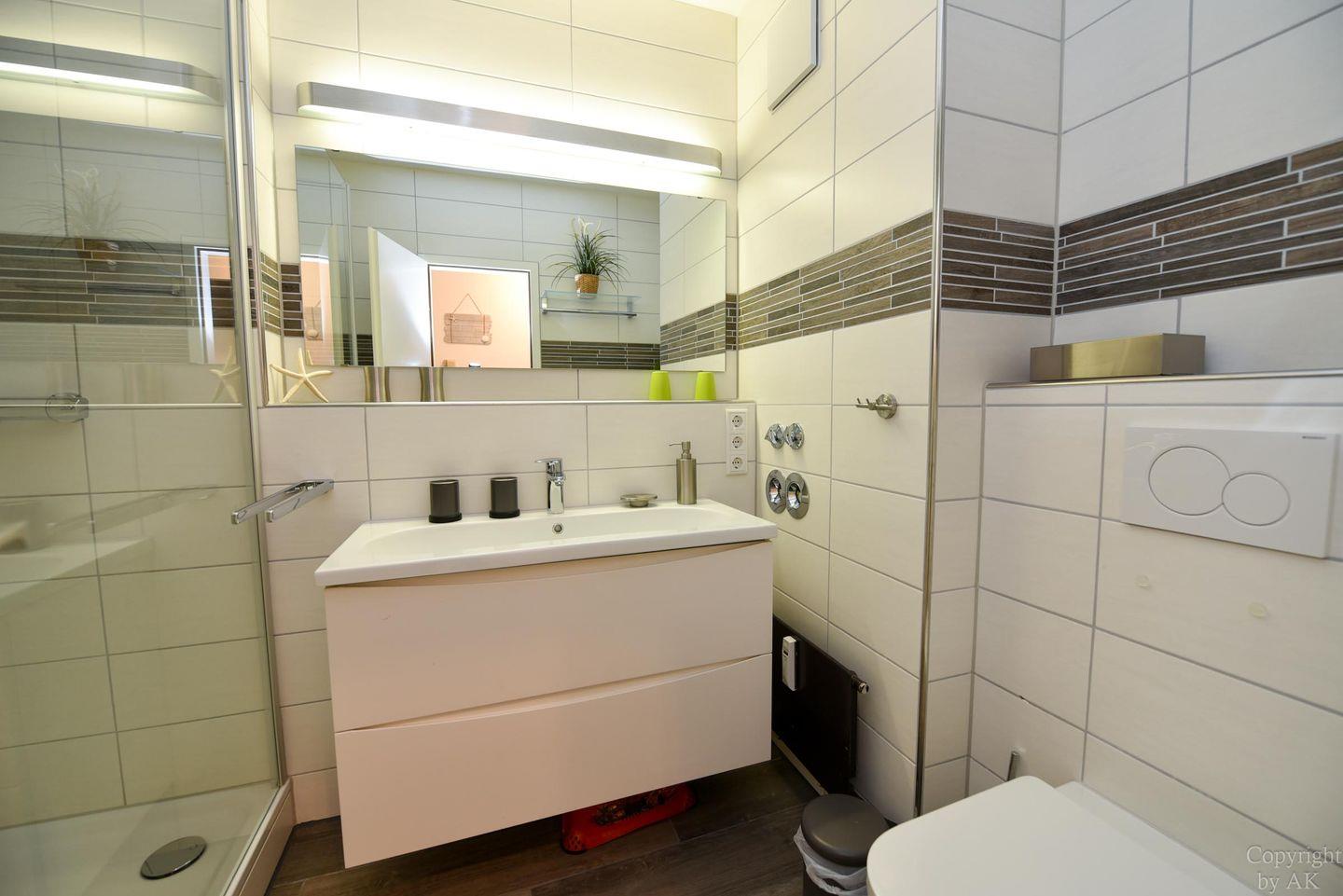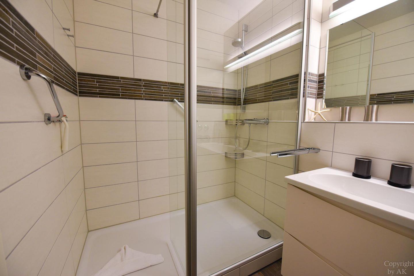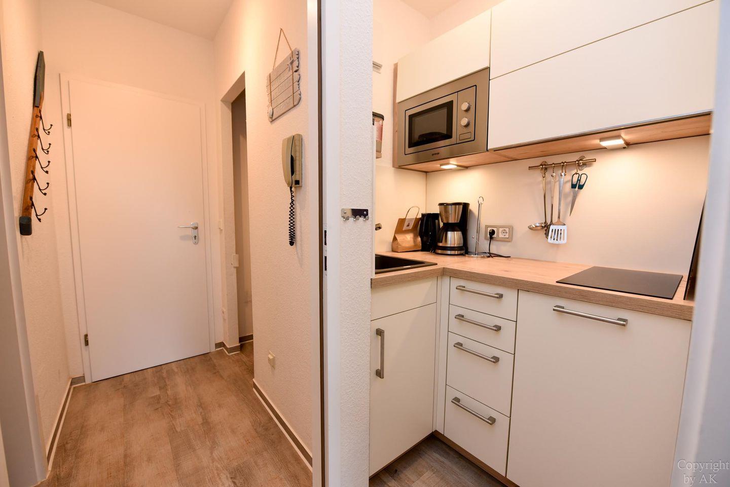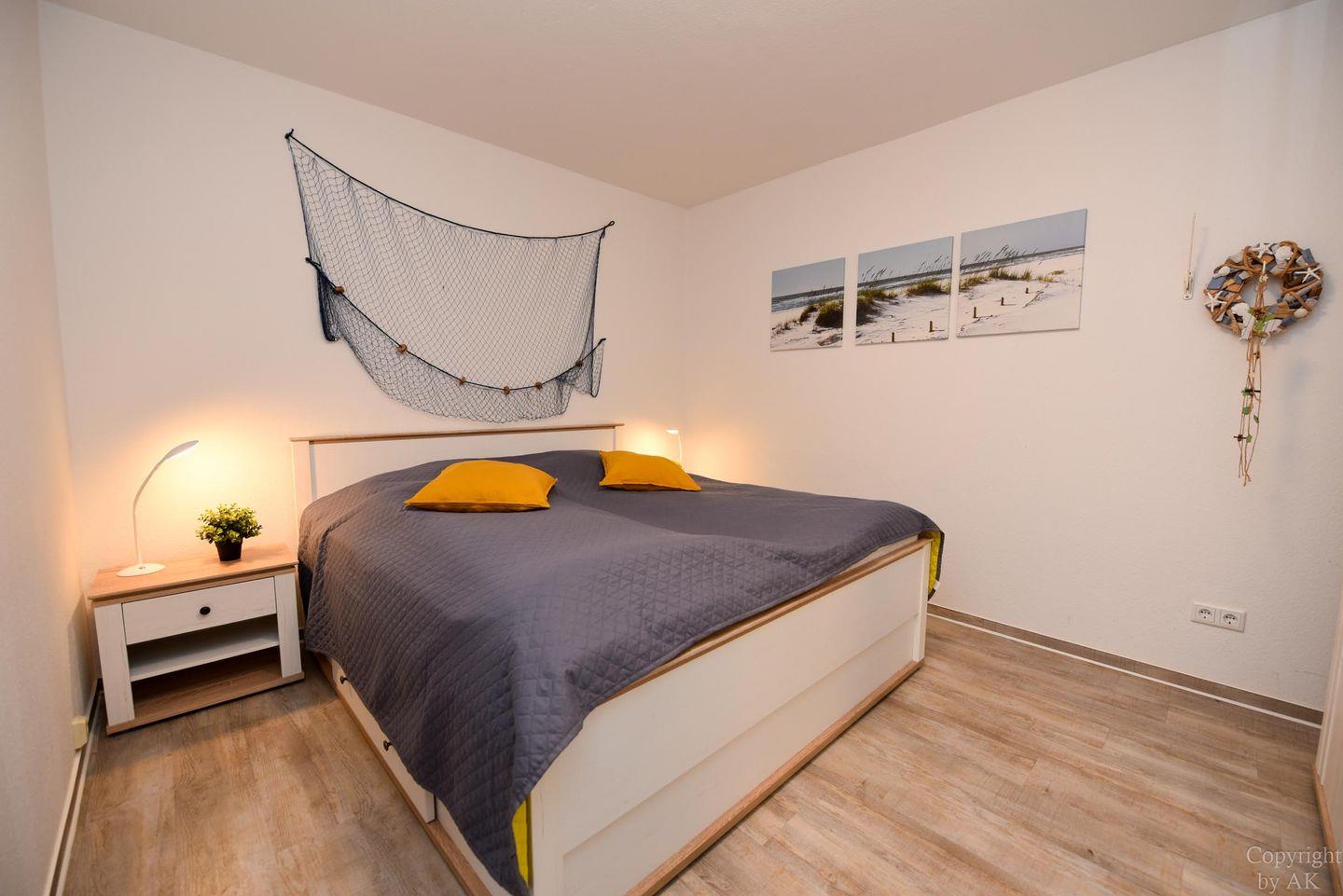Gemütliches und frisch (2019) renoviertes 3-Zimmer Appartement im 1. OG mit Südbalkon. Im Wohn- und Essbereich befindet sich unter anderem ein Schlafsofa und ein bequemer Sessel der zum entspannen und TV schauen oder lesen einlädt. Dazu ist der Raum mit einem Esstisch ausgestattet. Der durch eine Falttür vom Wohnraum getrennte Schlafraum verfügt über ein Ehebett und einen großen Kleiderschrank. Im zweiten Schlafraum befindet sich ein freundliches Etagenbett und ein Kleiderschrank, sowie ein Tisch mit 2 Stühlen. In der separaten und gut ausgestatteten Küchennische ist ein Geschirrspüler und eine Mikrowelle untergebracht. Das moderne Bad mit geräumiger Dusche vervollständigt dieses schöne Appartement im Haus "Jan am Strand". Der dazugehörige und kostenlose Tiefgaragenstellplatz hat eine Einstellhöhe von 149 cm.
