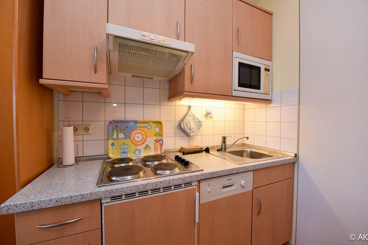 Die integrierte Küchenzeile ist mit allen Annehmlichkeiten wie Mikrowelle und Geschirrspüler ausgestattet, um Ihren Aufenthalt so angenehm wie möglich zu gestalten.