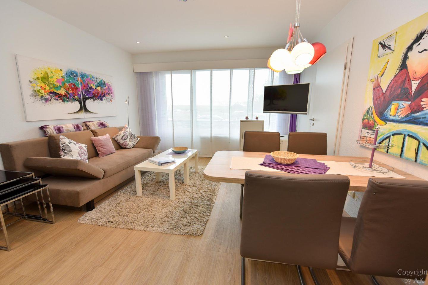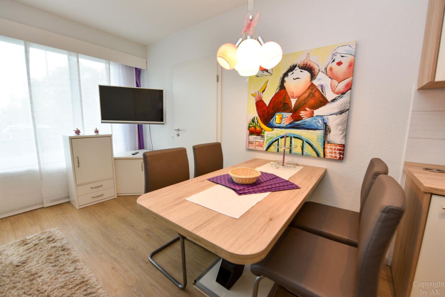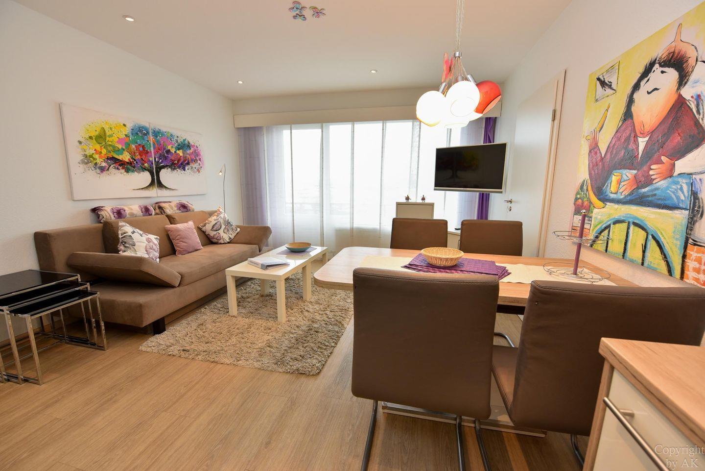 Modern eingerichtetes und barrierefreies 2-Raum-Appartement im Erdgeschoss mit eigenem Strandkorb (01.05.-30.09.) am Döser Sandstrand. Die Türbreite zum Bad ist 78 cm und die zum Wohnbereich 68 cm. Das Appartement verfügt über 2 Balkone, einer Küche mit Geschirrspüler, Mikrowelle, Kühlschrank *** und einem großen Induktionskochfeld. Auch das WC-Duschbad ist barrierefrei und das Waschbecken unterfahrbar und für Rollstuhl geeignet. Im Wohn- /Esszimmer steht ein Lederschlafsofa, ein Couchtisch und ein Kabel-Flach-TV. Der Schlafraum hat ein Ehebett und auch hier gibt es einen Kabel-Flach-TV. Pkw-Tiefgaragenplatz mit einer Einstellhöhe von 149 cm. Buchungen unter 7 Nächte mit Absprache möglich!