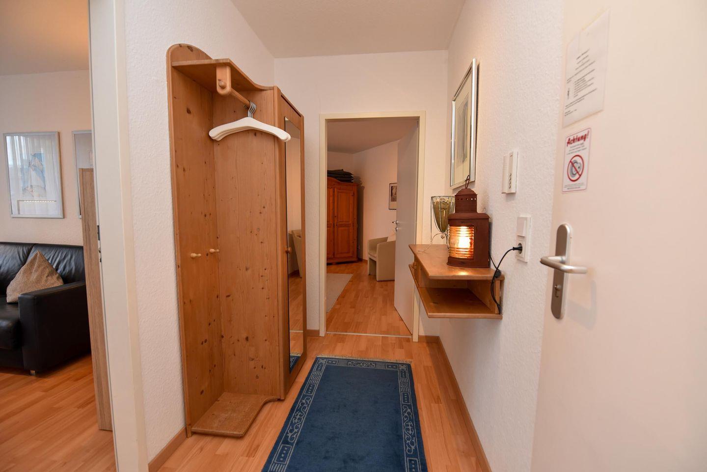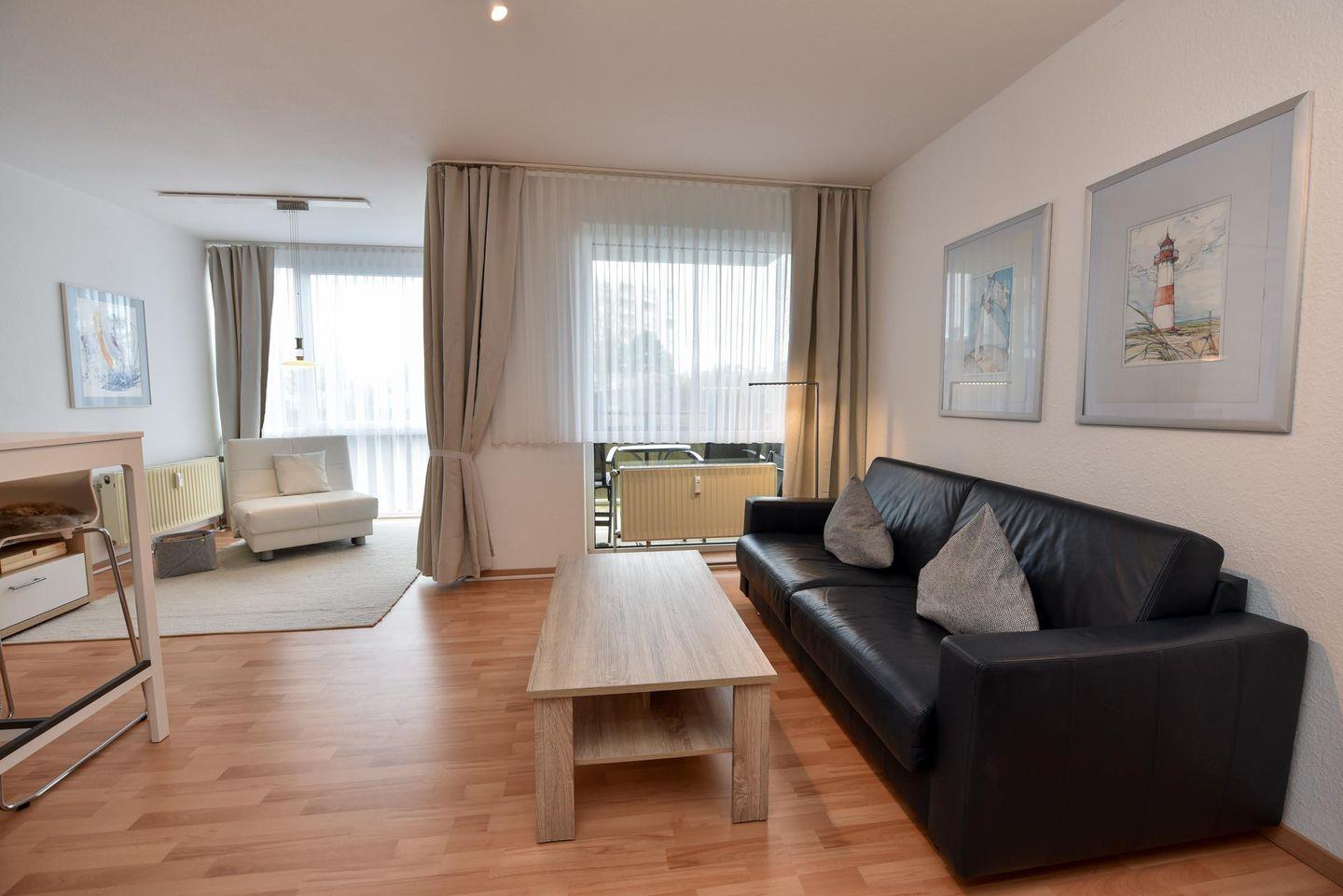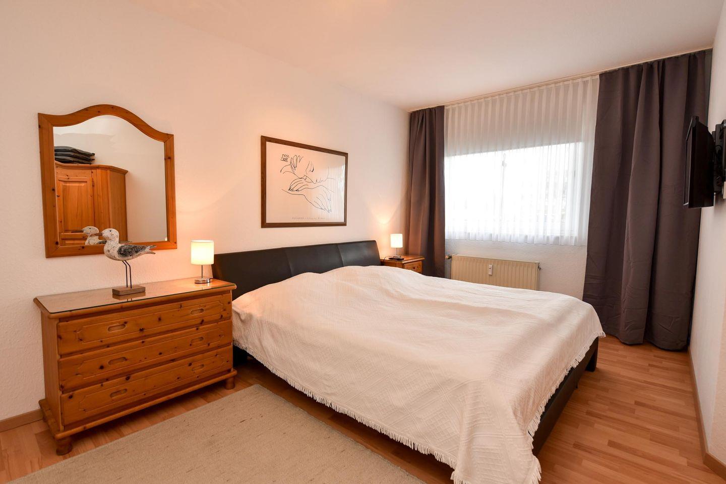 Geräumiges 2-Zimmer Appartement mit Balkon im Hochparterre der Residenz "Passat". Das Appartement verfügt über ein helles Schlafzimmer mit Ehebett und MagentaTV. Im Wohnzimmer befindet sich u.a. ein Schlafsofa und ein Einsitzer. Auch Bücher und Gesellschaftsspiele stehen zur Verfügung. Die voll ausgestattete Küchenzeile mit Tresentisch und 4 Stühlen ist im Wohnraum integriert und verfügt über einen Backofen, eine Mikrowelle und einen Geschirrspüler.