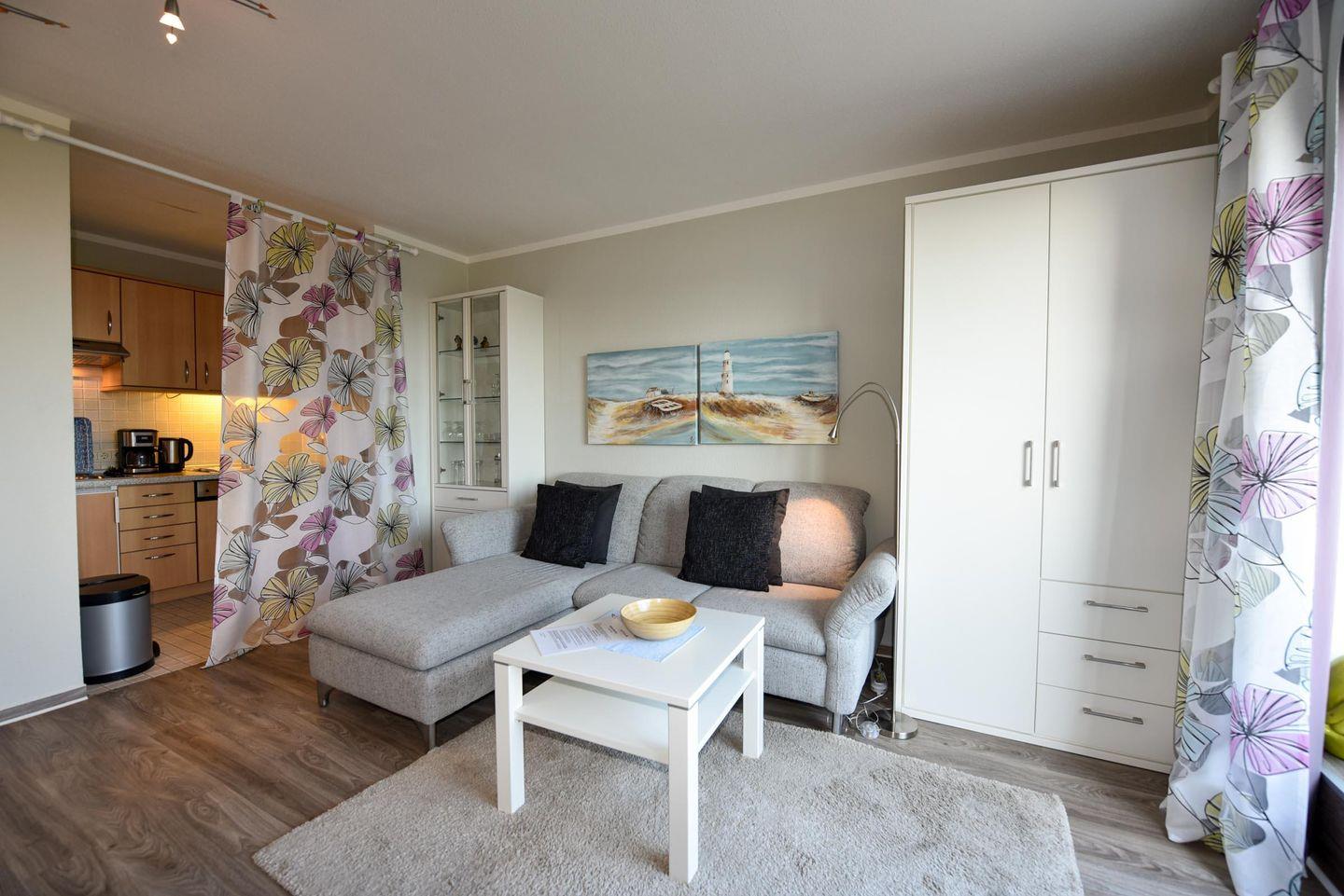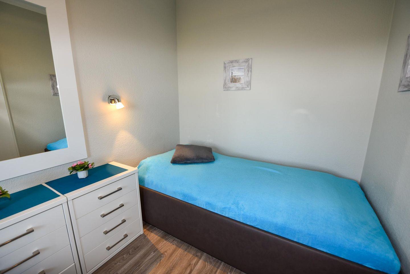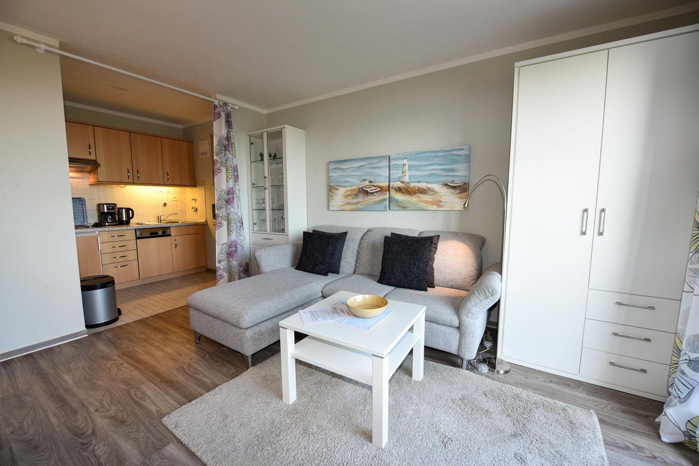 Renoviertes 2-Zimmer Appartement im 4. OG mit eigenem WLAN und Panoramablick auf dem Weltschifffahrtsweg. Wohn- und Essraum mit einer gemütlichen Eckcouch. Der kleine Schlafraum ist mit zwei Einzelbetten ausgestattet. Zum Essraum offene Küchenzeile mit Mikrowelle, Geschirrspülautomat, Esstisch und passenden Stühlen. Beide Räume bieten einen herrlichen Panoramablick. Neues Duschbad/WC mit barrierefreien Zugang zur Dusche. Der Balkon ist über eine hohe Stufe zu erreichen. Kostenloser überdachter PKW-Stellplatz.