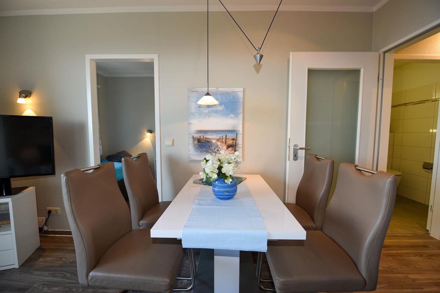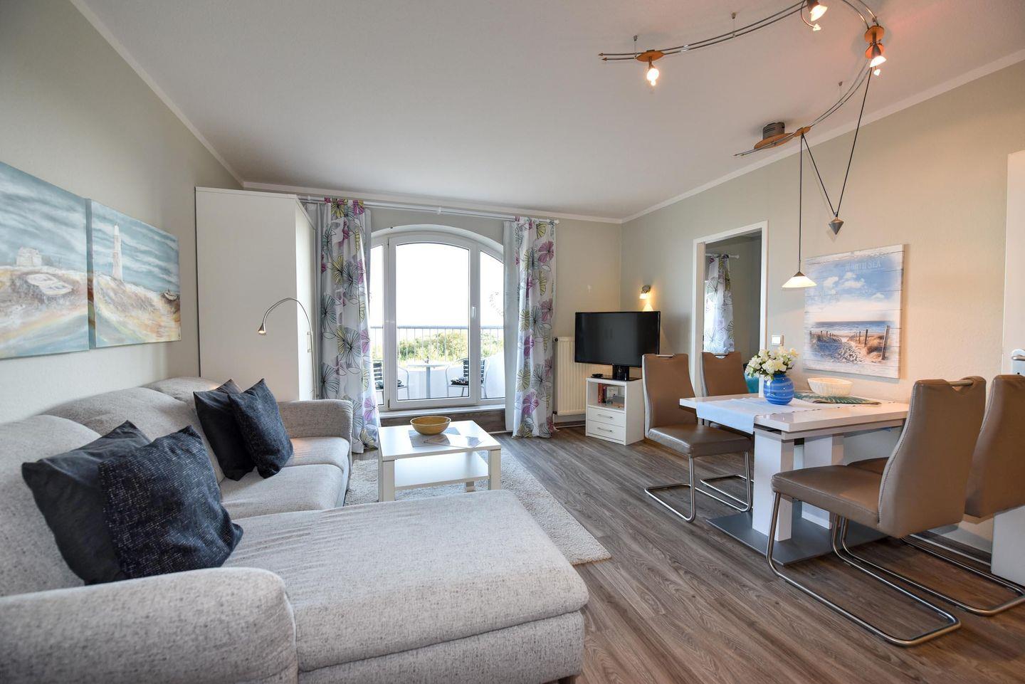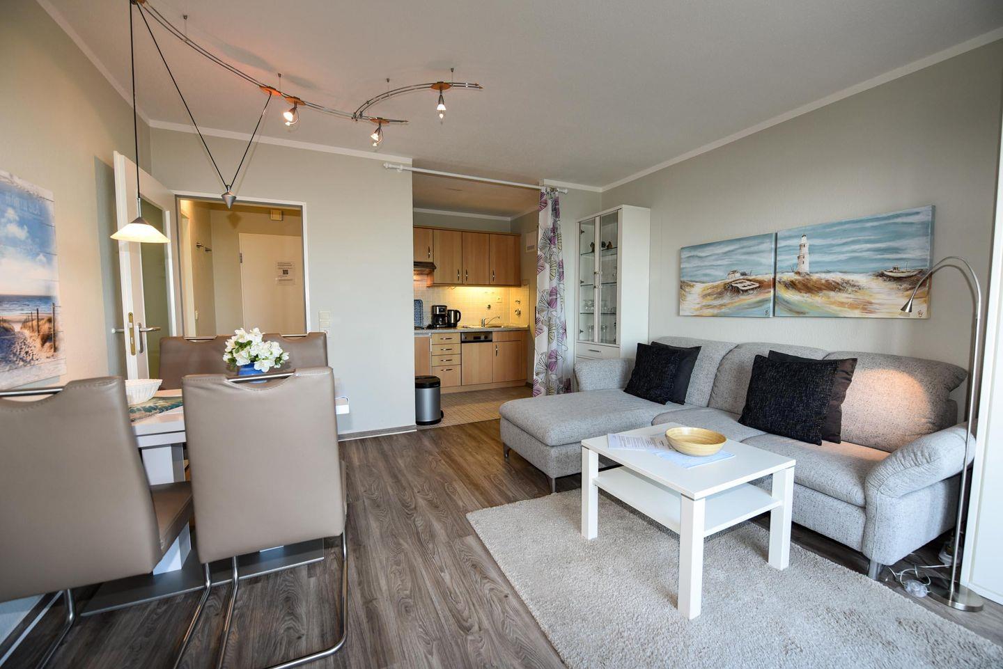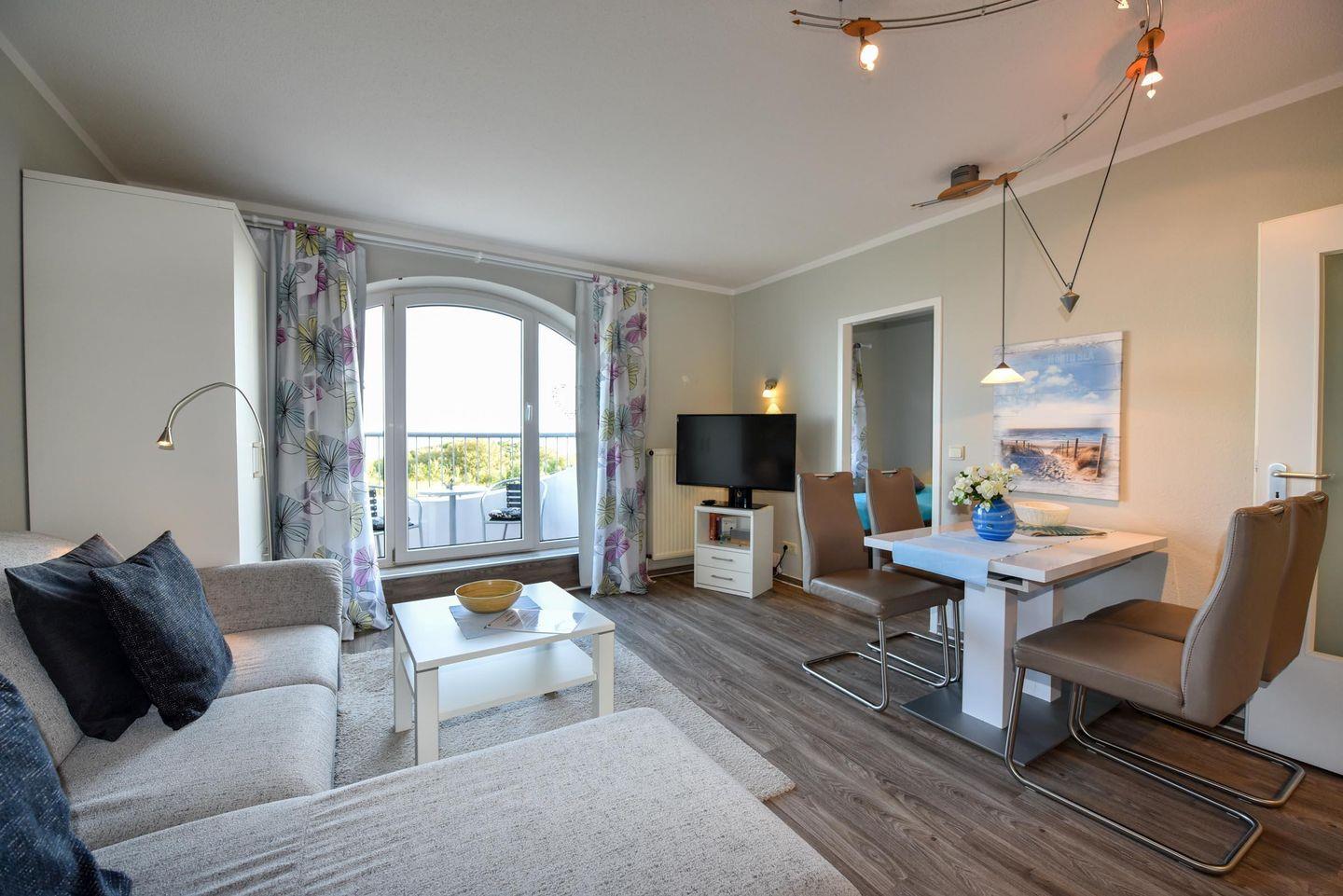 Renoviertes 2-Zimmer Appartement im 4. OG mit eigenem WLAN und Panoramablick auf dem Weltschifffahrtsweg. Wohn- und Essraum mit einer gemütlichen Eckcouch. Der kleine Schlafraum ist mit zwei Einzelbetten ausgestattet. Zum Essraum offene Küchenzeile mit Mikrowelle, Geschirrspülautomat, Esstisch und passenden Stühlen. Beide Räume bieten einen herrlichen Panoramablick. Neues Duschbad/WC mit barrierefreien Zugang zur Dusche. Der Balkon ist über eine hohe Stufe zu erreichen. Kostenloser überdachter PKW-Stellplatz.