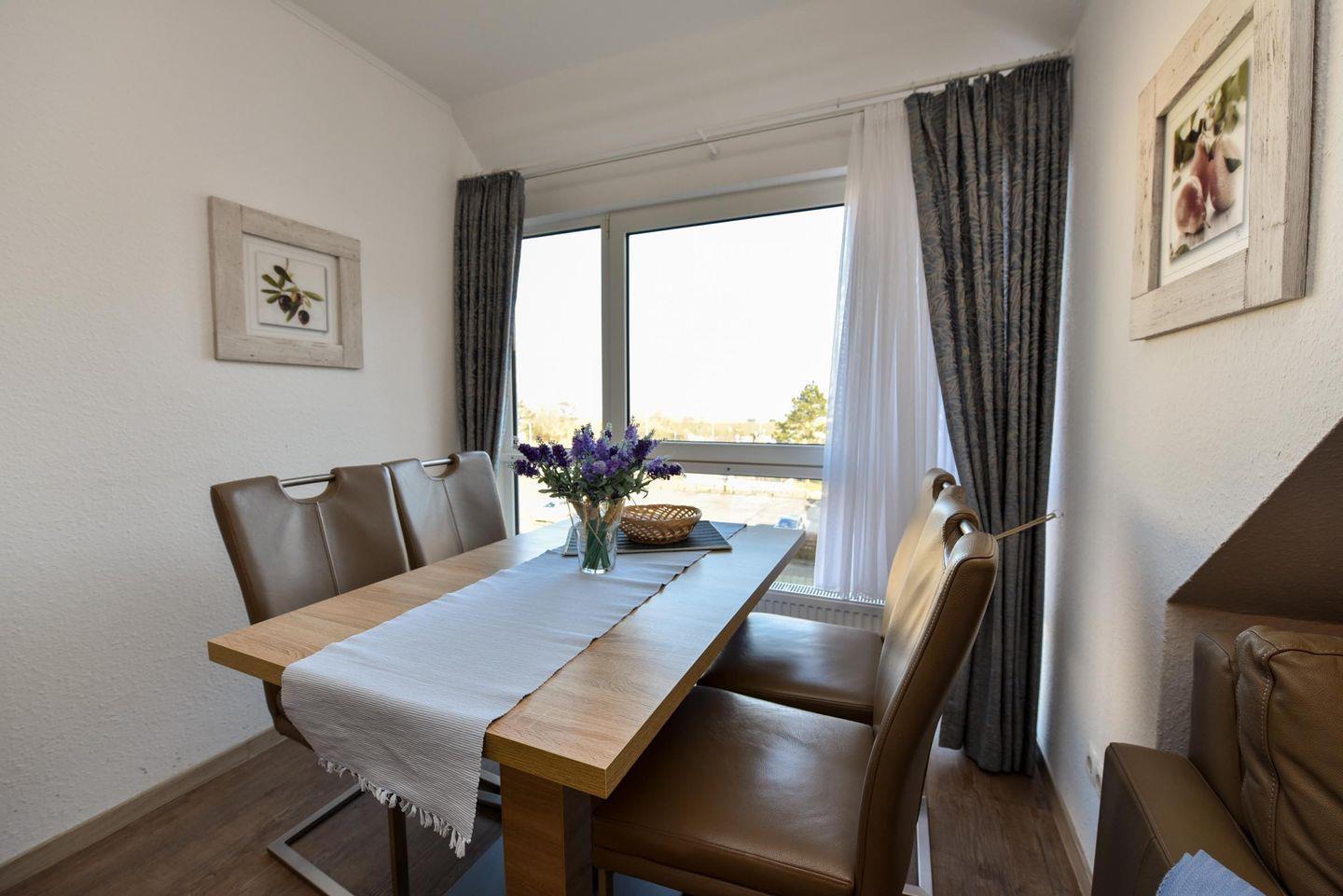 Großzügiges 3-Zimmer-Appartement im 3. Obergeschoss Residenz PASSAT. 1 Wohn-/Ess-/Schlafraum mit Integrierter Küchenzeile, Mikrowelle, Backofen u. Geschirrspüler. Der Wohnbereich bietet eine Sitz/Schlaf-Verwandlungsecke, einen Couchtisch, Esstisch, 6 Stühle und Flach-TV. 1 Schlafzimmer mit je 2 Einzelbetten, ein Kleiderschrank und einem kleinen Süd-Balkon. 1 Schlafraum auf zweiter Ebene im Dachgeschoss mit zwei Einzelbetten und zweiter Flach-TV. Duschbad/WC. SAT-TV, W-LAN. Tiefgaragenplatz. Rasenanlage mit Spielgerät. Das Schwimmbad und Sauna ist kostenfrei