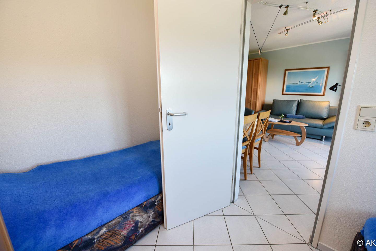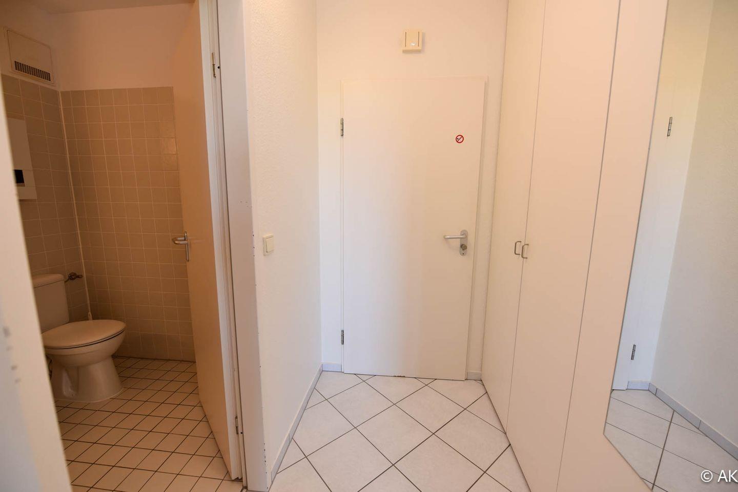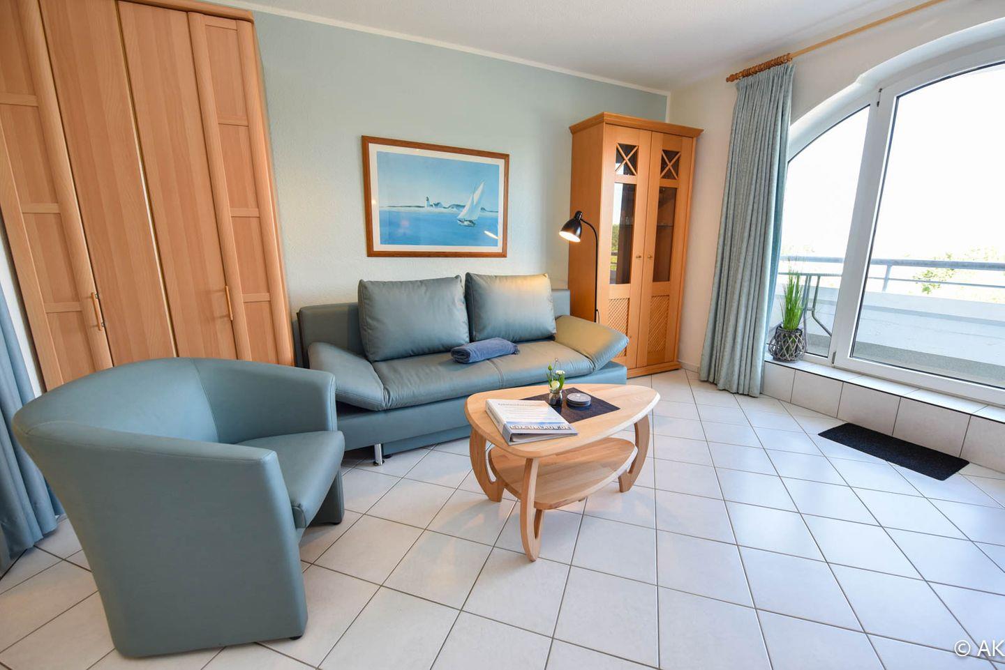 Zusätzliche Annehmlichkeiten dieses Appartements sind ein schmaler Balkon, ideal für einen entspannten Ausblick auf die See, sowie ein kostenloser PKW-Stellplatz.