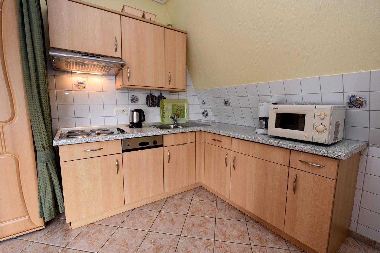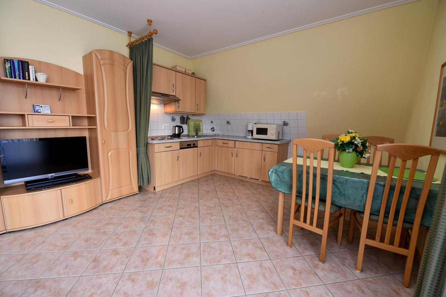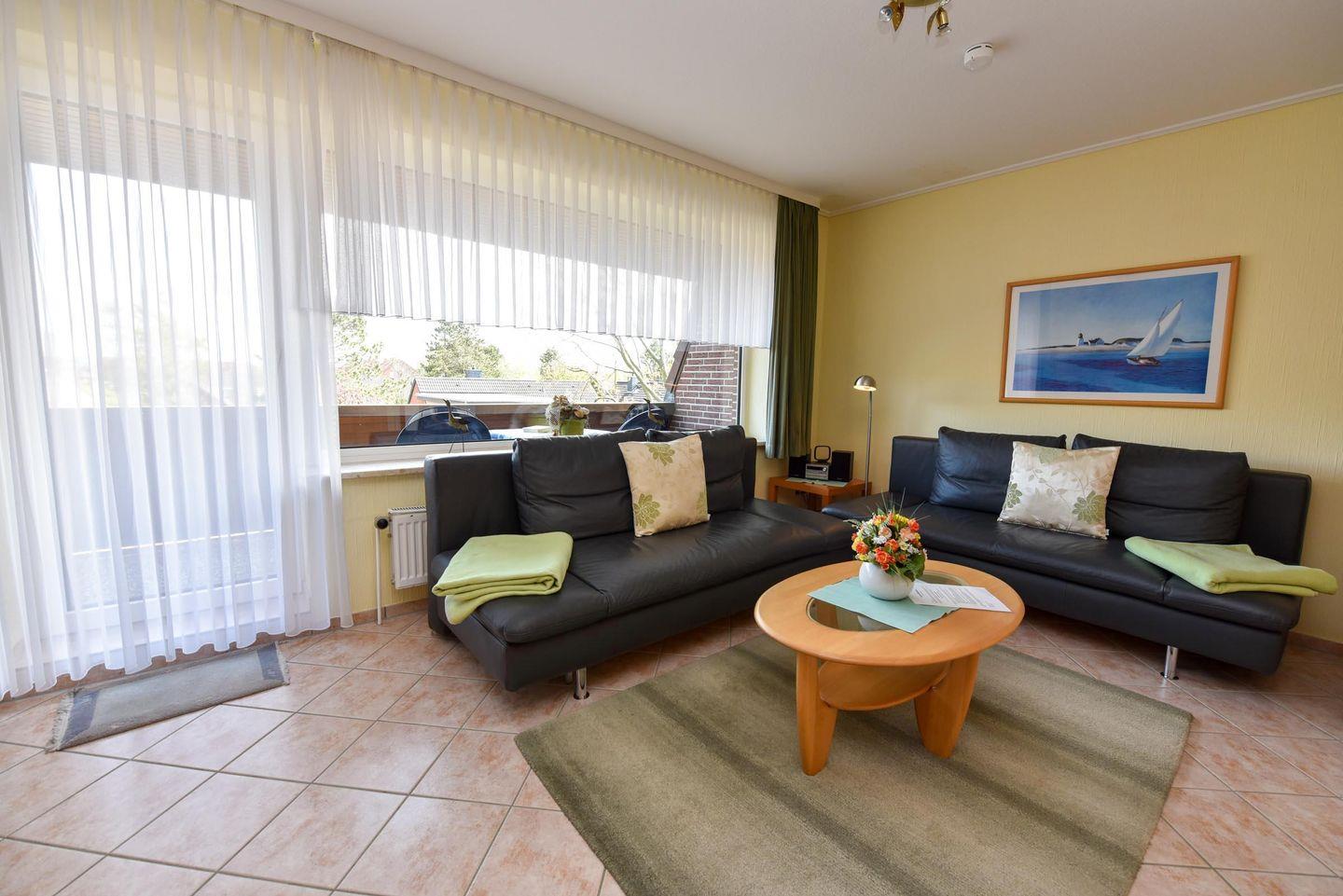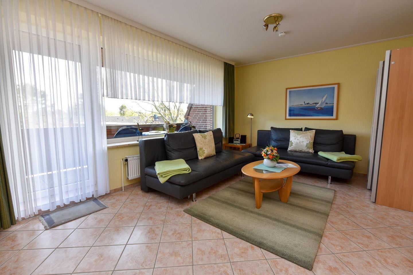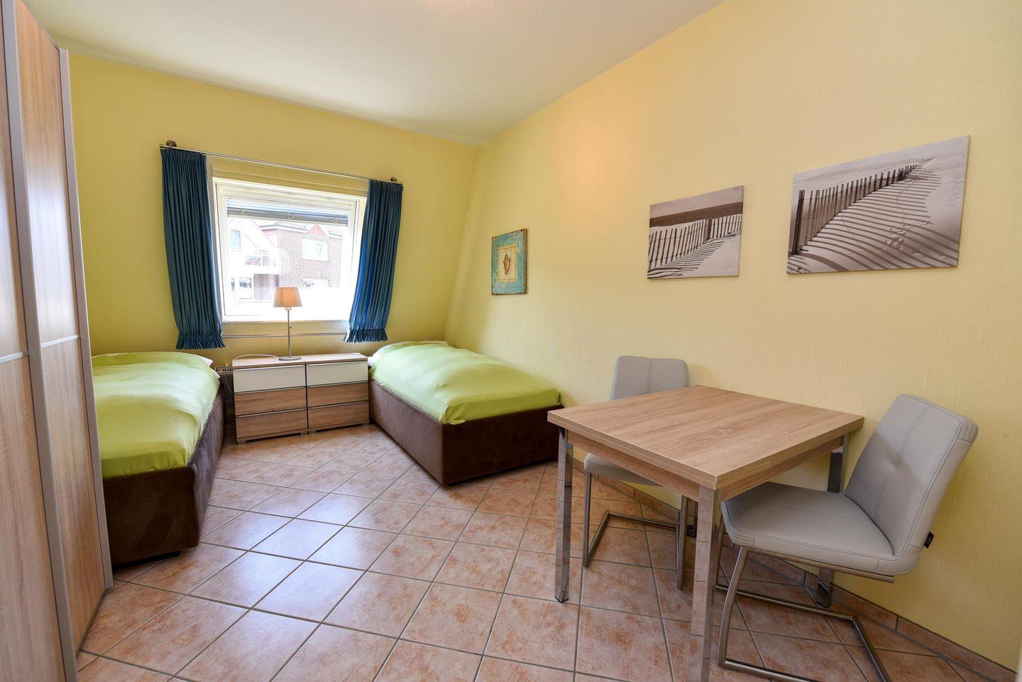 2-Zimmer Ferienappartement im 2. OG im Haus LUV mit WLAN. Das großzügige und geflieste Appartement ist durchaus für Allergiker geeignet. Im Wohn-/Ess-/Schlafraumbefinden sich zwei Schlafsofas, ein Esstisch und 4 Stühle. Integrierte hochwertige Küche mit Mikrowelle und Geschirrspülautomat. Das Schlafzimmer selbst bietet zwei Einzelbetten auch als Ehebett stellbar und noch Platz für ein Reise-Kinderbett. Modernes Duschbad -WC, Kabel-TV. Möblierter Balkon, keine Tiere erlaubt. Spielrasen, Spielgerät und Sandkiste auf dem Grundstück, PKW-Stellplatz vor der Haustür. Schwimmbadnutzung kostenfrei!