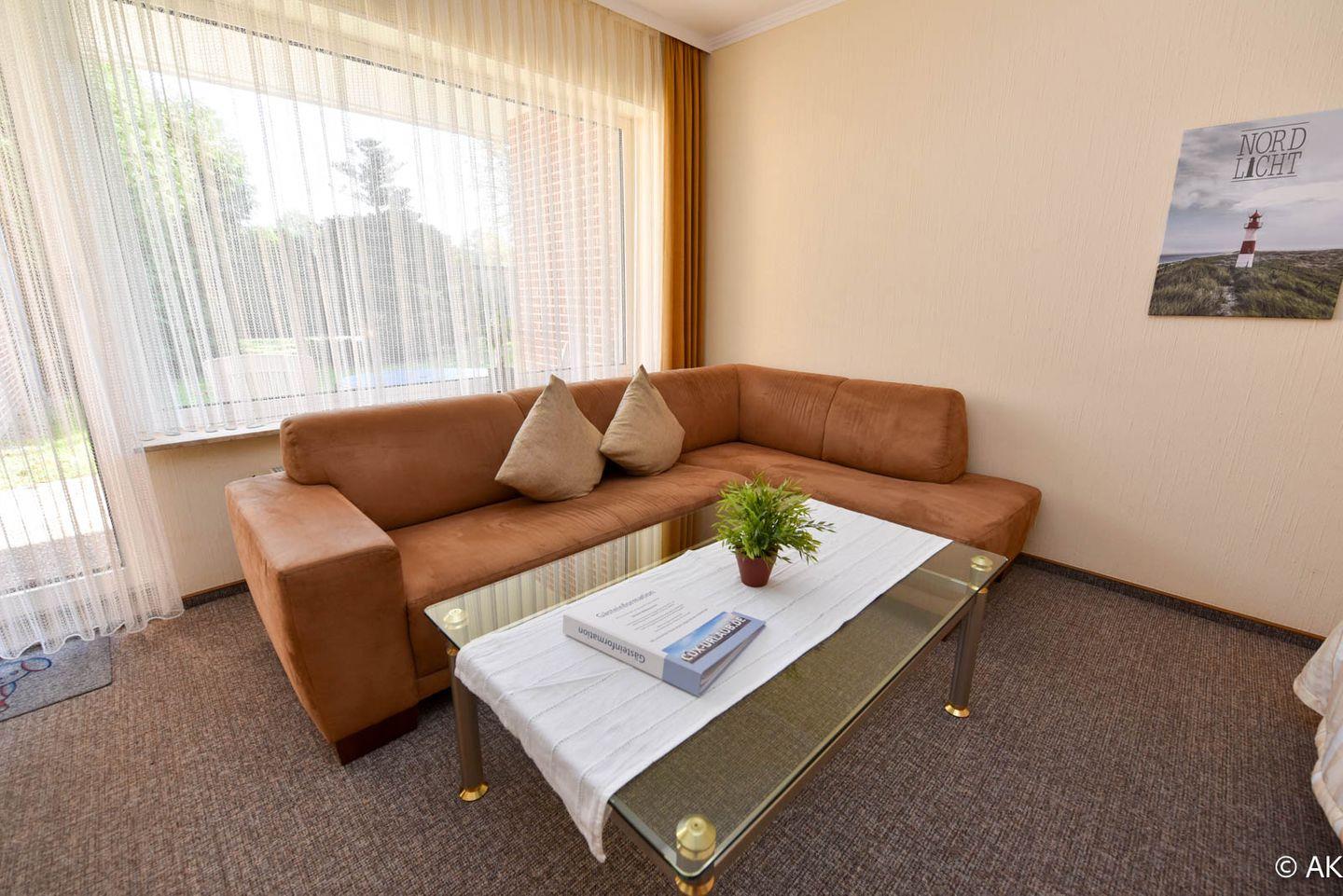1-Zimmer-Ferienwohnung im Erdgeschoss des Hauses LEE mit kostenfreiem WLAN. Die Wohnung besteht aus 1 Wohn-Schlafraum mit Ehebett, Sessel und Couch. Ein Küchenraum mit Einbauküche, Geschirrspüler und Backofen. Hier finden Sie auch einen Esstisch, Stühle und eine Mikrowelle. Wannenduschbad/WC, Kabel-TV, Terrasse, Spielrasen, Spielgerät und Sandkiste auf dem Grundstück, PKW-Stellplatz. Schwimmbadnutzung kostenfrei!