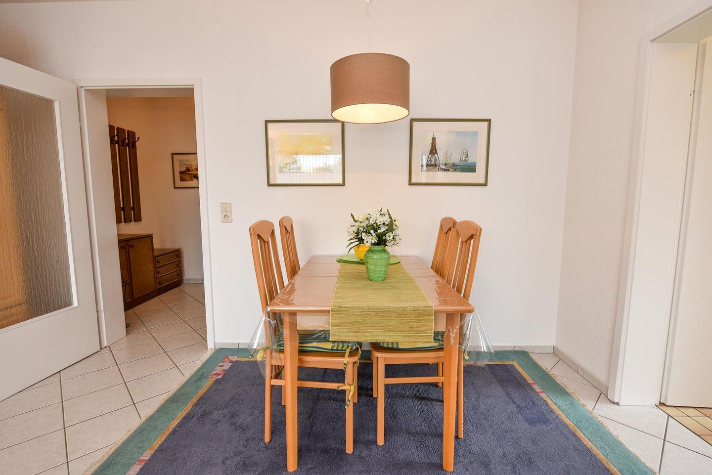 2-Zimmer Ferienwohnung im 1. OG im Haus LEE mit WLAN. Sehr schöne und allergikerfreundlich gefließte Wohnung. Im Wohn- u. Essraum befindet sich u.a. auch ein Schrankbett und eine gemütliche Couchgarnitur, sowie ein Esstisch mit vier Stühlen. Es gibt Kabel-TV. Der Schlafraum ist mit einem Einzelbett und einem Etagenbett ausgestattet und bietet zusätzlich Platz für ein Kinder-Reisebett. In der der gut ausgestatteten Küche finden Sie eine Mikrowelle, einen Backofen und einen Geschirrspüler. Duschbad/WC. Möblierter Südost-Balkon. Garagenplatz. Schwimmbadnutzung kostenfrei!
