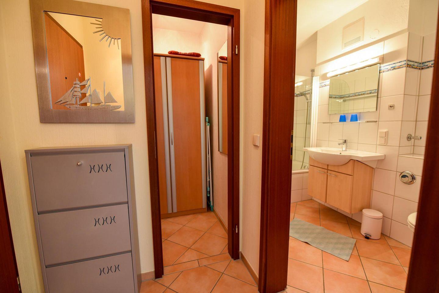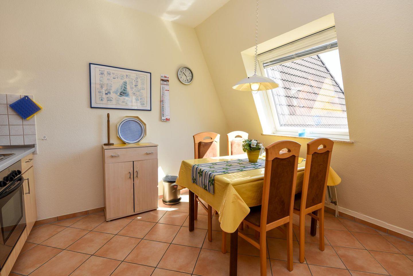 1-Zimmer-Ferienwohnung im 1. OG des Hauses LEE mit WLAN. Schnuckelige, sehr schöne, komfortable Ferienwohnung für Allergiker geeignet (gefliester Boden): 1 Wohn-Schlafraum mit 2 Einzelbetten/wie Ehebett. 1 Küchenraum mit Einbauküche mit Backofen, Esstich, Stühle, Mikrowelle und Geschirrspüler. Im Wohn-/Schlafraum Couchgarnitur und Ehebett. WC/Wannenbad, Kabel-TV, Balkon. Spielrasen, Spielgerät und Sandkiste auf dem Grundstück, PKW-Stellplatz. Schwimmbadnutzung kostenfrei!