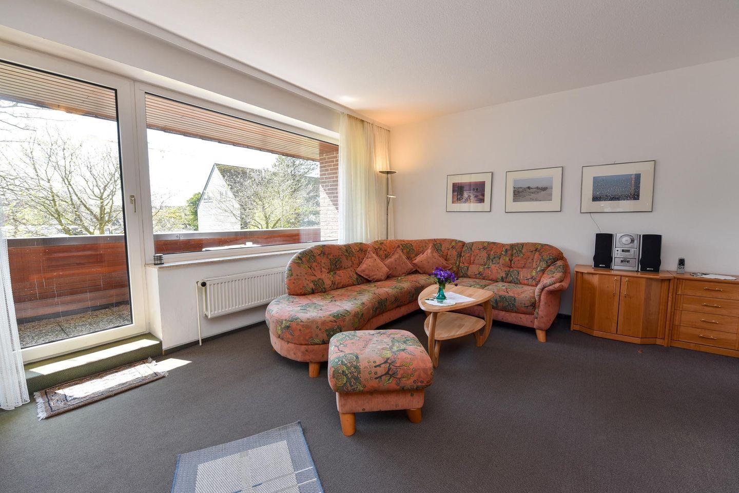 1-Zimmer-Ferienwohnung im 1. OG des Hauses LEE mit WLAN. Diese sehr schöne Wohnung besteht aus 1 Wohn-Schlafraum mit Ehebett und Couchgarnitur. Im separaten Küchenraum befindet sich ein Esstisch, 4 Stühle und eine Einbauküche mit Mikrowelle. Ein Zustellbett ist durchaus möglich. Modernes neues Duschbad mit WC., Kabel-TV., Großer Süd-Balkon. Spielrasen, Spielgerät und Sandkiste auf dem Grundstück, PKW-Stellplatz. Schwimmbadnutzung kostenlos.