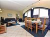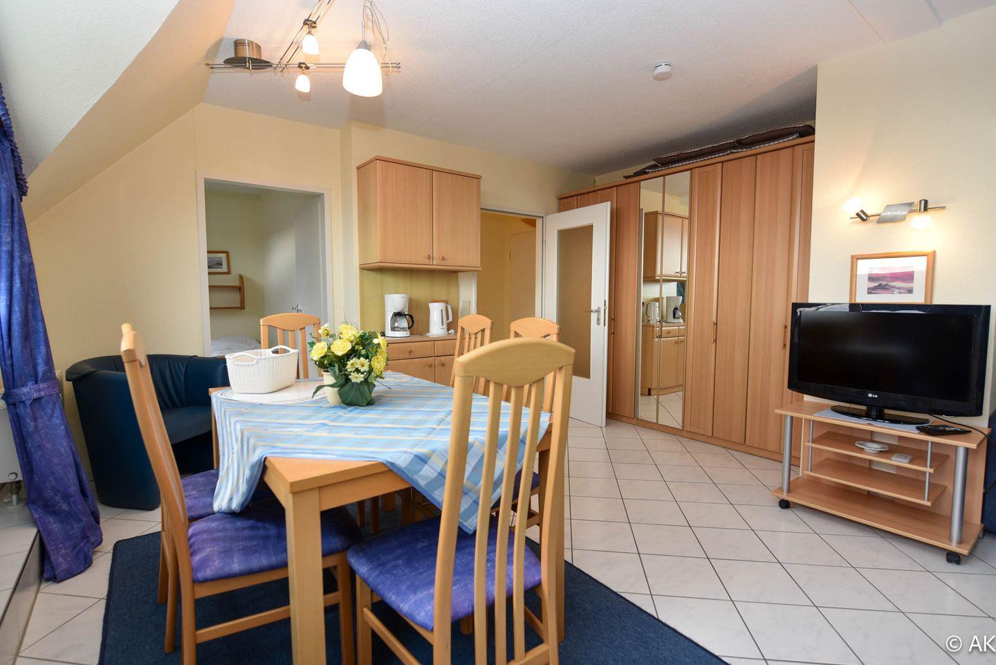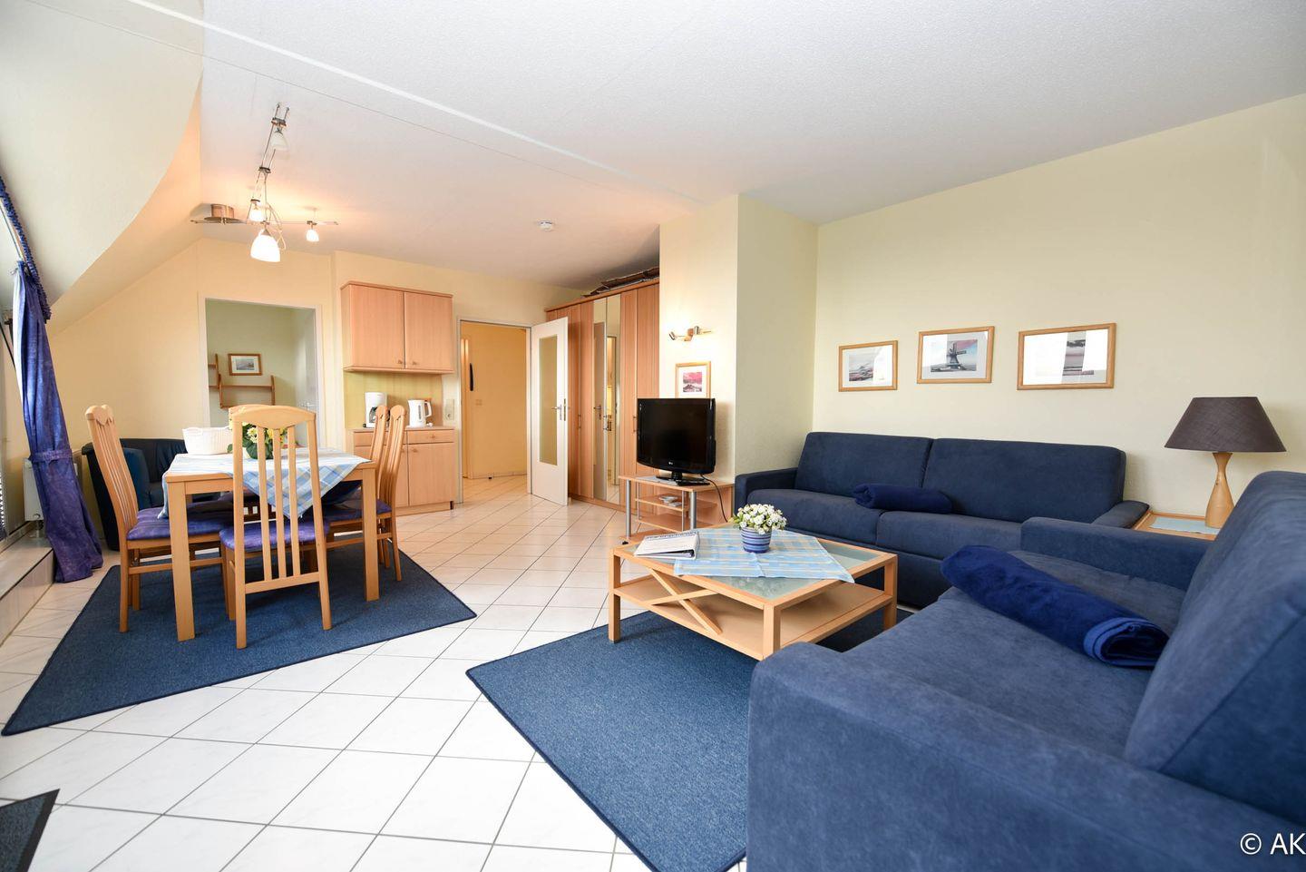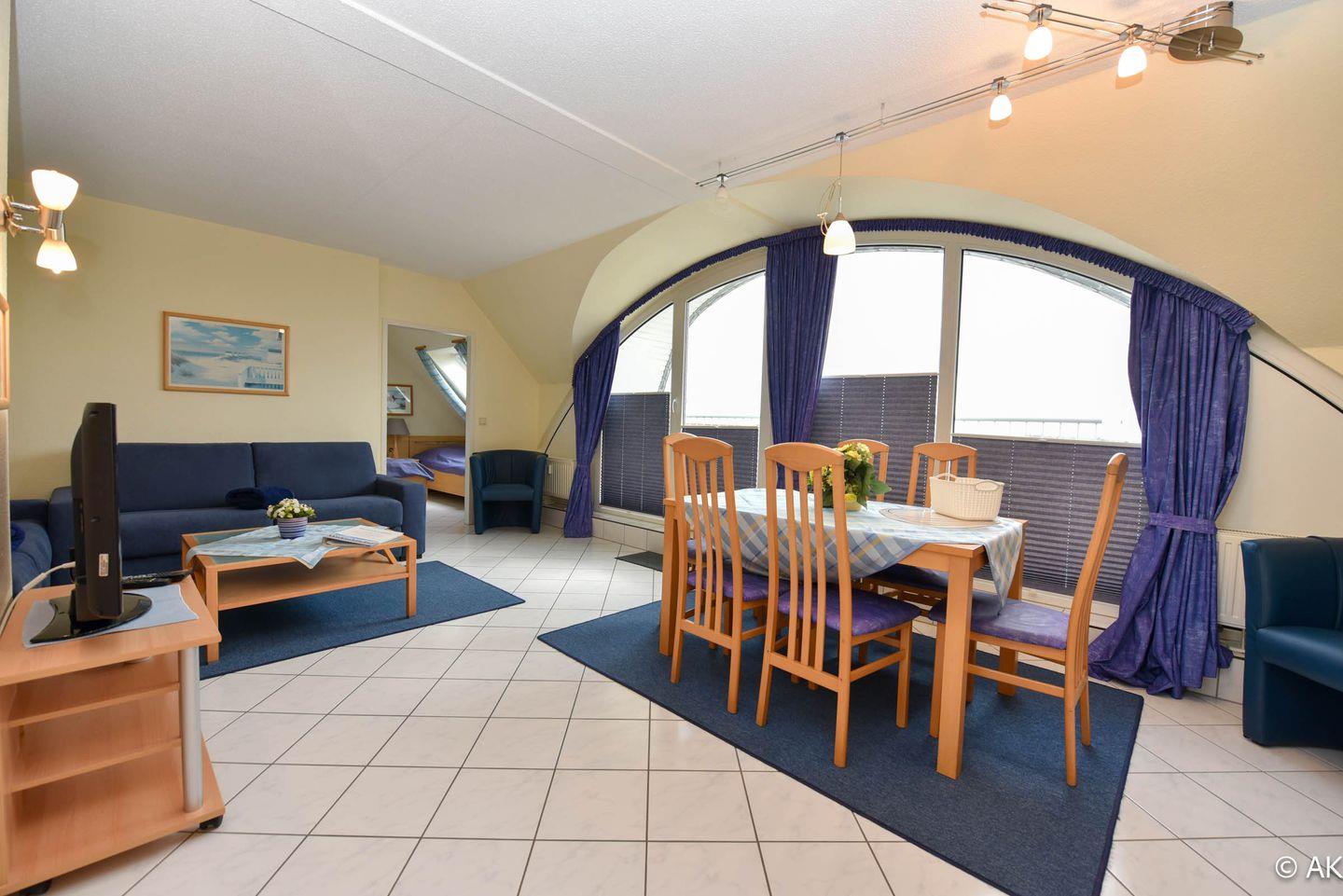 "KAPITÄNS-SUITE" 3-Zimmer Appartement im 5. OG im DEICHGRAF. Ein traumhaftes, großzügiges und allergikerfreundliches Appartement für die ganze Familie. Der Wohn- /Essraum ist mit zwei Schlafsofas, Sessel, einem Couchtisch und einem Esstisch mit 6 Stühlen ausgestattet. Die zwei Schlafzimmer haben jeweils 2 Einzelbetten. Die Suite hat eine moderne Pantry mit einem Vierplattenherd, einer Back-Mikrowelle und einem Geschirrspülautomat. Alle Räume liegen auf der Sonnen/Südseite. Das Appartement ist für bis zu 6 Personen geeignet. Duschbad mit WC. Zum Angebot gehört auch ein kostenfreier PKW-Stellplatz sowie WLAN. Natürlich bieten wir auch hier kostenlos Kinderbetten und Hochstühle für Ihre Kleinen an.