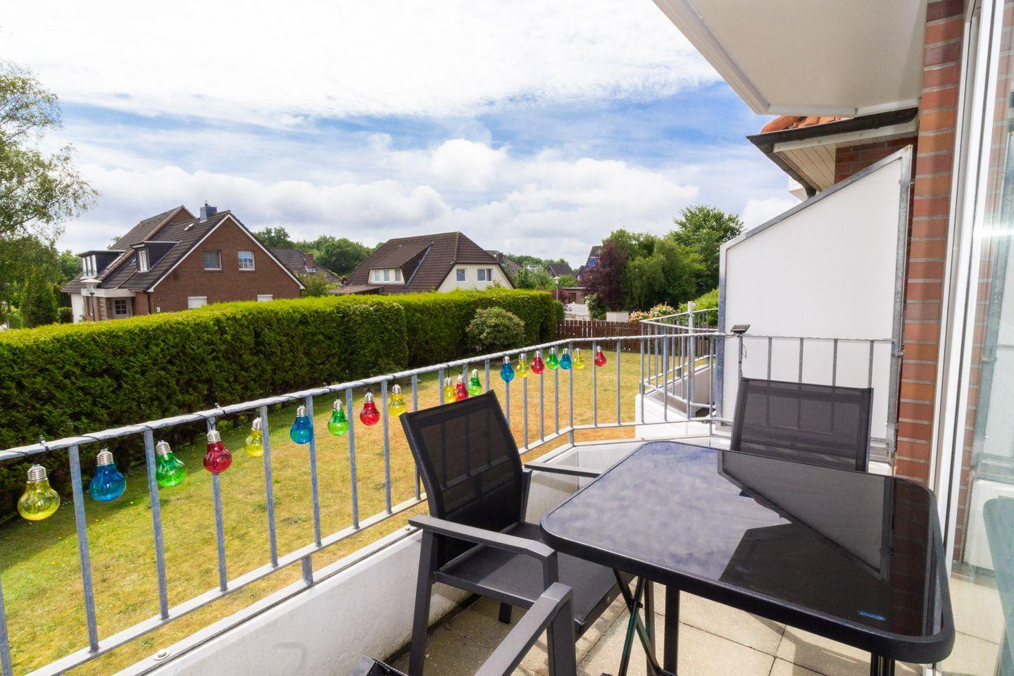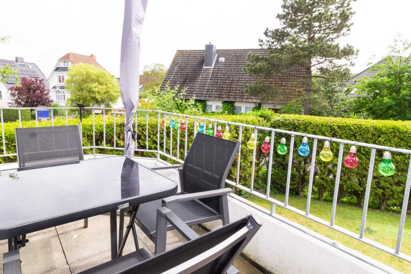 Auf den gemütlichen Balkonmöbeln können sich unsere Urlaubsgäste jederzeit an der frischen Luft entspannen. Es gibt einen kleinen Balkon im Schlafzimmer zur Nordseite und einen im größeren Wohnbereich zur Südseite. Mit einem Frühstück auf den Balkon startet man perfekt in den Urlaubstag.