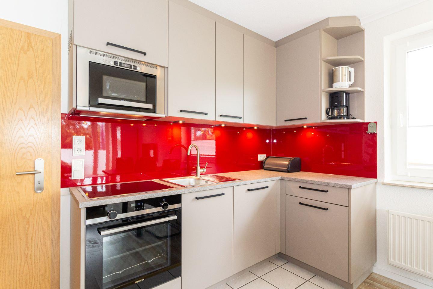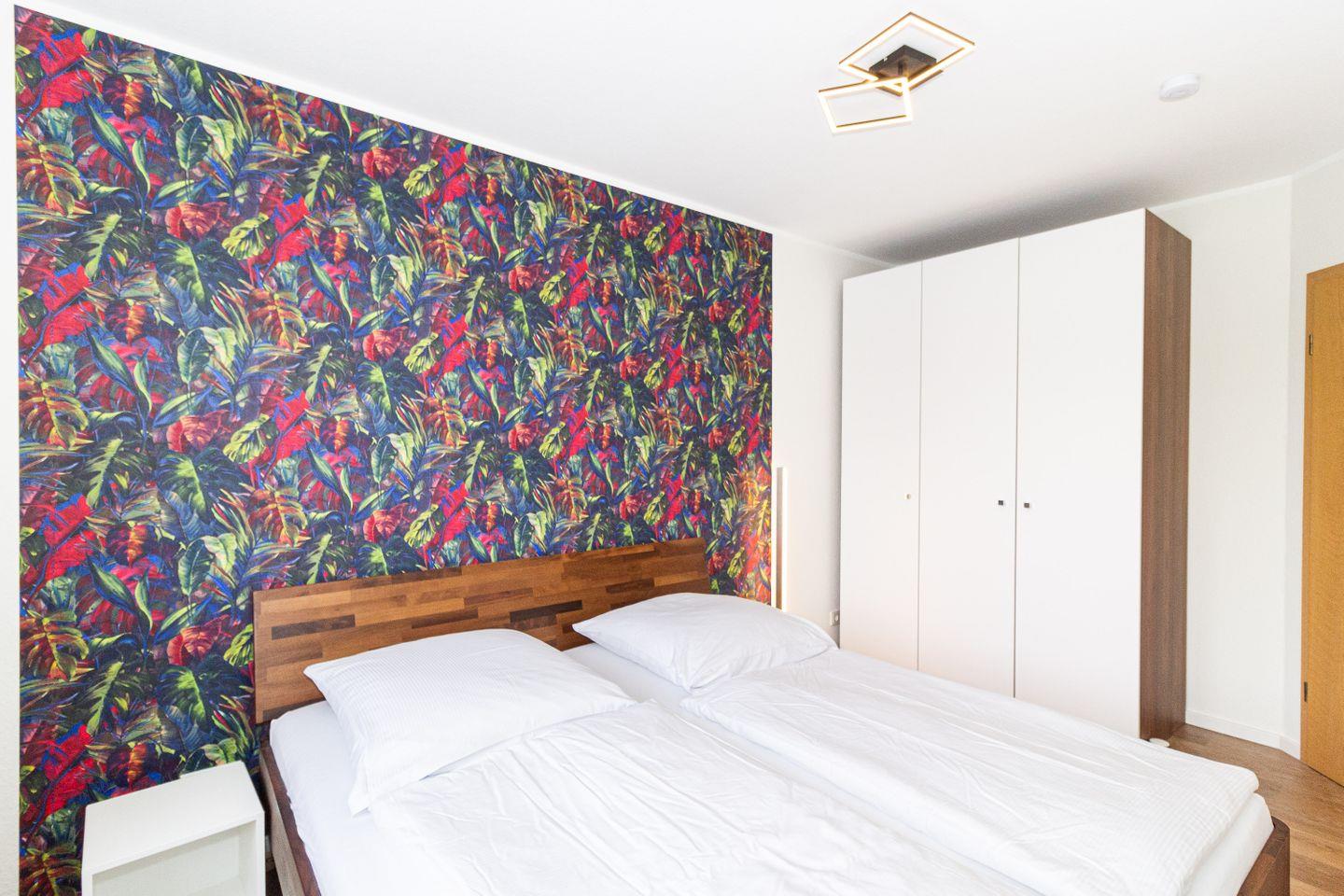 Haus "Oasis", Typ C, Appartement-Nr. 04, bis 4 Pers., 1. Etage (Kein Aufzug), ca. 52. qm, Schlafzimmer mit Doppelbett, Schlafzimmer mit Etagenbett, Küchenzeile mit Backofen, Mikrowelle und Geschirrspüler, Dusche/WC, Fön, 2x Balkon (Nord/Süd), Kabel-TV, kostenl. WLAN-Zugang im App., Haustiere sind nicht gestattet, Tiefgarage (2m Einfahrtshöhe), Fahrradraum (über Keller Zugang Wohnungen 10-19), Nichtraucherwohnung, Strandkorb im Sommer 2026.