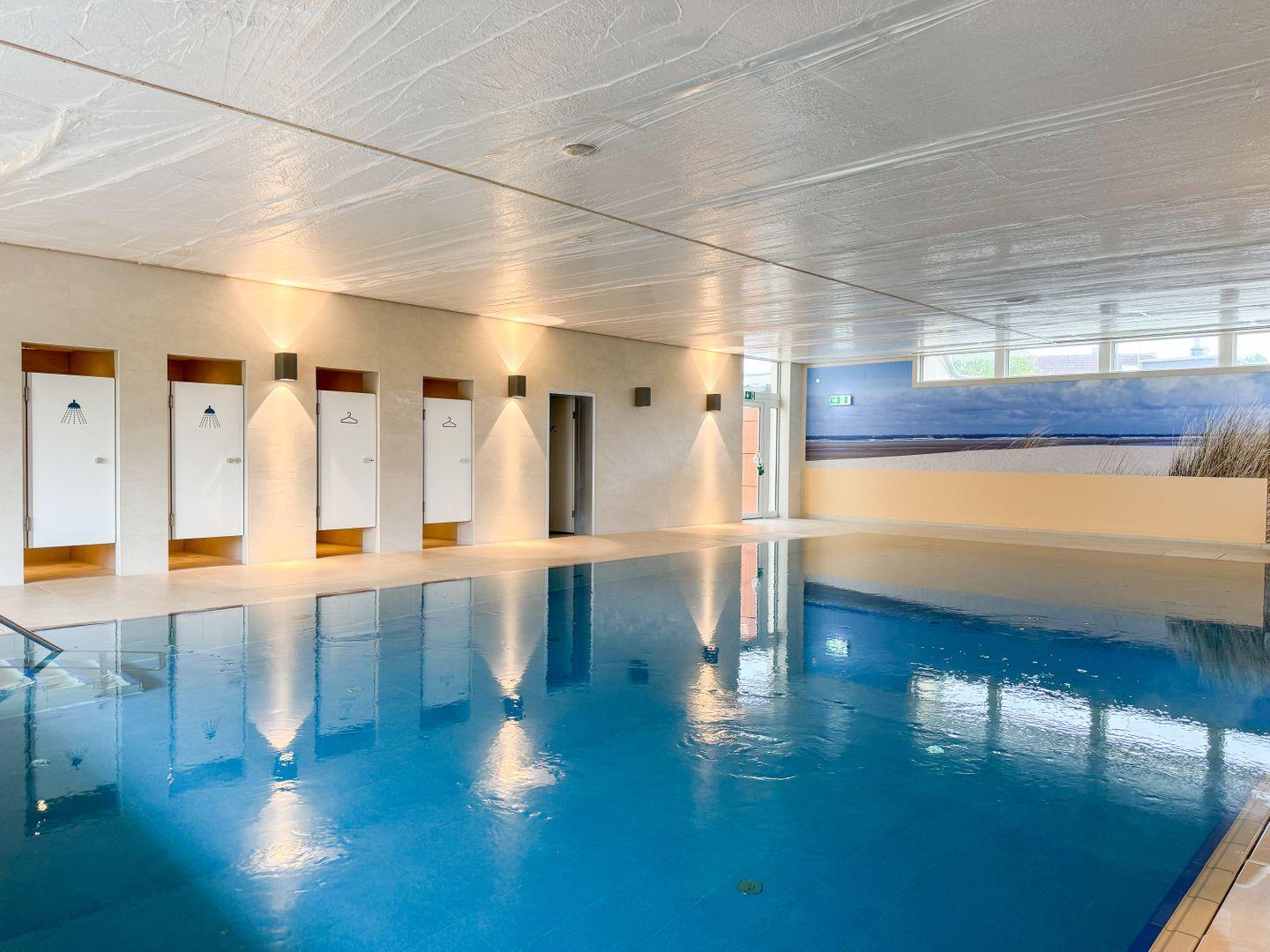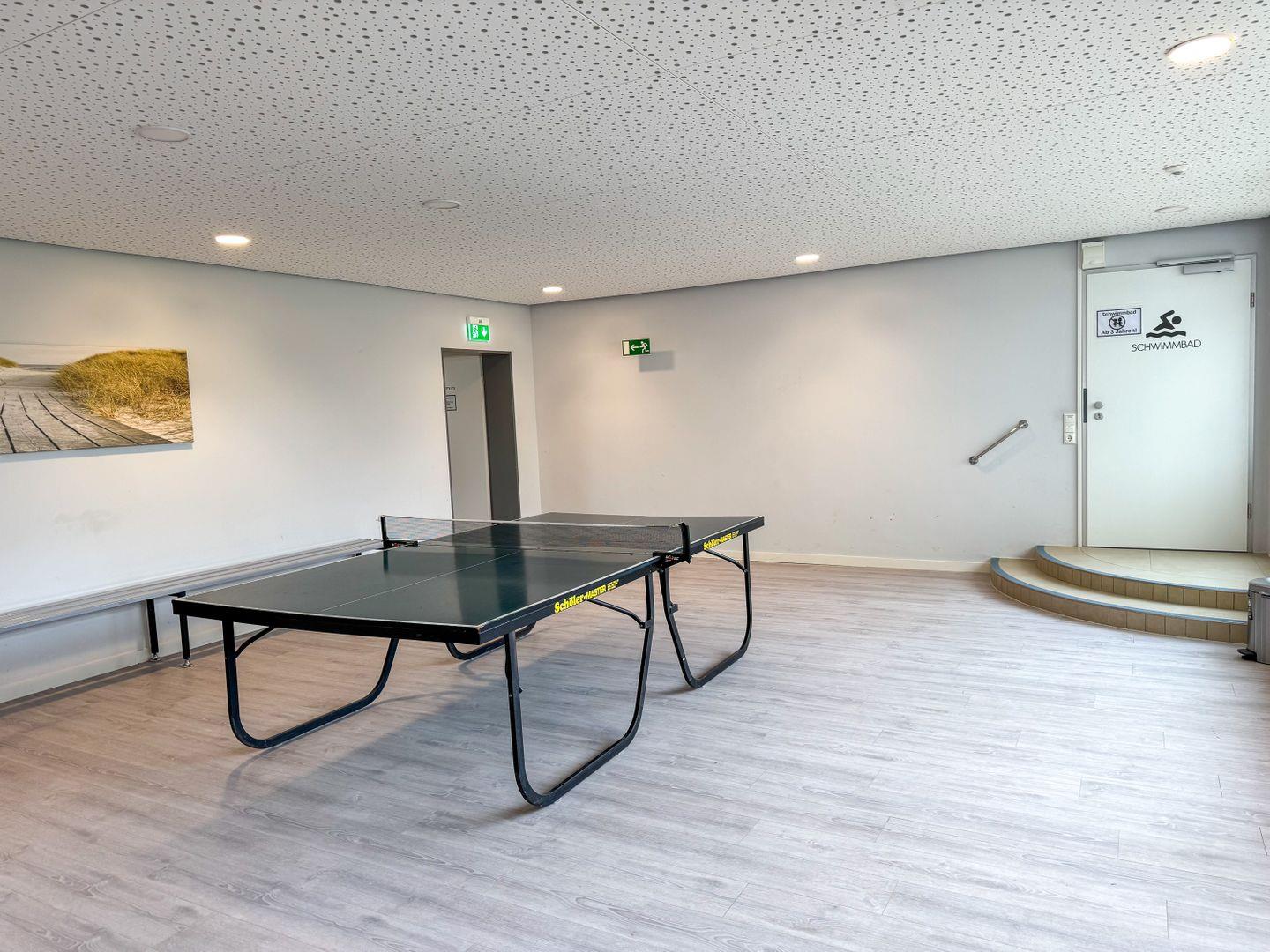 Wellnessbereich im Haus Atlantic: Zur Entspannung nach einem aufregenden Tag am Strand stehen Ihnen gemeinschaftliche Einrichtungen wie ein Indoor-Pool mit Sauna, ein kleiner Fitnessraum und eine Tischtennisplatte zur Verfügung. Egal, ob Sie an einem kalten Abend in der Sauna relaxen oder einen aktiven Tag im Schwimmbad verbringen möchten, hier ist für jeden etwas dabei.