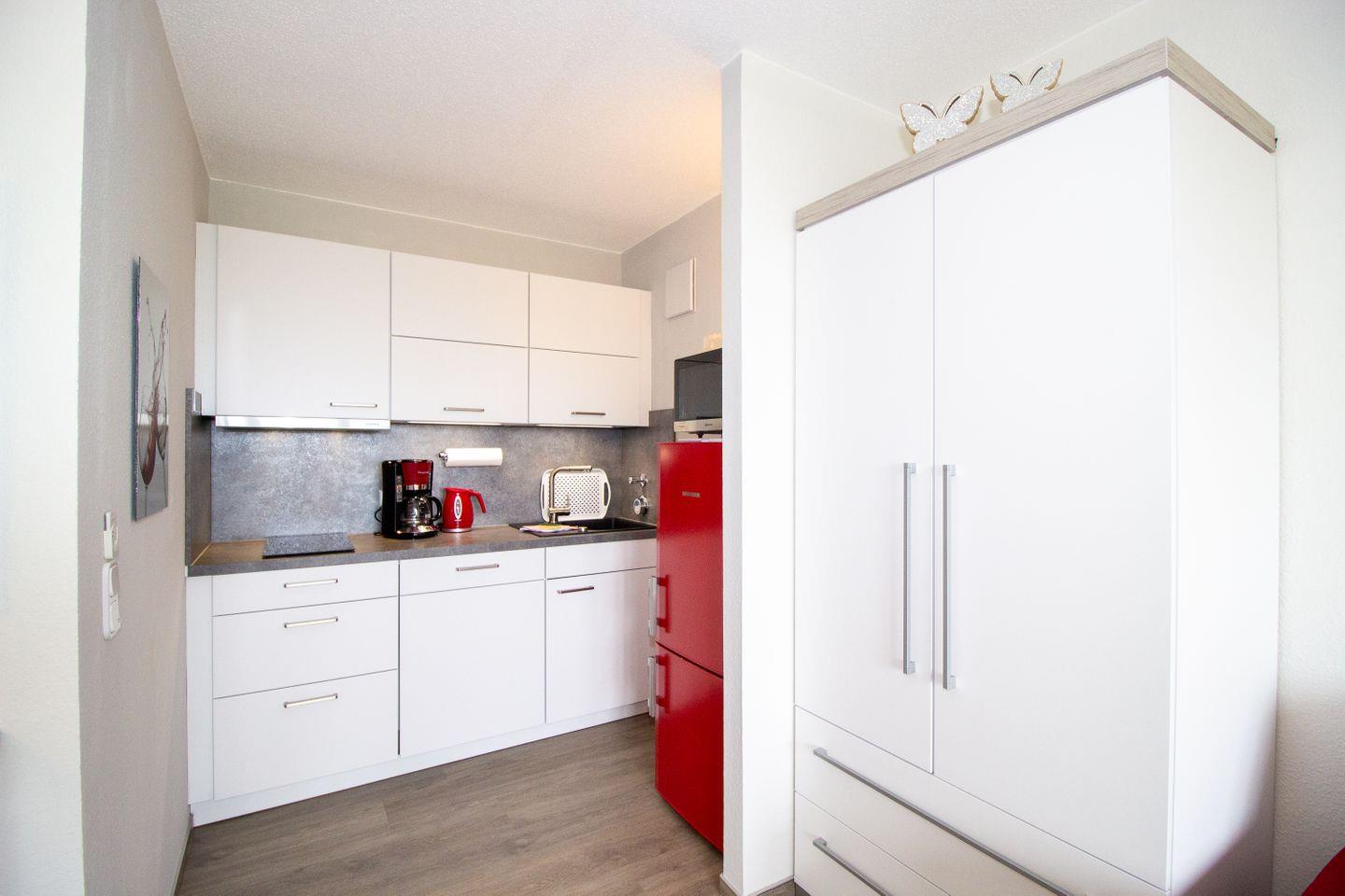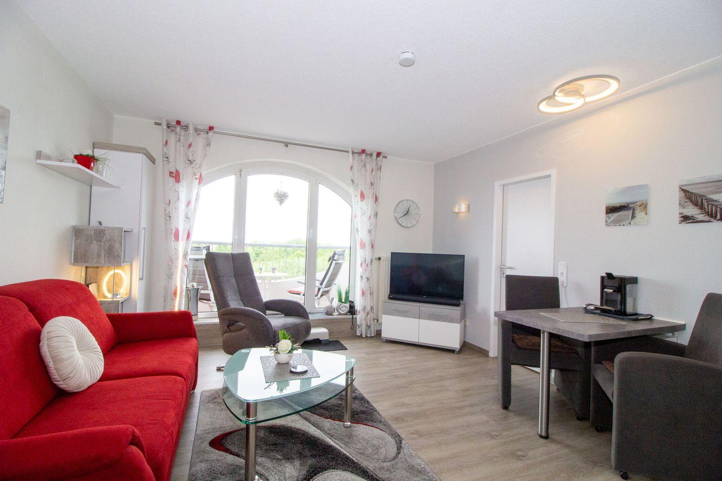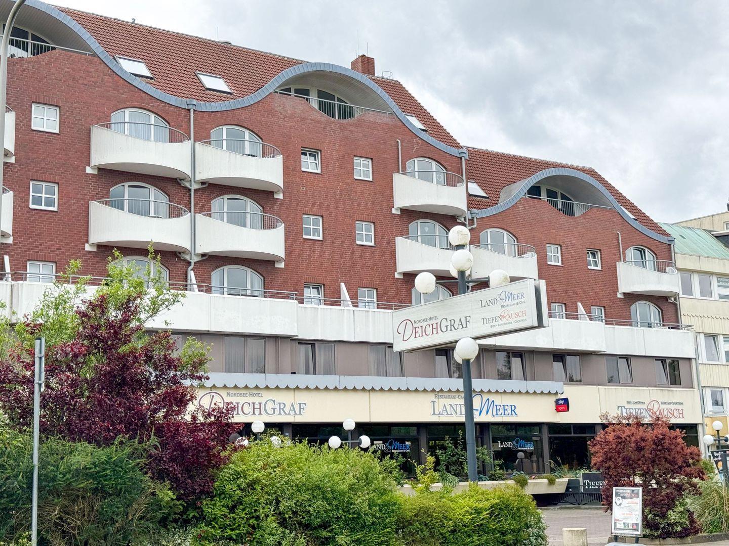 Haus "Deichgraf", App.-Nr. 345, bis 2 Pers., 3. Etage, ca. 38 qm Größe, Nordseite, Meerblick, Schlafzimmer mit 2 Einzelbetten, Offene Küche mit Ceranfeld, Geschirrspüler und Mikrowellen-Backofen-Kombination, Wohnbereich mit Sofa und Relax-Sessel, Bad mit Dusche und WC, Balkon, Kabel-TV, kostenl. WLAN-Zugang im App., Haustiere sind nicht gestattet, Nichtraucherwohnung, Außenstellplatz.