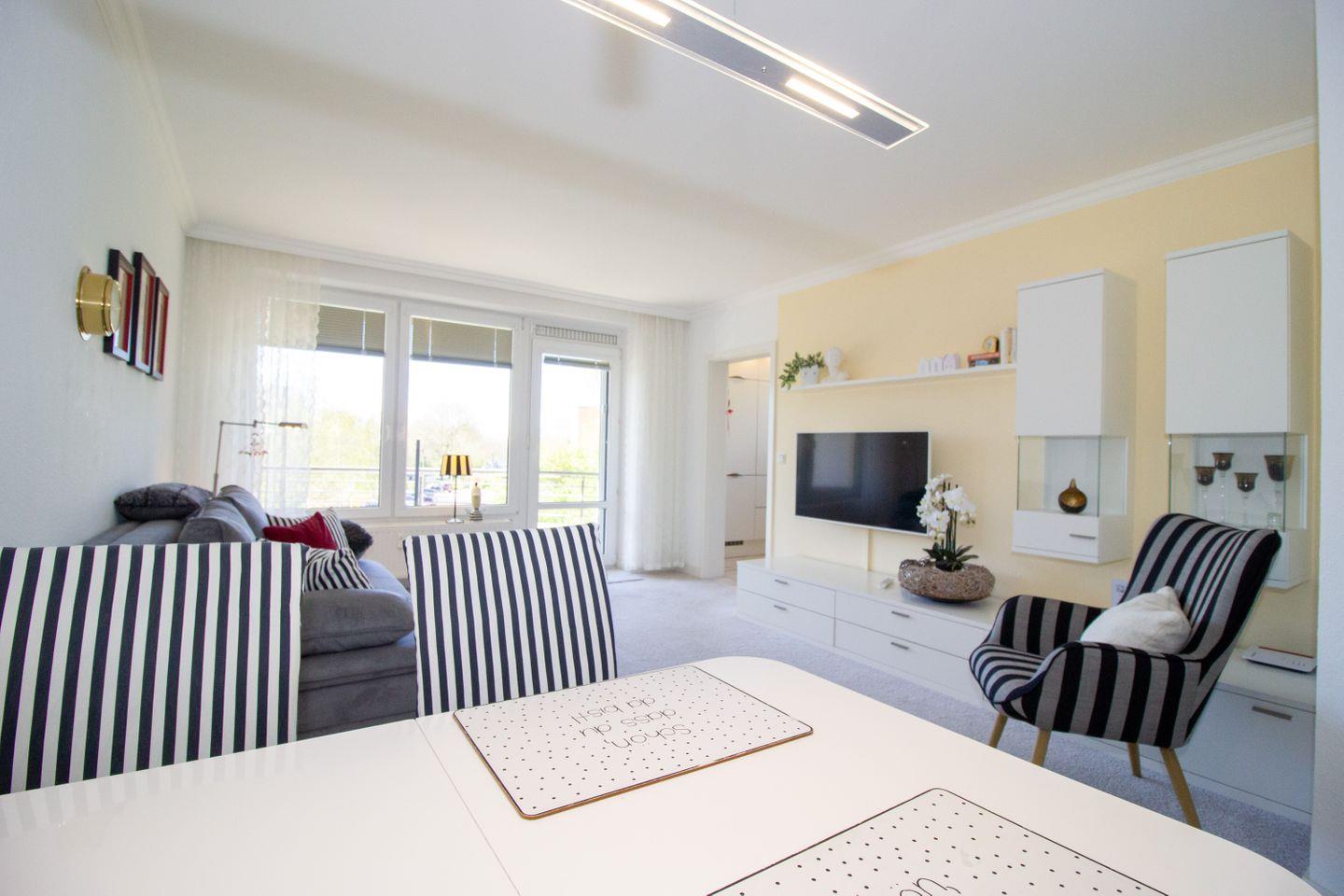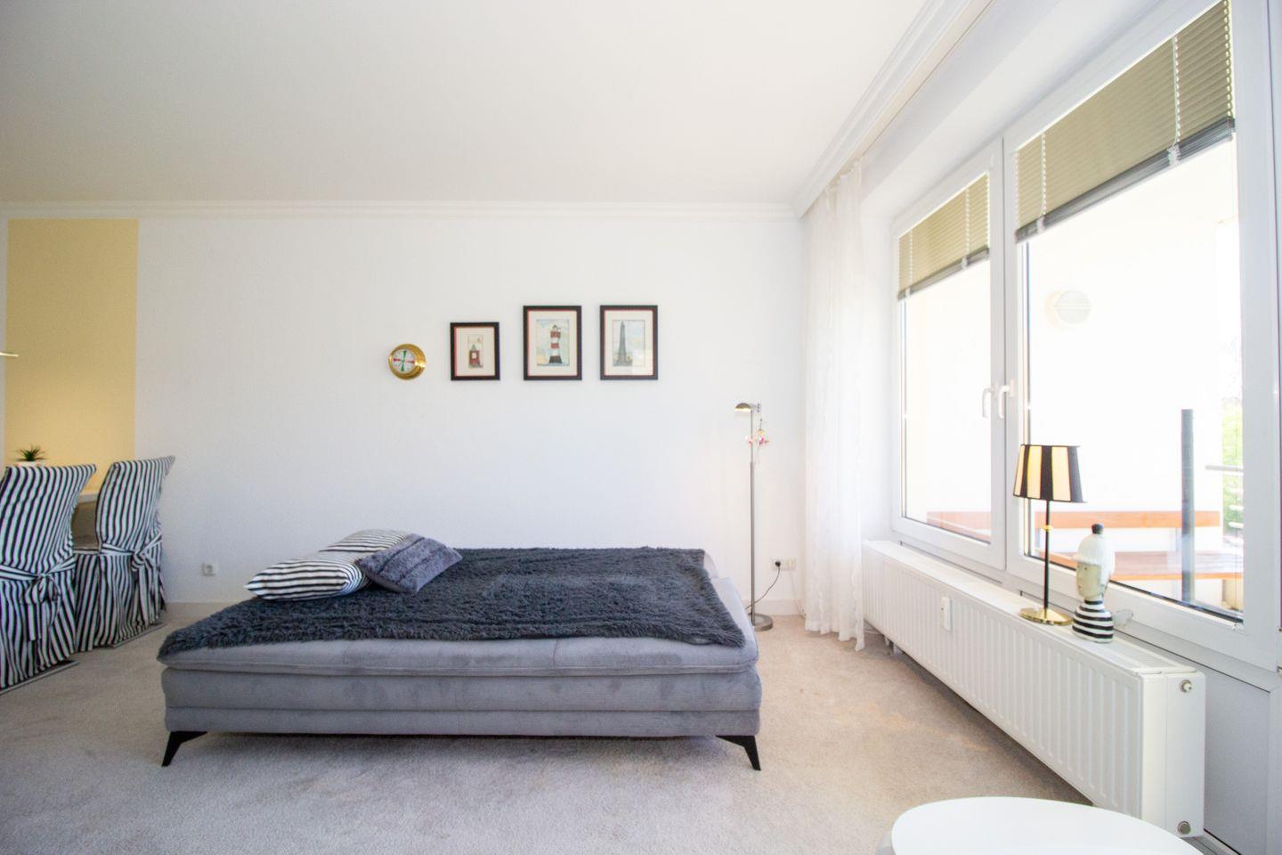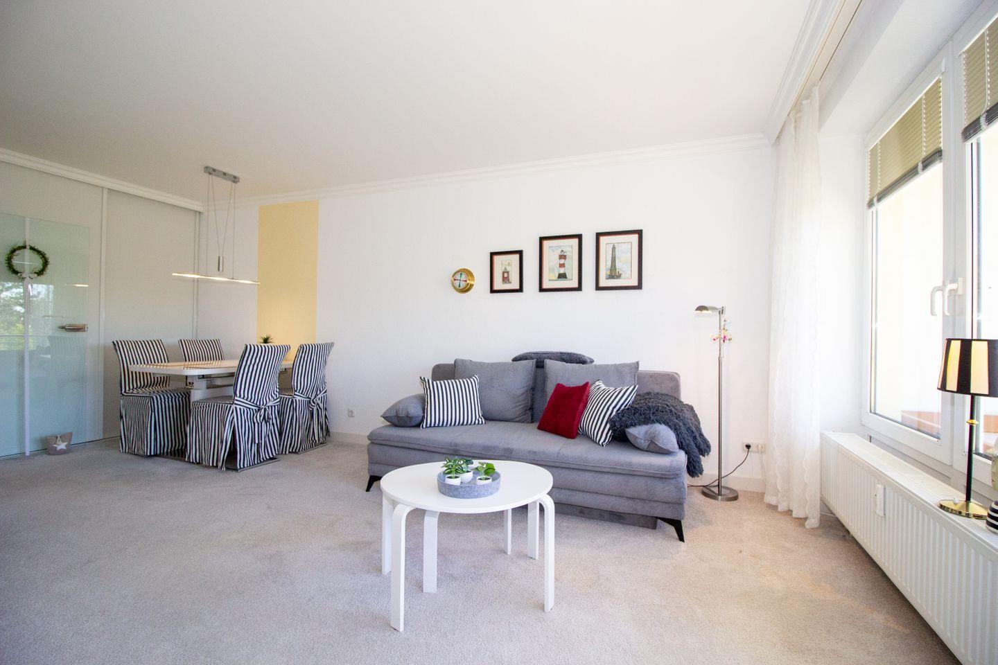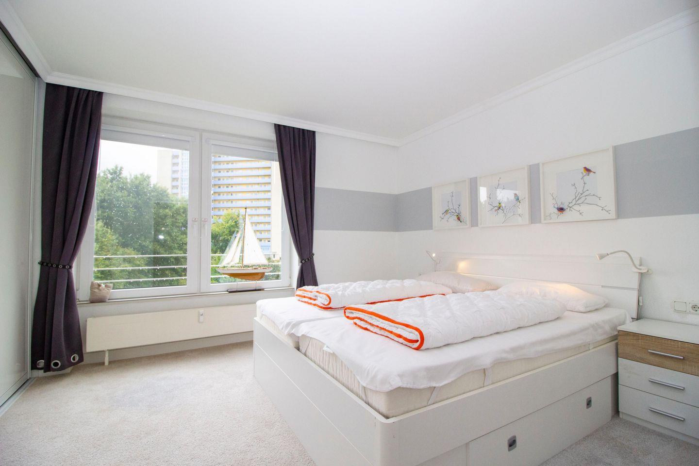 Haus "Kurpark-Residenz", Typ D2, App.-Nr. "138", bis 4 Personen, 1. OG, Süd-Westseite, ca. 66 m², Wohnzimmer mit Schlafcouch, separates Schlafzimmer mit Boxspringbett, Dusche/WC, Küchenzeile mit Ceranfeld, Backofen, Mikrowelle und Geschirrspüler, eigener Waschmaschine, Balkon, SAT-TV, Tiefgaragenstellplatz, W-LAN, Nichtraucherwohnung, Haustiere sind nicht gestattet