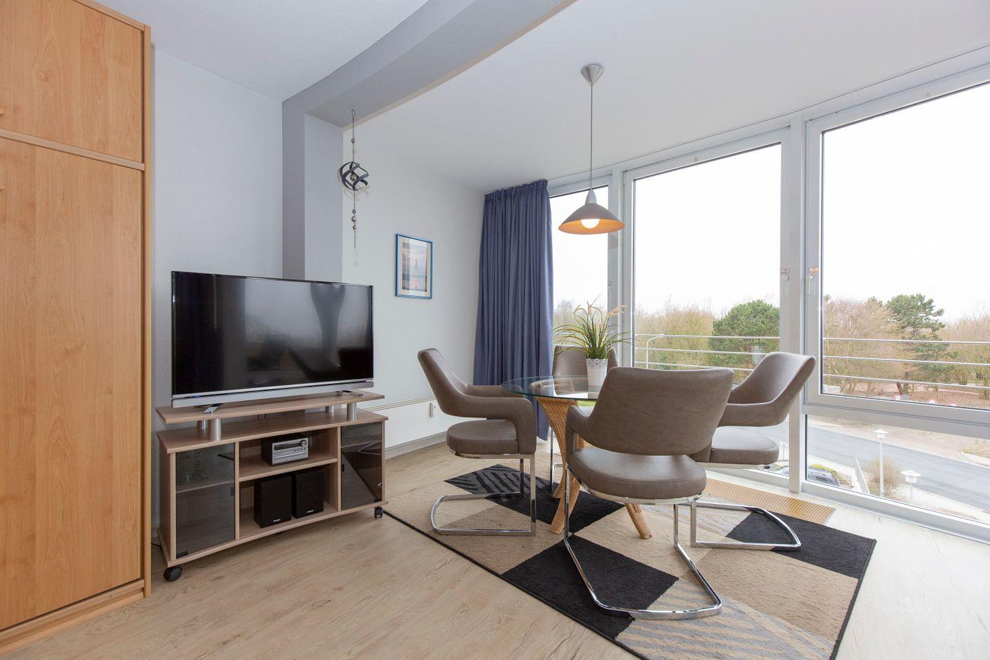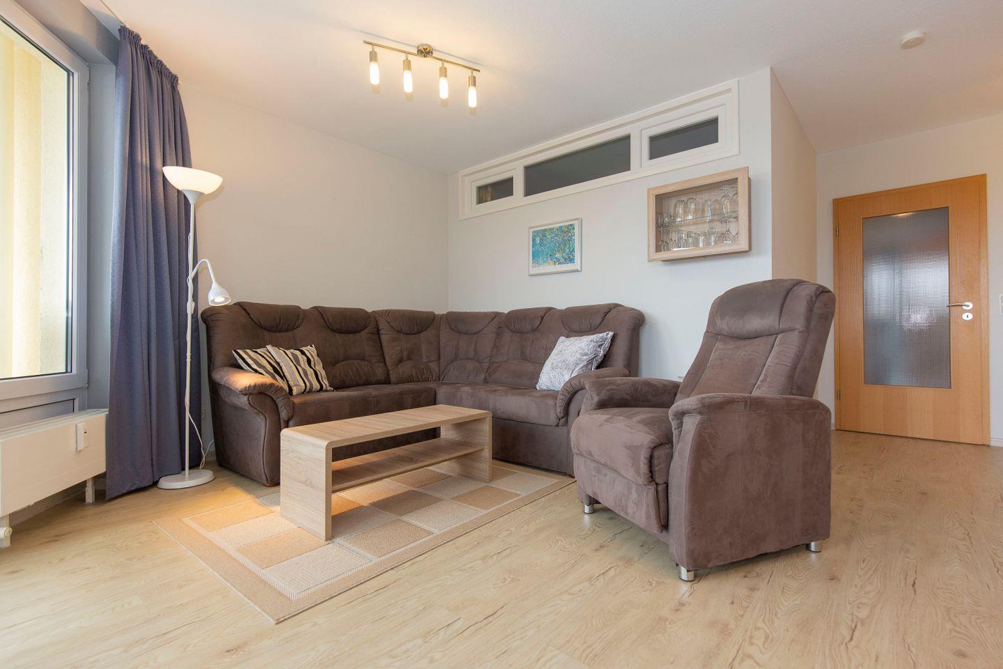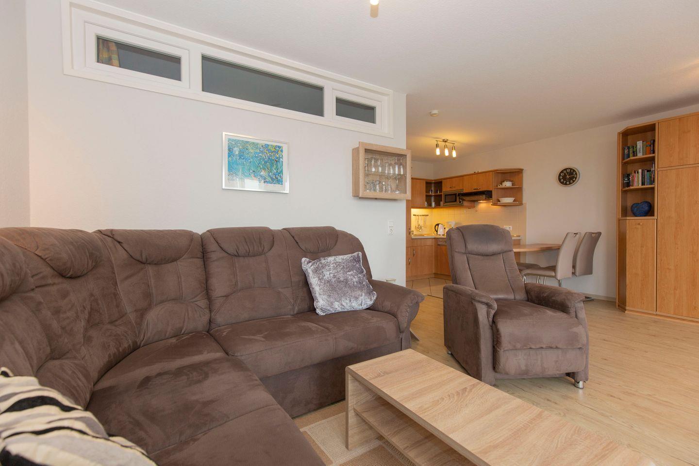 Haus "Kurpark-Residenz", Typ D1, App.-Nr. "218 B", bis 4 Personen, 2. OG, Nord/Westseite (Seeseite Richtung "Elbe"), ca. 65 m² Größe, Wohnzimmer mit Schrankbett, sep. Schlafzimmer mit Doppelbett (innenliegend) und Laminatboden, Dusche/WC, Küchenzeile mit Mikrowelle, Backofen und Geschirrspüler, Balkon, SAT-TV, Tiefgaragenstellplatz, Nichtraucher, keine Haustiere gestattet, WLAN im App., Strandkorb im Sommer 2025. Achtung: Kombi-Buchung mit der Nachbarwohnung 218-A zum Sonderpreis möglich!