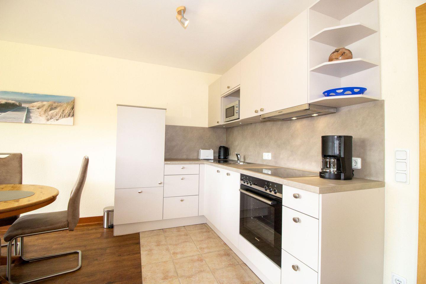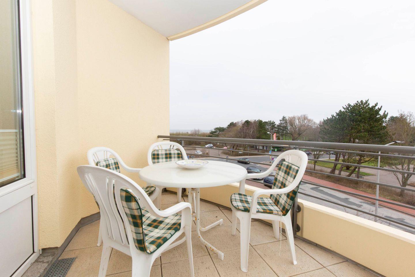 Haus "Kurpark-Residenz", Typ D2, Appartement-Nr. "210", bis 4 Personen, 2. OG, Nord/Ostseite (Seesicht Richtung "Elbe"), ca. 65 m² Wohnungsgröße, Wohnzimmer, separates Schlafzimmer mit Doppelbett, separates Kinderzimmer mit Einzelbetten (innenliegend), Dusche/WC, neue Küchenzeile mit Backofen, Geschirrspüler und Mikrowelle, Loggia, SAT-TV, kostenl. W-Lan Zugang im App., Tiefgaragenstellplatz, Haustiere sind nicht gestattet, Strandkorb im Sommer 2025.