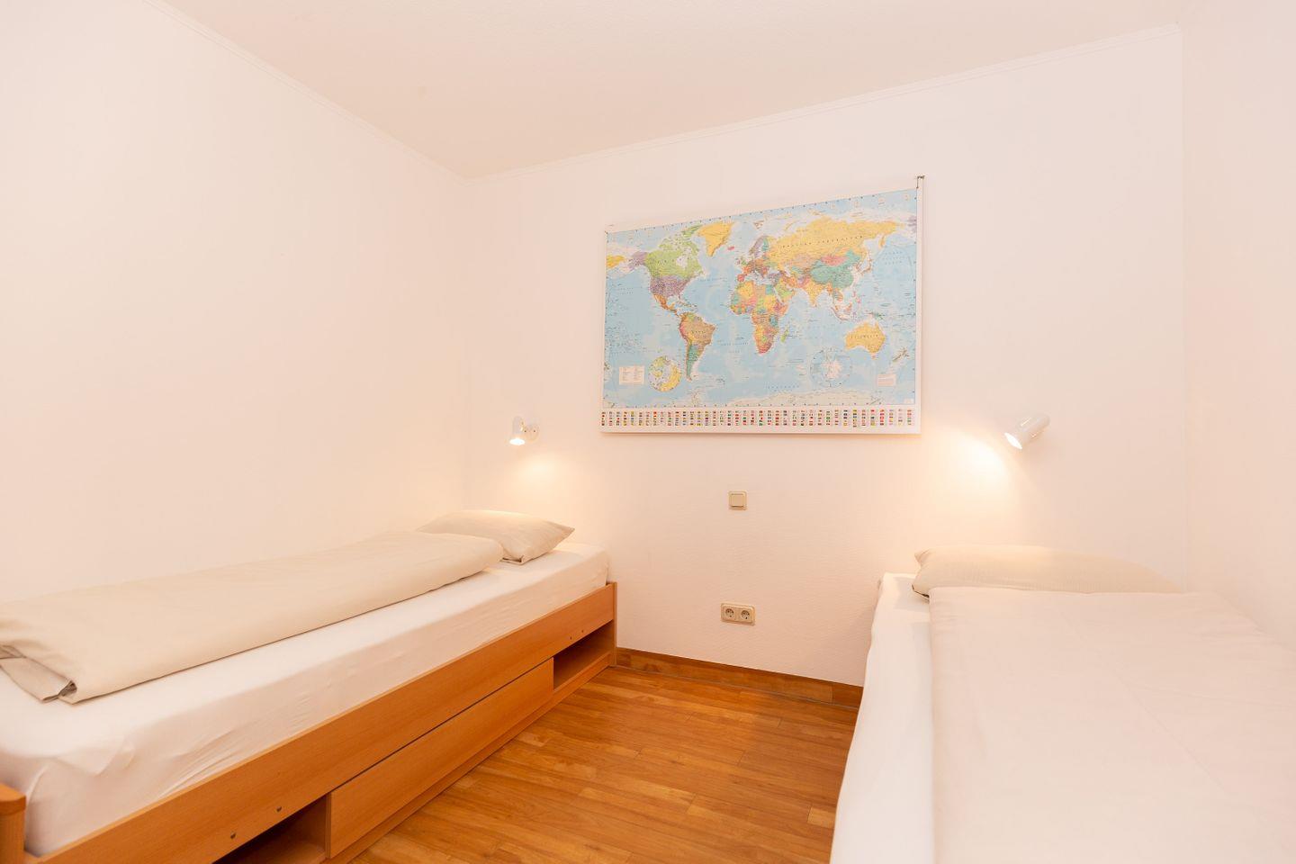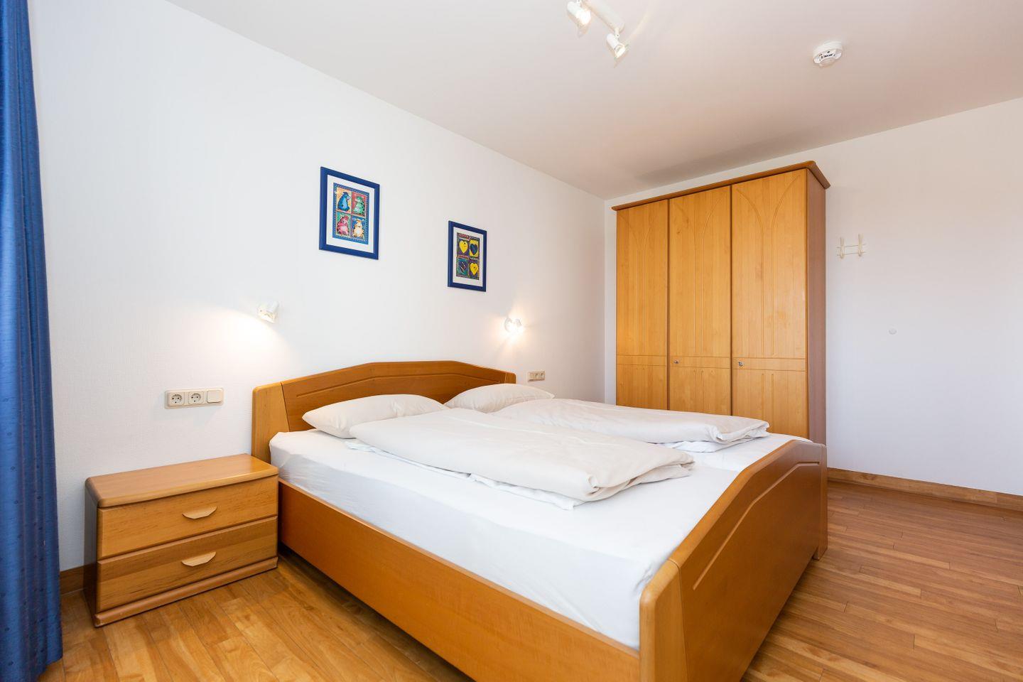 Haus "Kurpark-Residenz", Typ D2, App.-Nr. "221", bis 4 Personen, 2. OG, Westseite, ca. 61 m² Größe, Wohnzimmer mit Flachbild-TV, sep. Schlafzimmer mit Doppelbett und 2. Flachbild TV, separates 2. innenliegendes Schlafzimmer mit Einzelbetten und kontrollierter Be- und Entlüftung, Dusche/WC mit Sitzgelegenheit in der Dusche, Küchenzeile (Fliesen) mit Geschirrspüler, Mikrowelle und Backofen, Senseo Kaffeemaschine, Loggia Richtung Westen mit Zugang vom Wohn- und Schlafzimmer, SAT-TV, WLAN, HiFi-Anlage, Tiefgaragenstellplatz, Strandkorb im Sommer 2026.