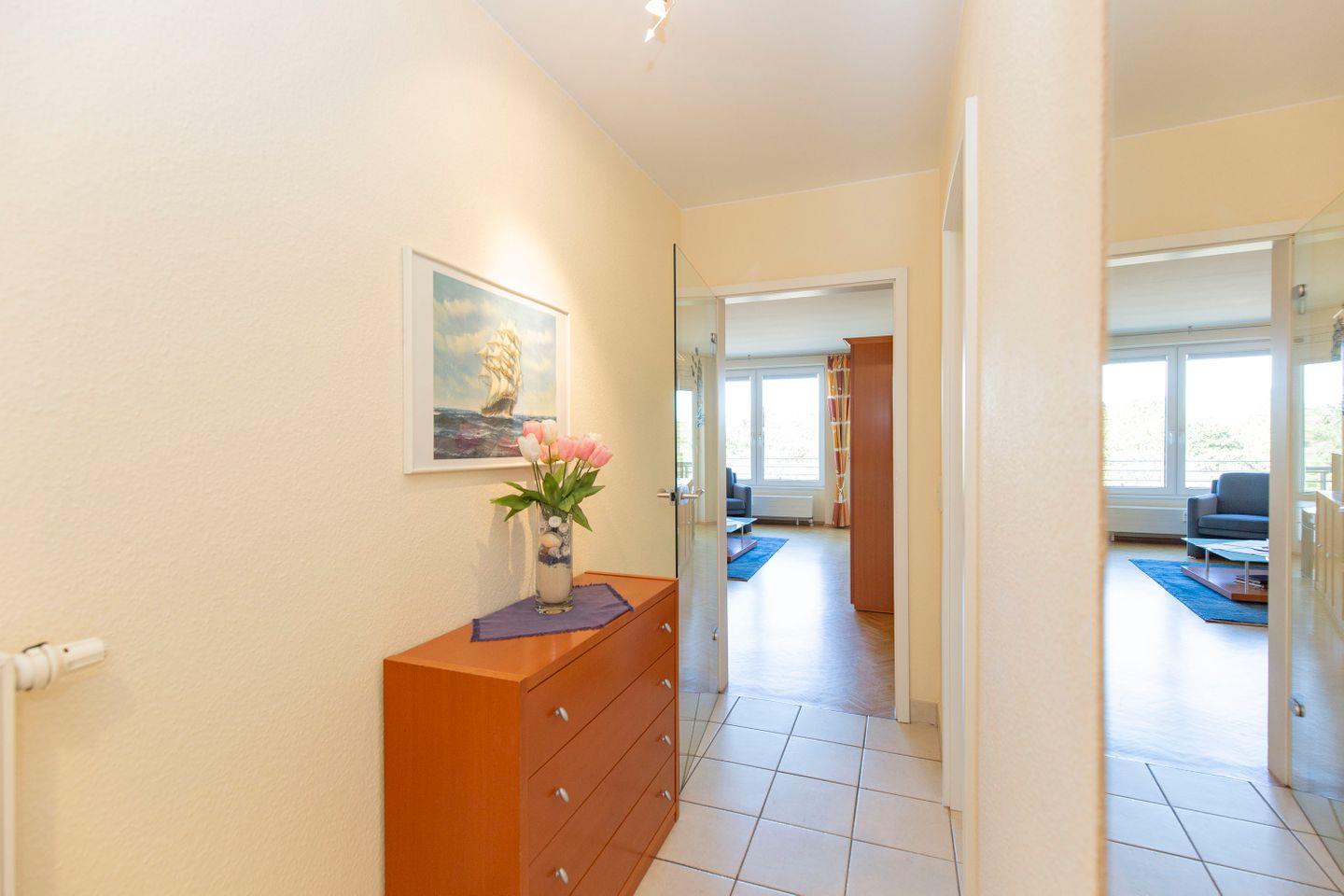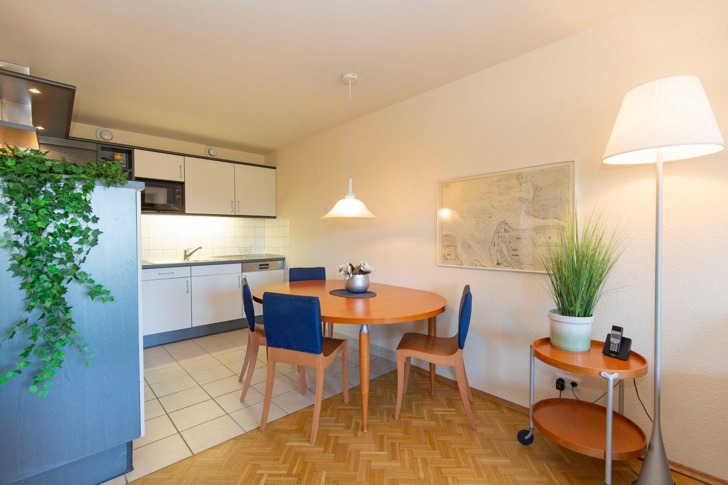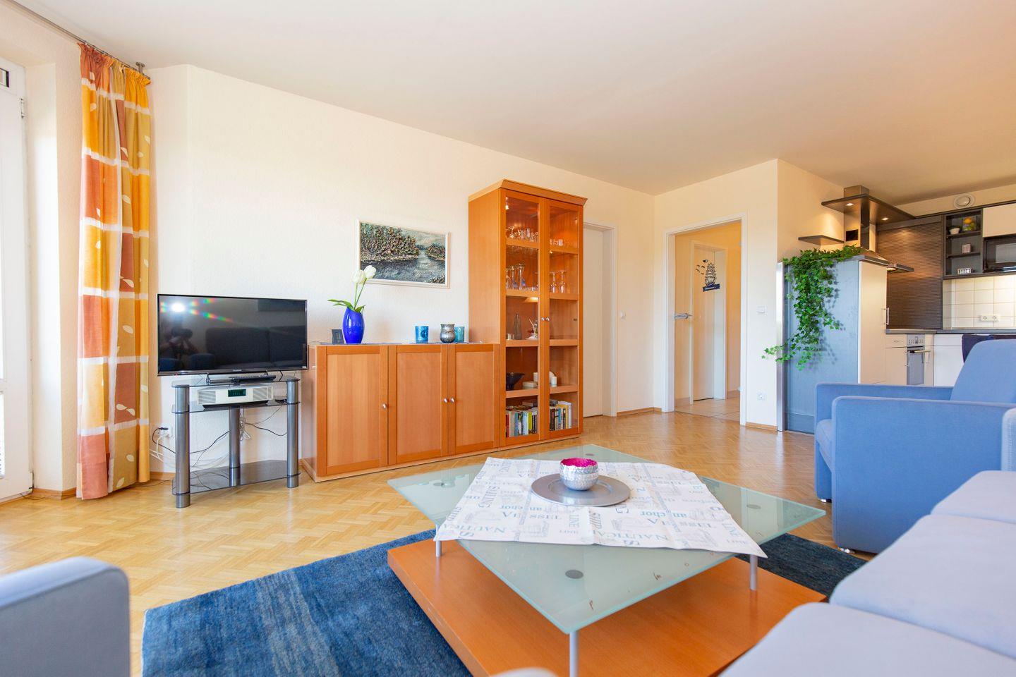 Die Einrichtung der 3-Zimmer-Ferienwohnung in Cuxhaven ist geprägt durch die blauweiße Farbgestaltung. Mit Platz für bis zu 4 Urlaubsgäste eignet sich das Urlaubsdomizil sowohl für Familien als auch für Paare. Die FeWo punktet mit Wohlfühlambiente und top Lage in Strandnähe. Zeigt sich das Wetter von seiner schlechteren Seite, können unsere Gäste kostenlos das hauseigene Schwimmbad und die Sauna besuchen. So macht Urlaub an der Nordsee Spaß.