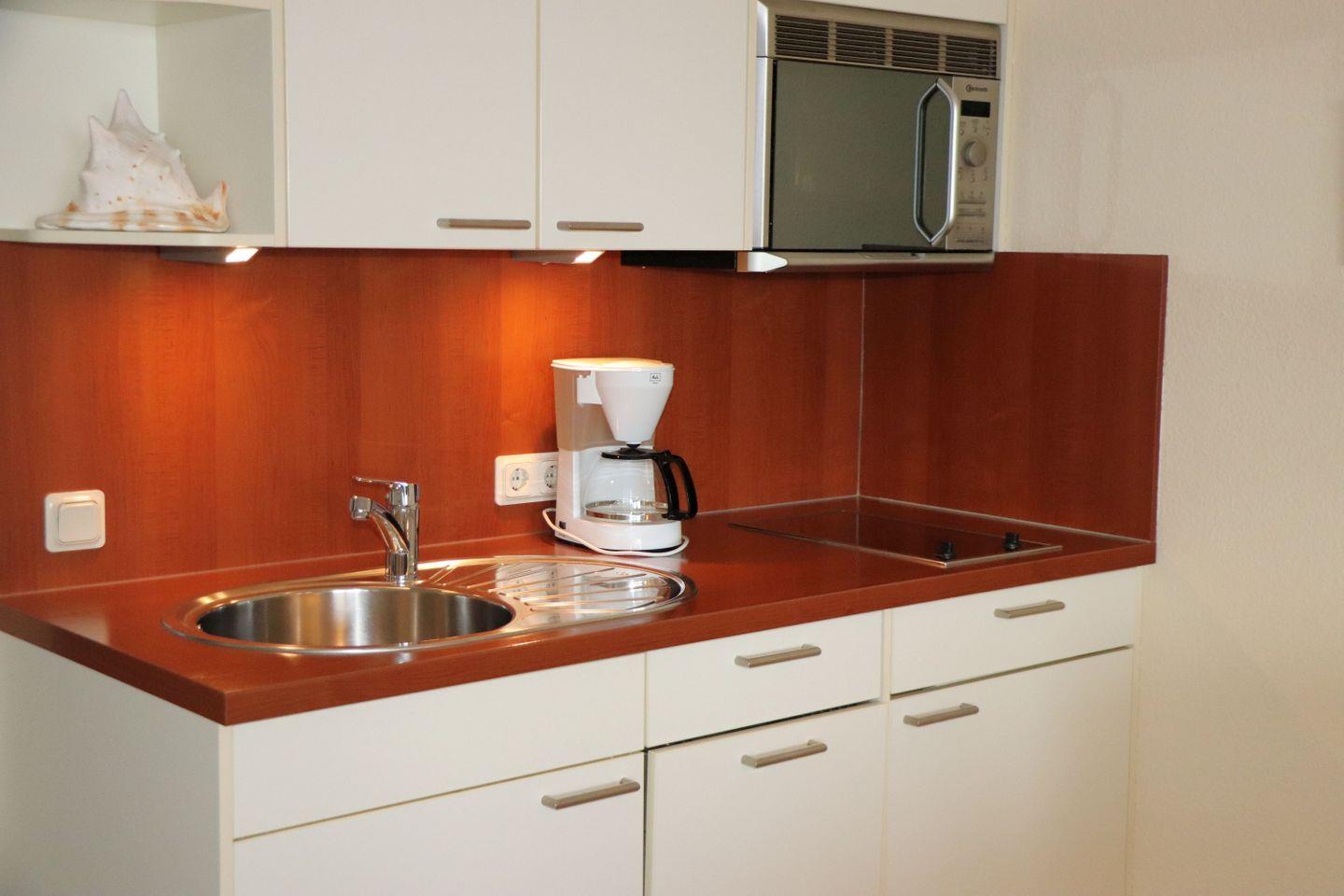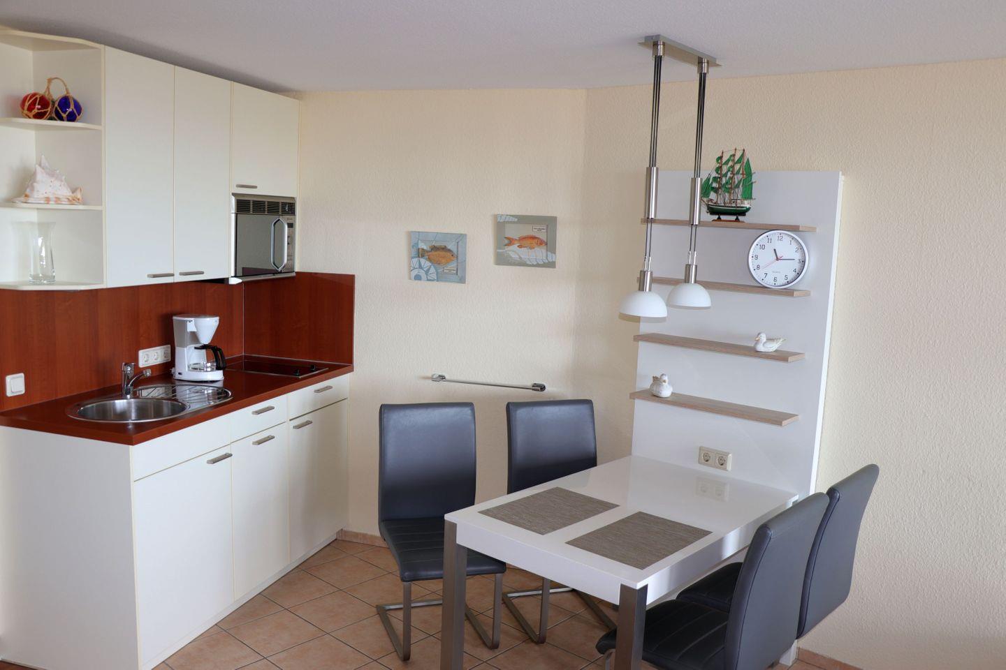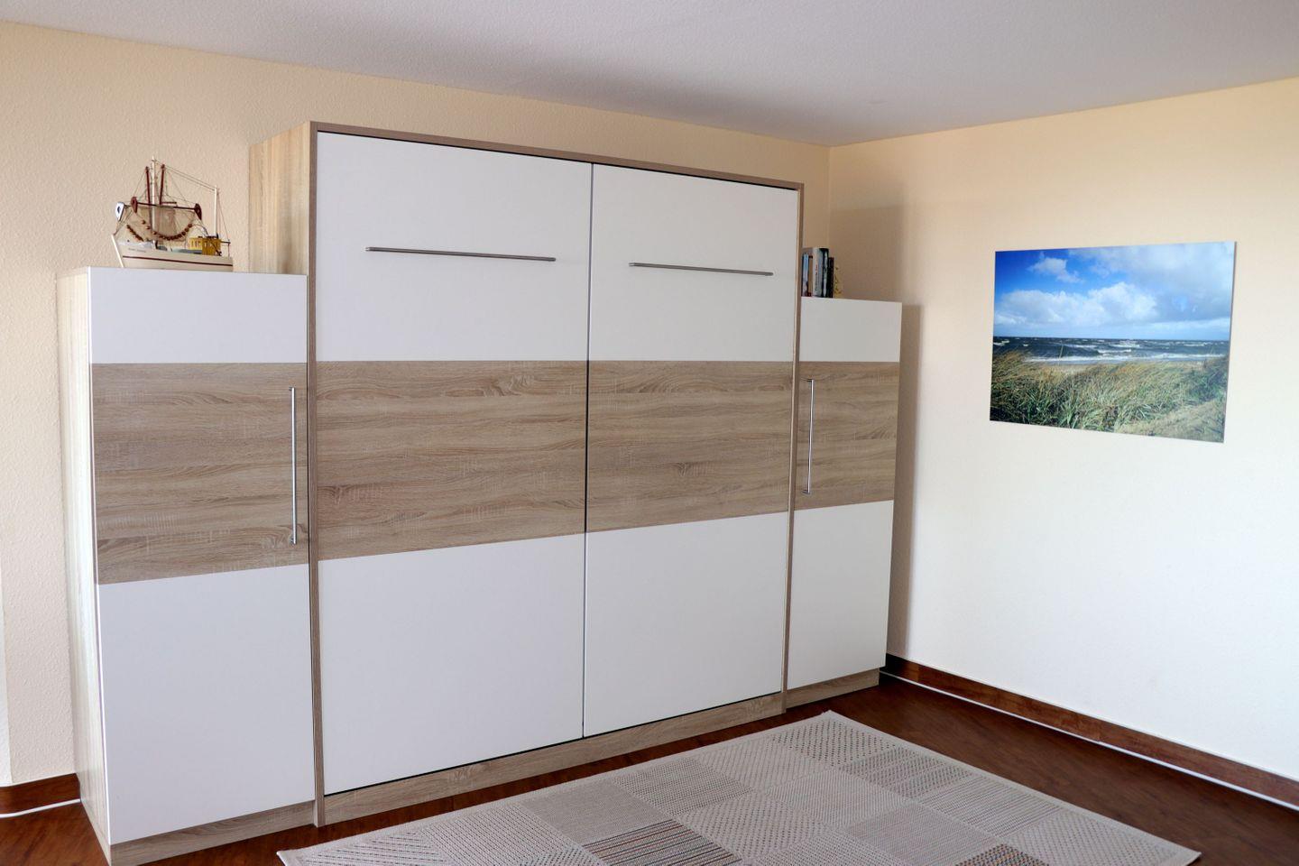 Haus "Lord Nelson", Typ 4, App.-Nr. "707", bis 2 Pers., 7. Etage, ca. 40 qm, am Weltnaturerbe Wattenmeer (Meerblick Richtung Neuwerk), Wohnbereich mit Schrankbett, Dusche/WC, Küchenzeile mit Geschirrspüler, Mikrowelle, Telefon, Kabel-TV, kostenl. W-Lan Zugang im App., Balkon, Tiefgaragenstellplatz, Strandkorb im Sommer 2026.