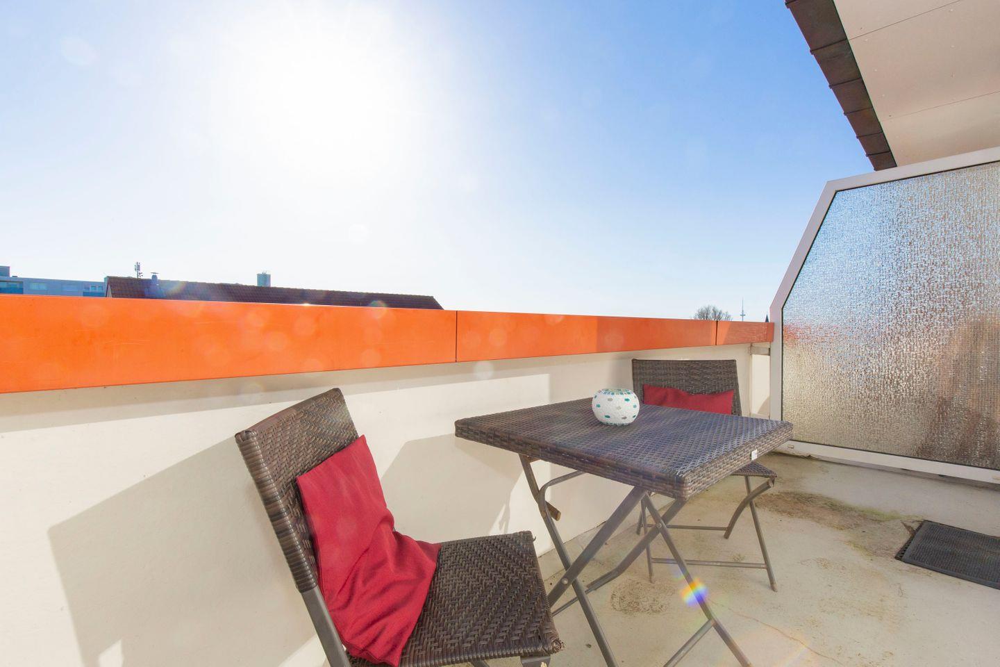 An lauen Sommerabenden können unsere Urlaubsgäste den Tag unter freiem Himmel und an der frischen Nordseeluft auf dem eigenen Balkon ausklingen lassen.